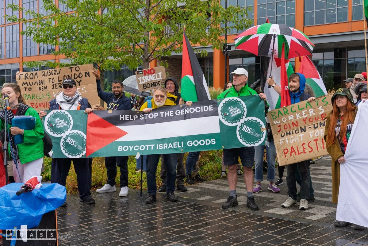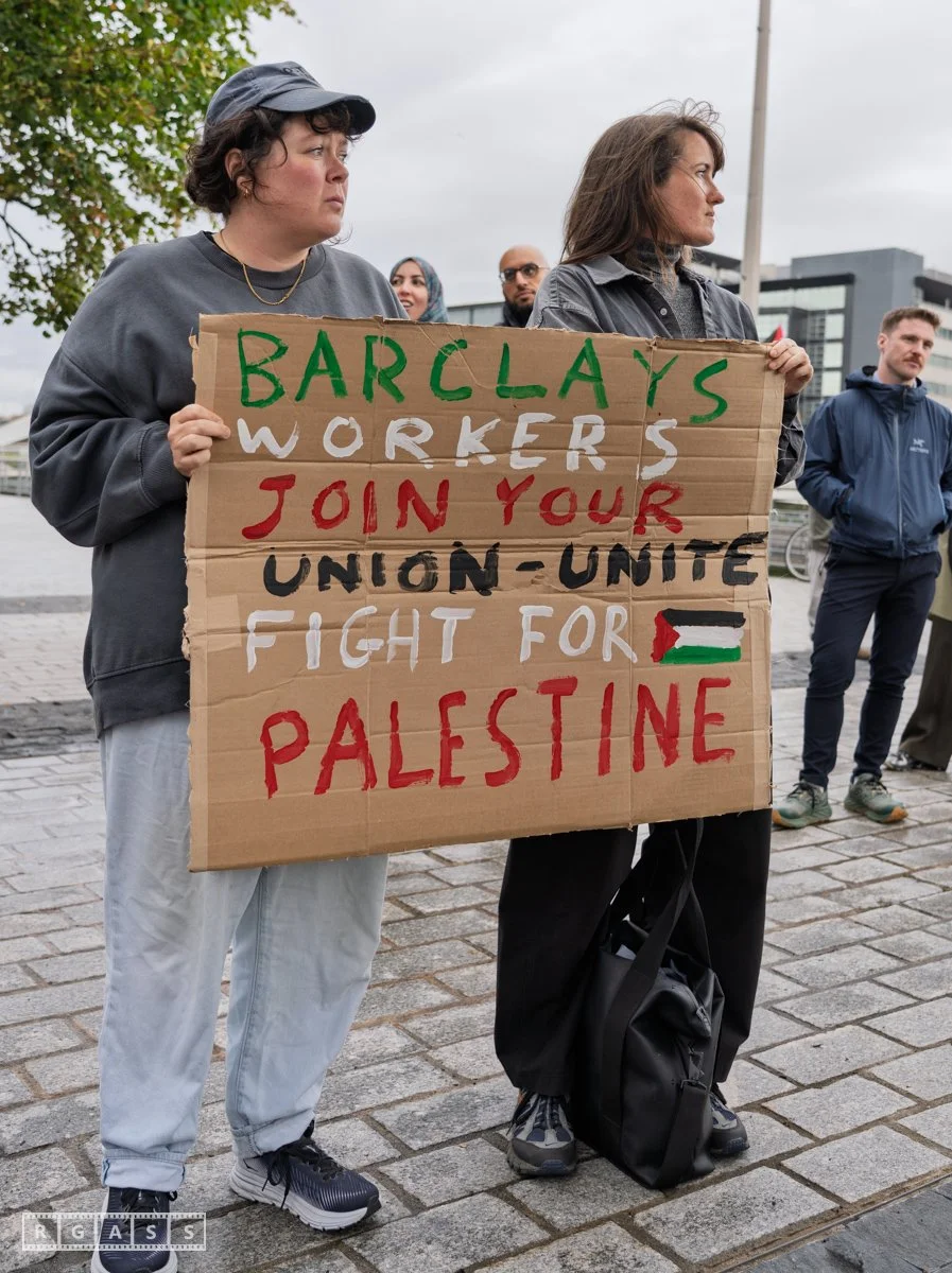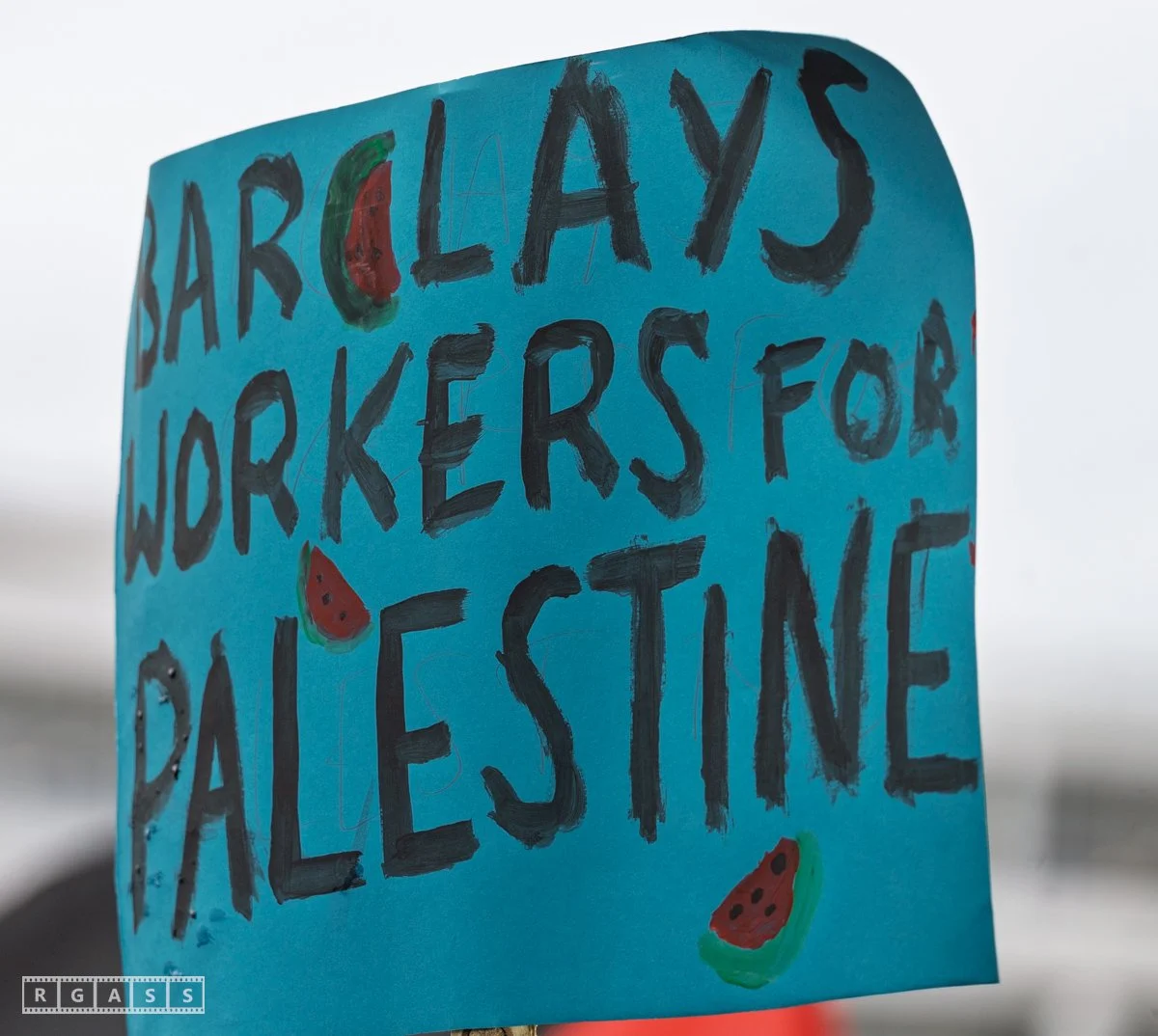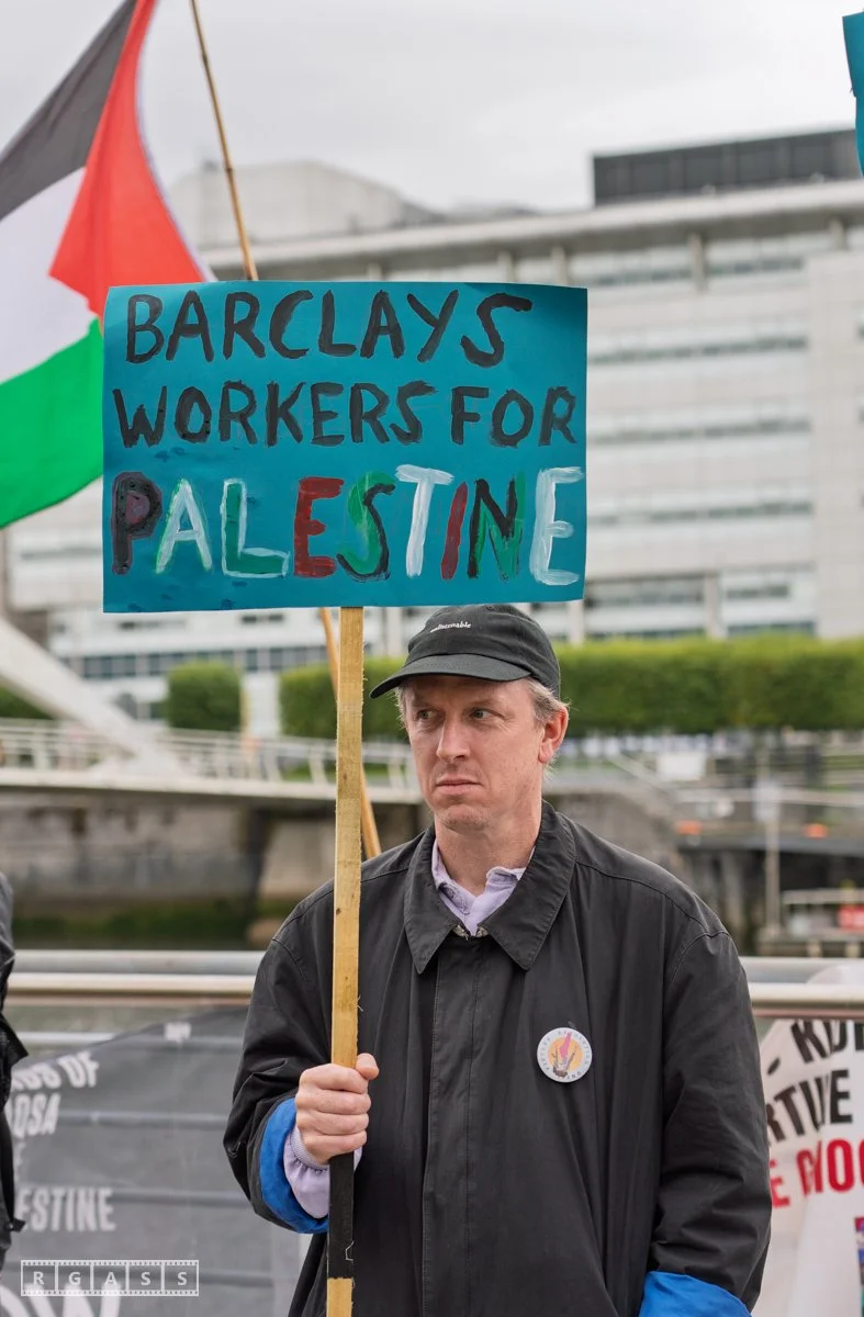 Barclays workers protest along with pro-Palestinian activists and trade unionists