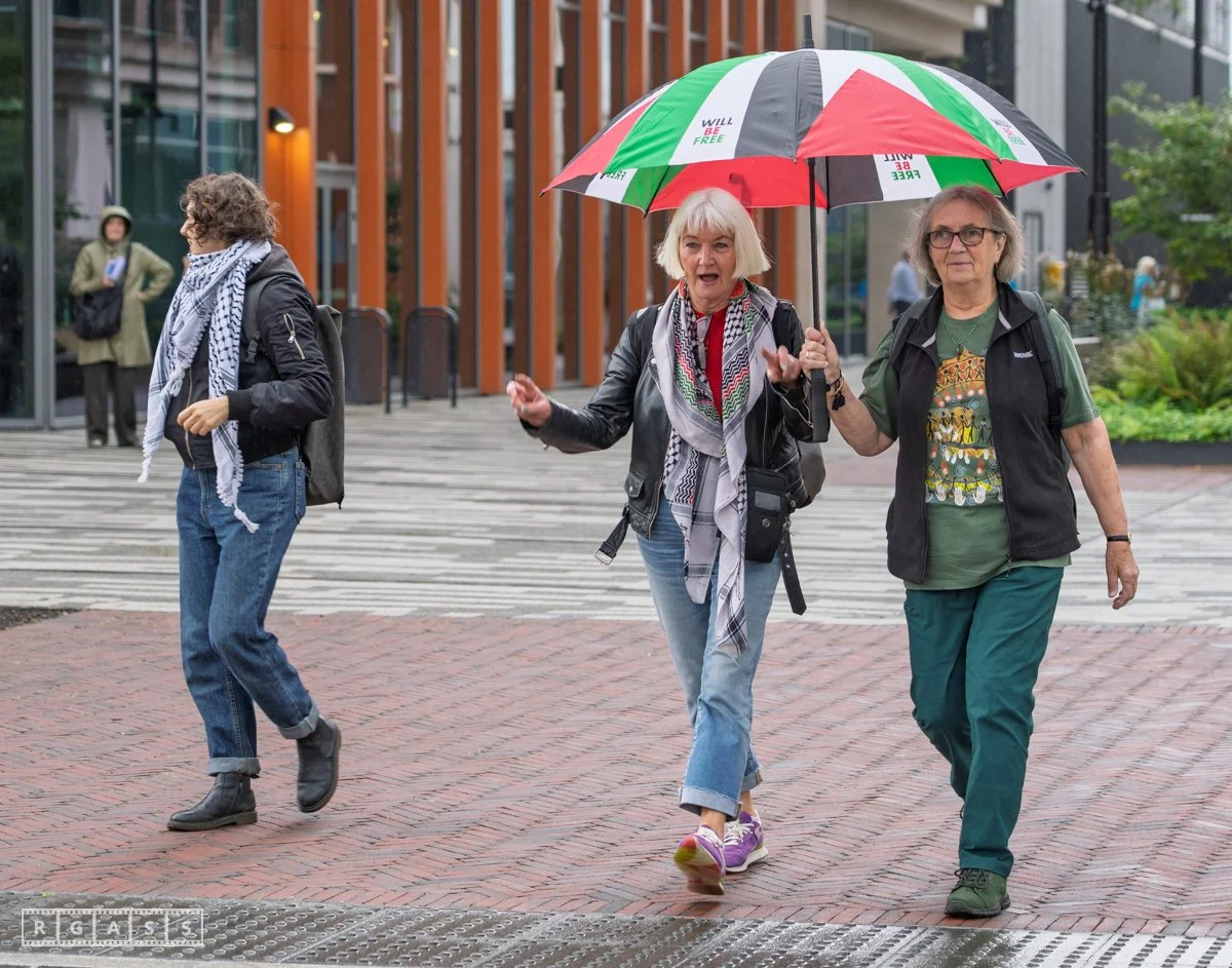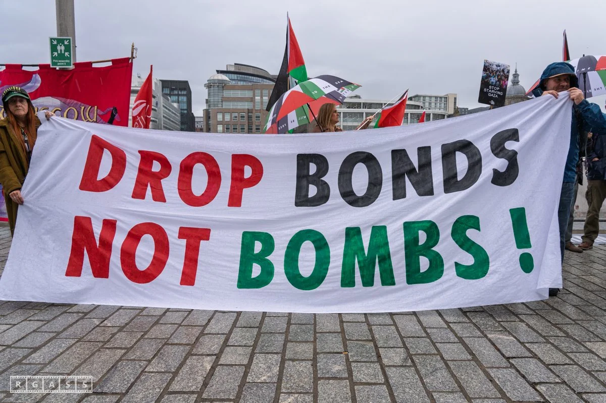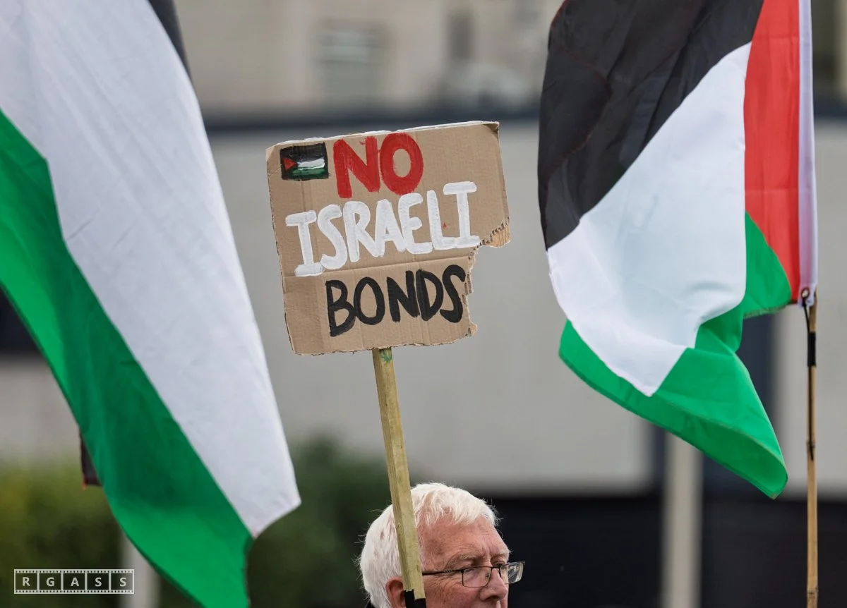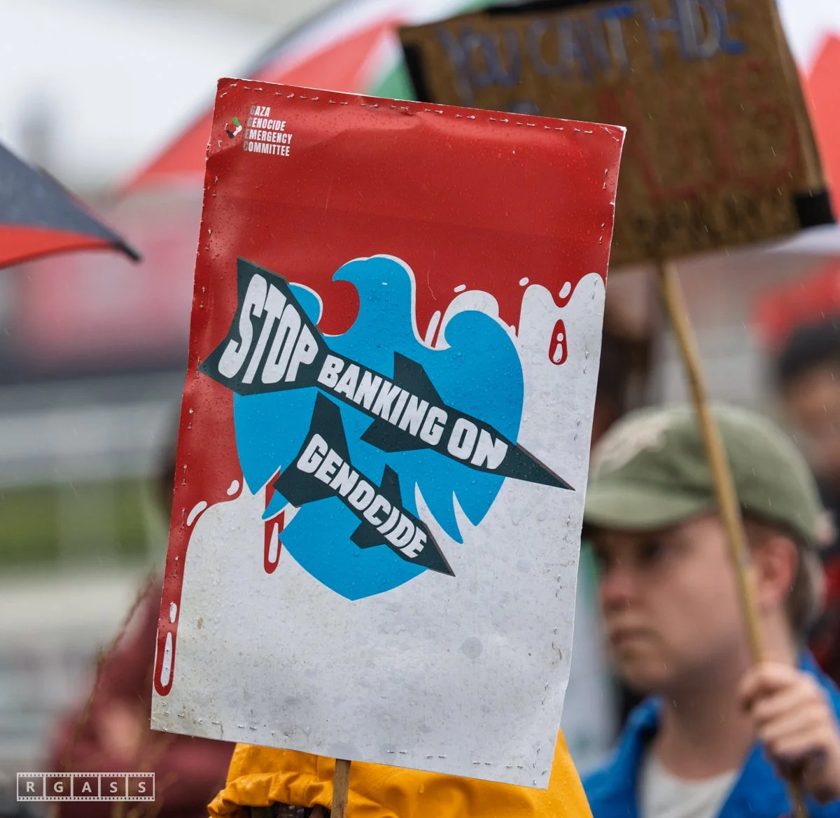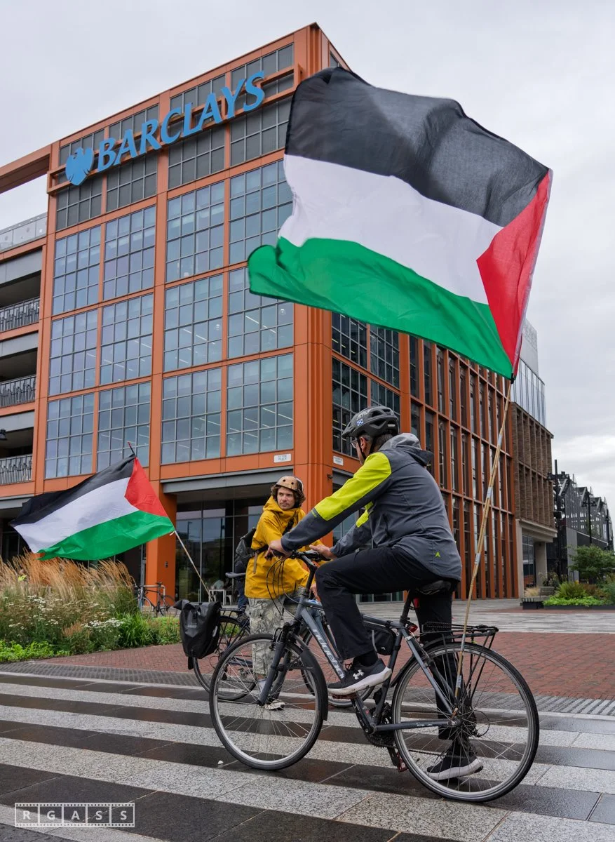 Barclays workers protest along with pro-Palestinian activists and trade unionists