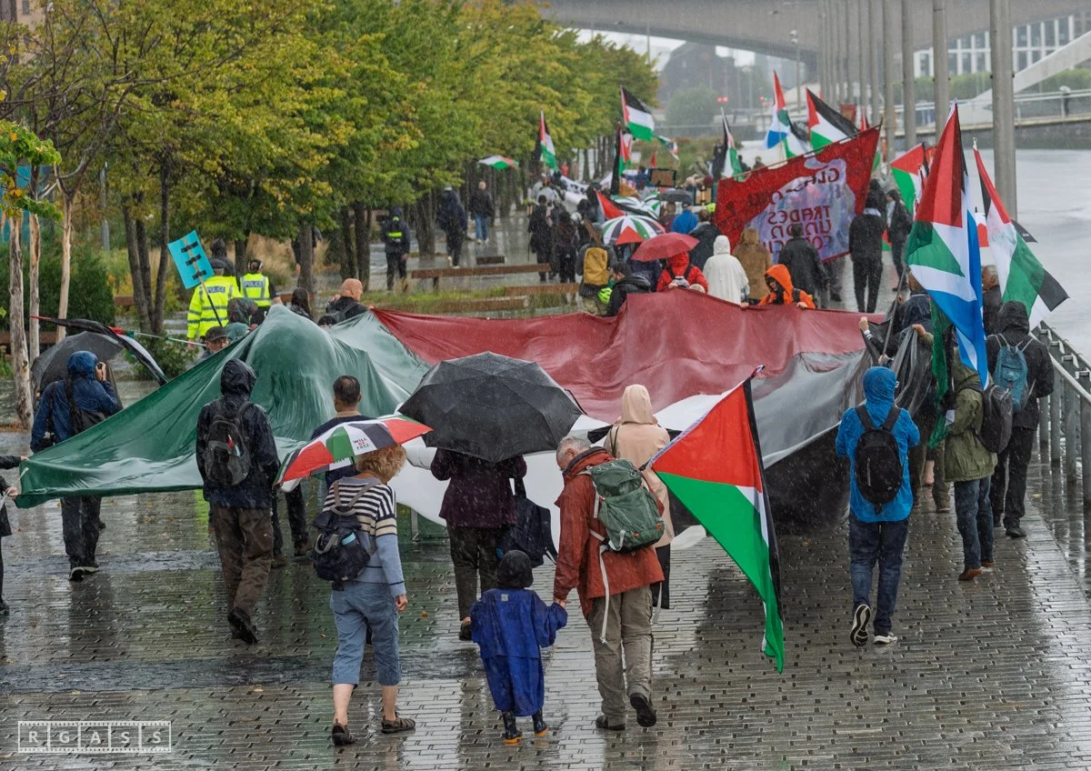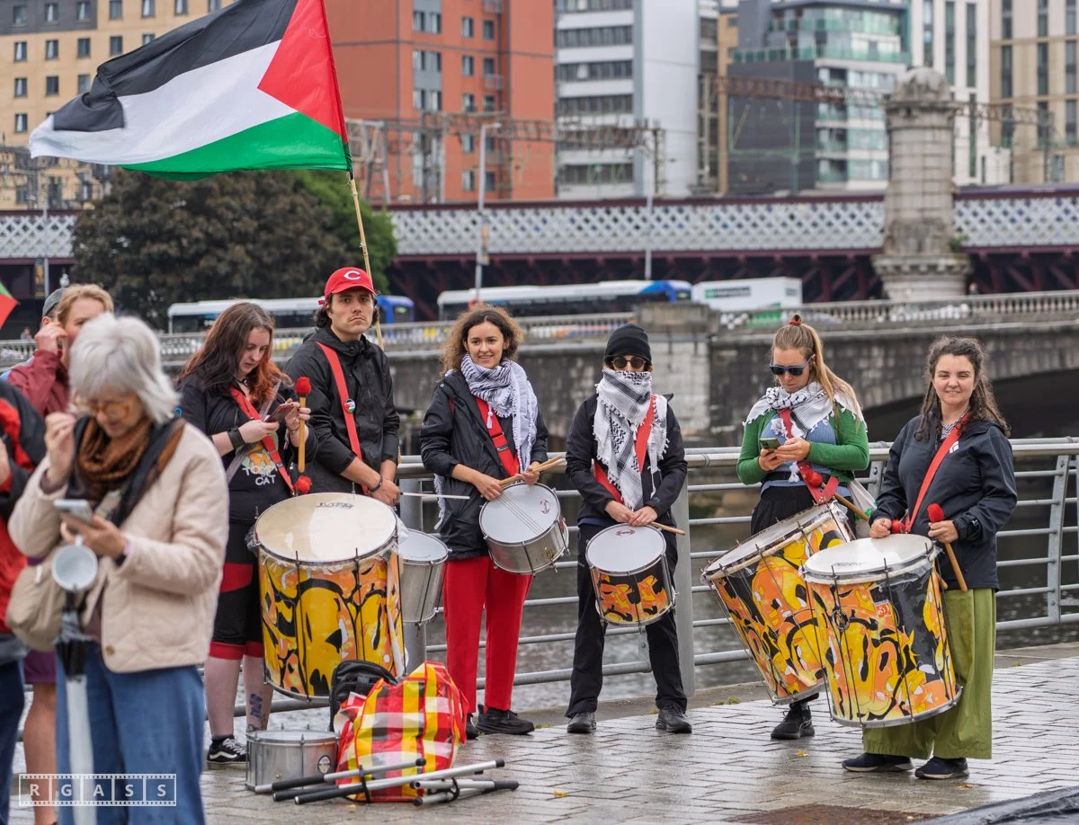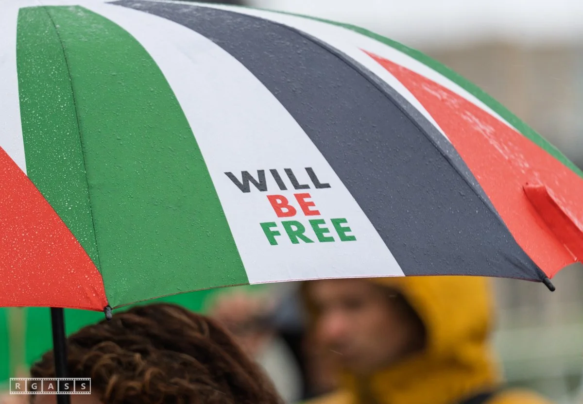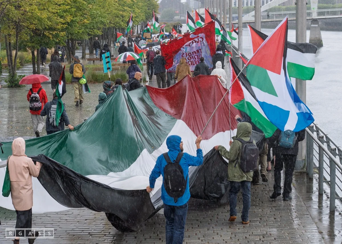 Barclays workers protest along with pro-Palestinian activists and trade unionists