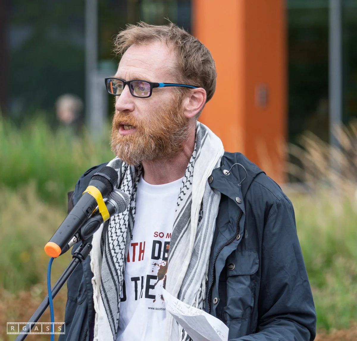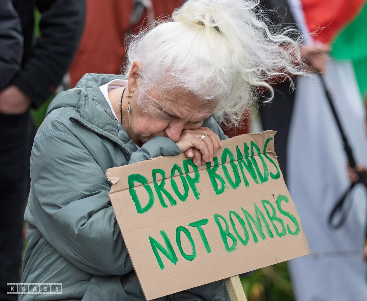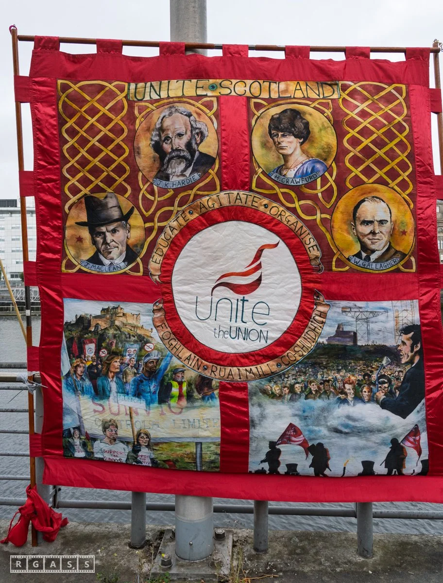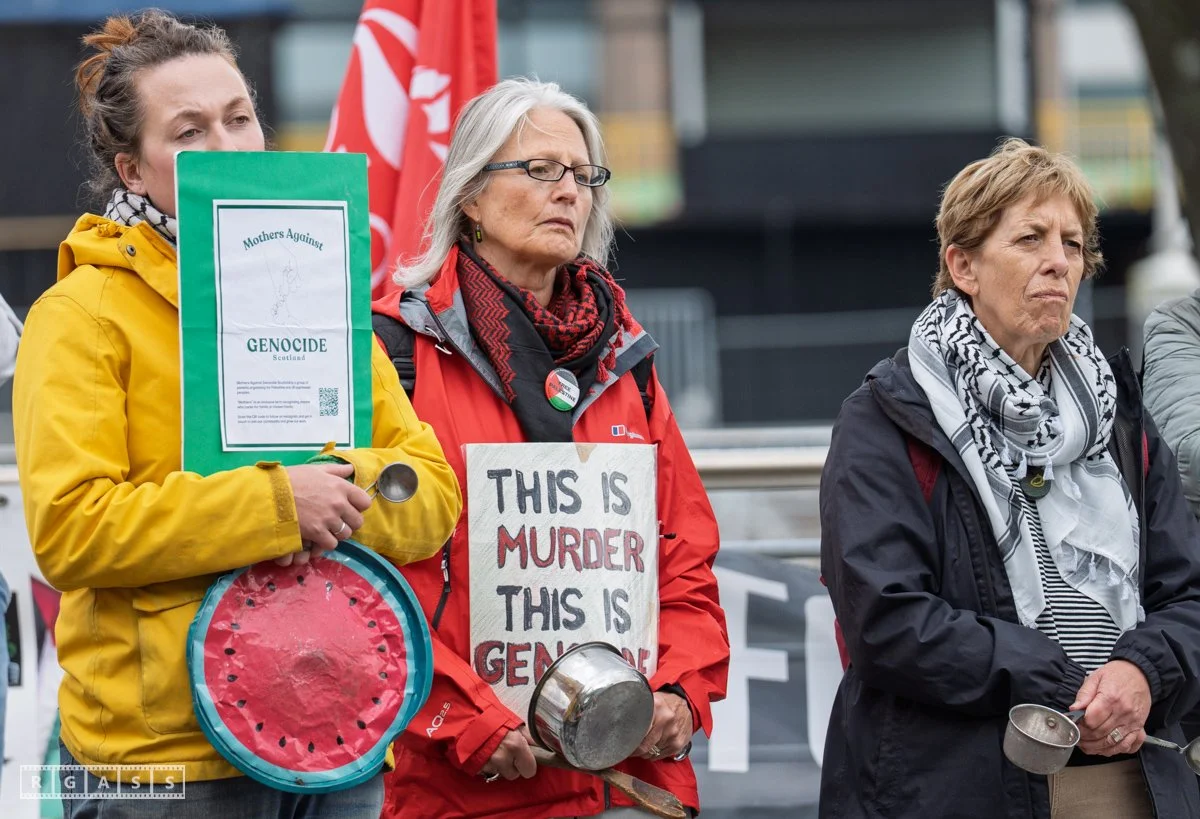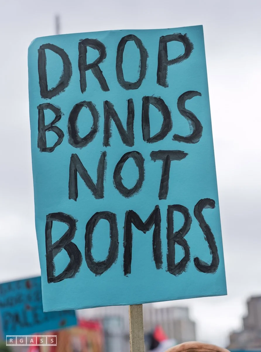 Glasgow, UK. 27th Aug 2025. Barclays workers protest along with pro-Palestinian activists and trade unionists outside the Headquarters Office, with placards saying ‘Drop Bonds Not Bombs’ demanding that Barclays divest from Israeli Government bonds.