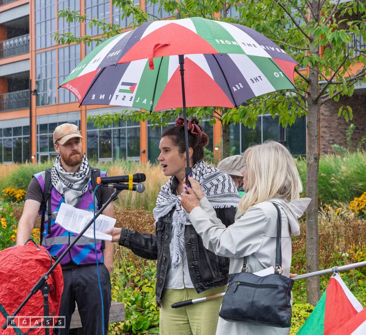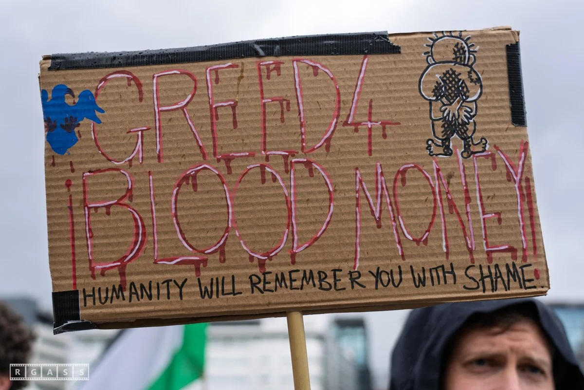 Barclays workers protest along with pro-Palestinian activists and trade unionists outside the Headquarters Office.