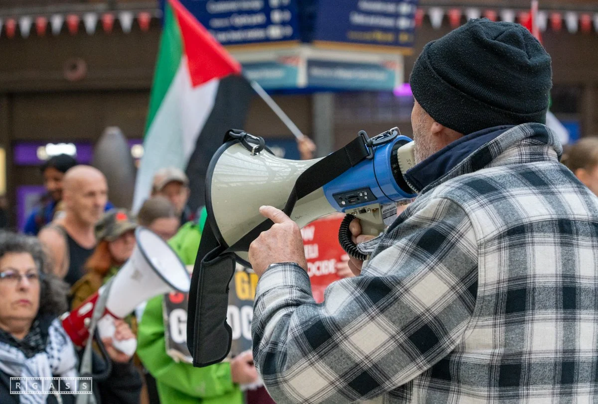 Palestine supporters gather in Central Station exactly two years after the Hamas attack in Israel.