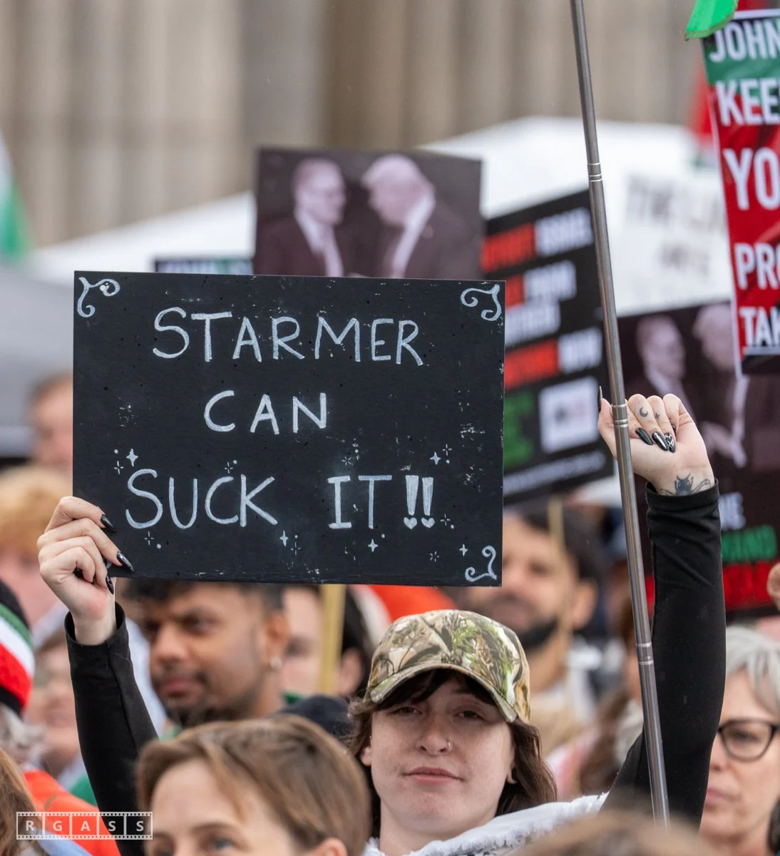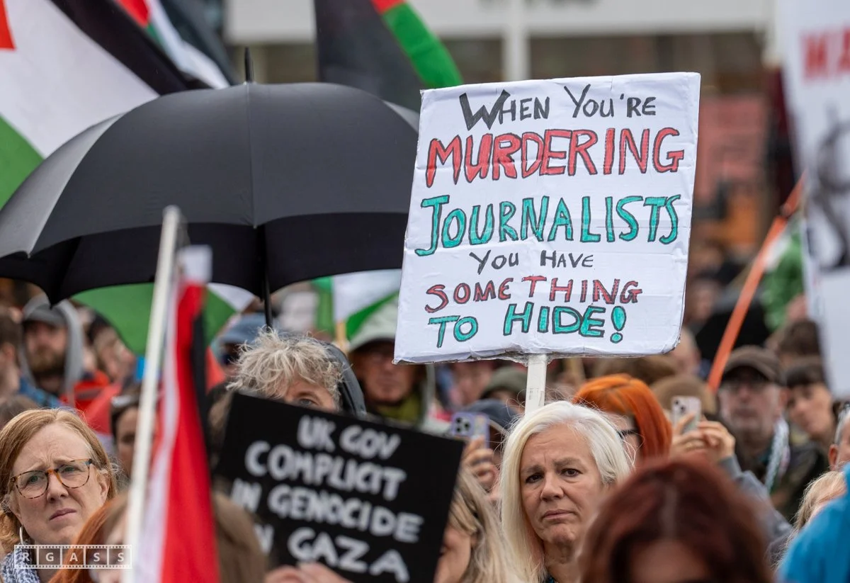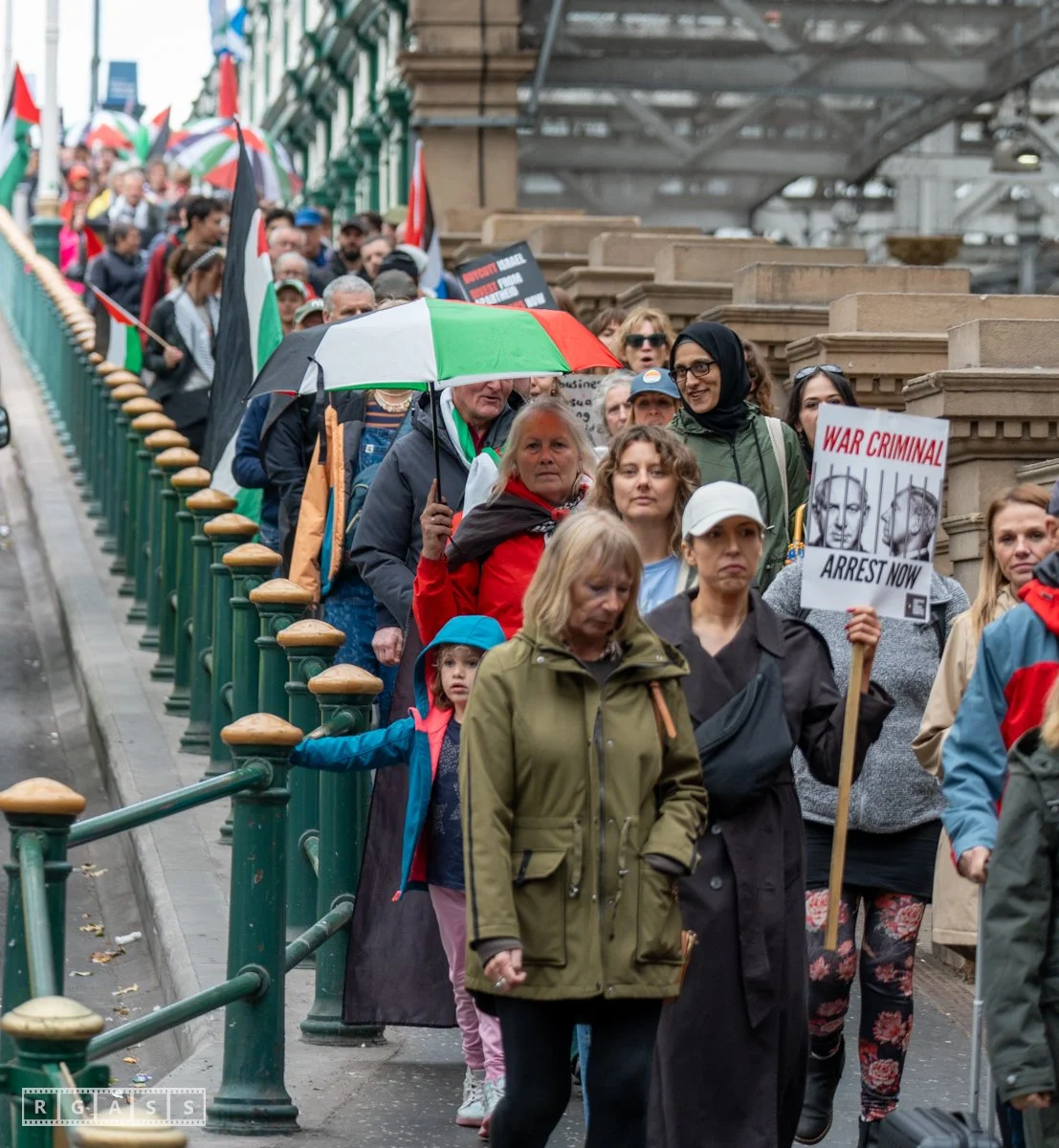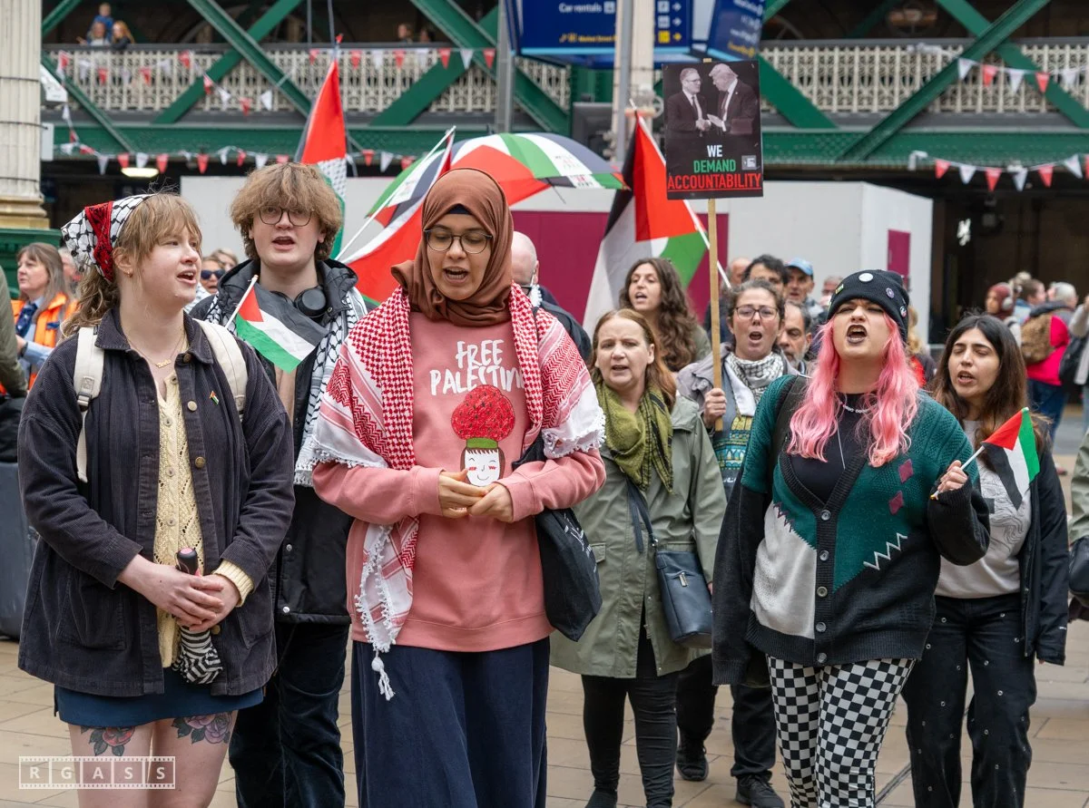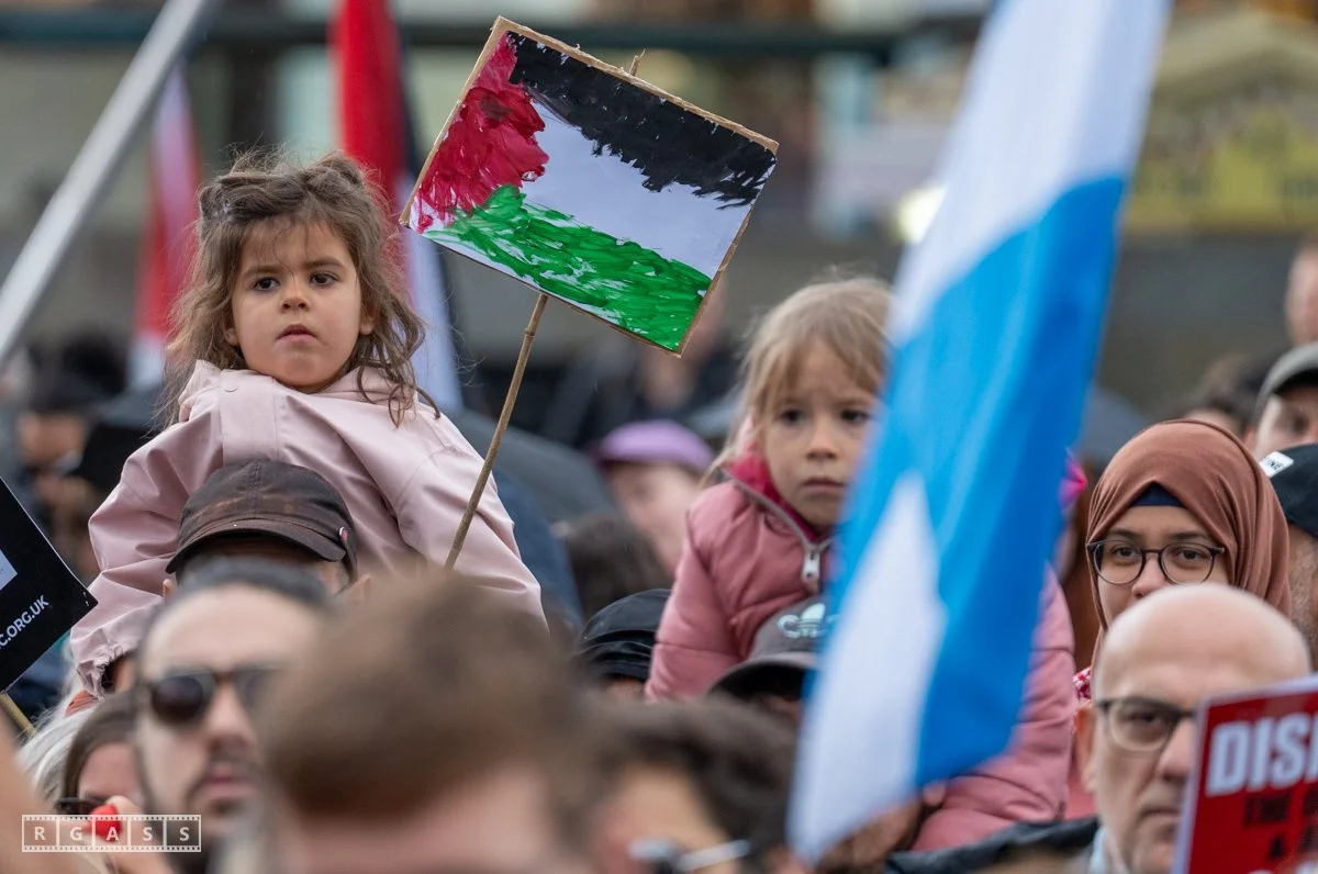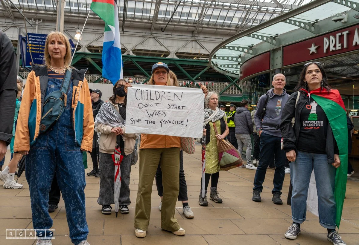 Edinburgh UK. 13 September 2025. Scottish National Demonstration for Palestine “Gaza is being Eroded, Stop the Annihilation”. Static demonstration at the foot of the mound. After the Scottish National Demonstration for Palestine protesters walked to Waverley Station and waited together on the concourse for the train to Glasgow