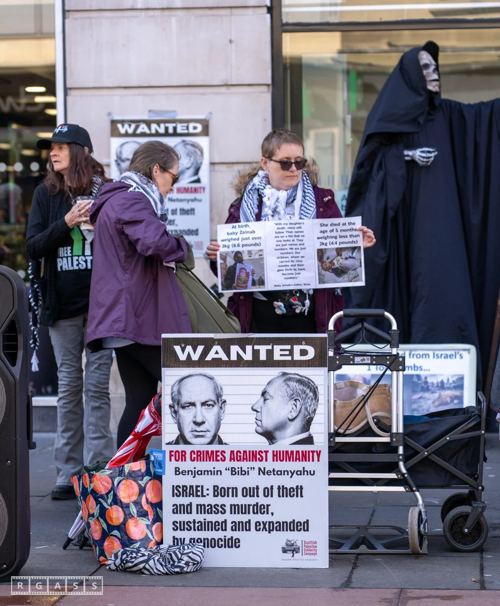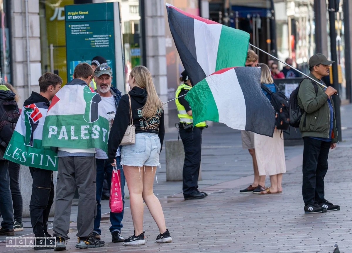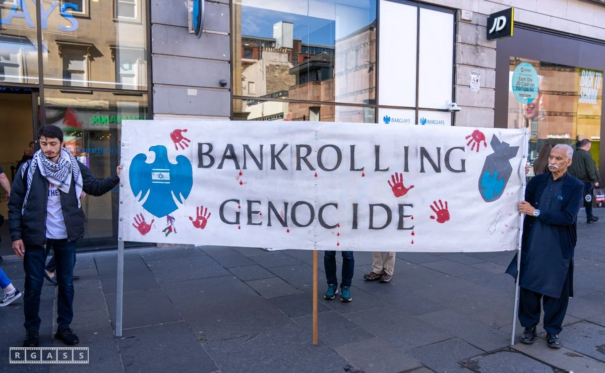 Glasgow UK. 9th August 2025 Pro Palestine protest outside Barclays Bank on Argyll Street.