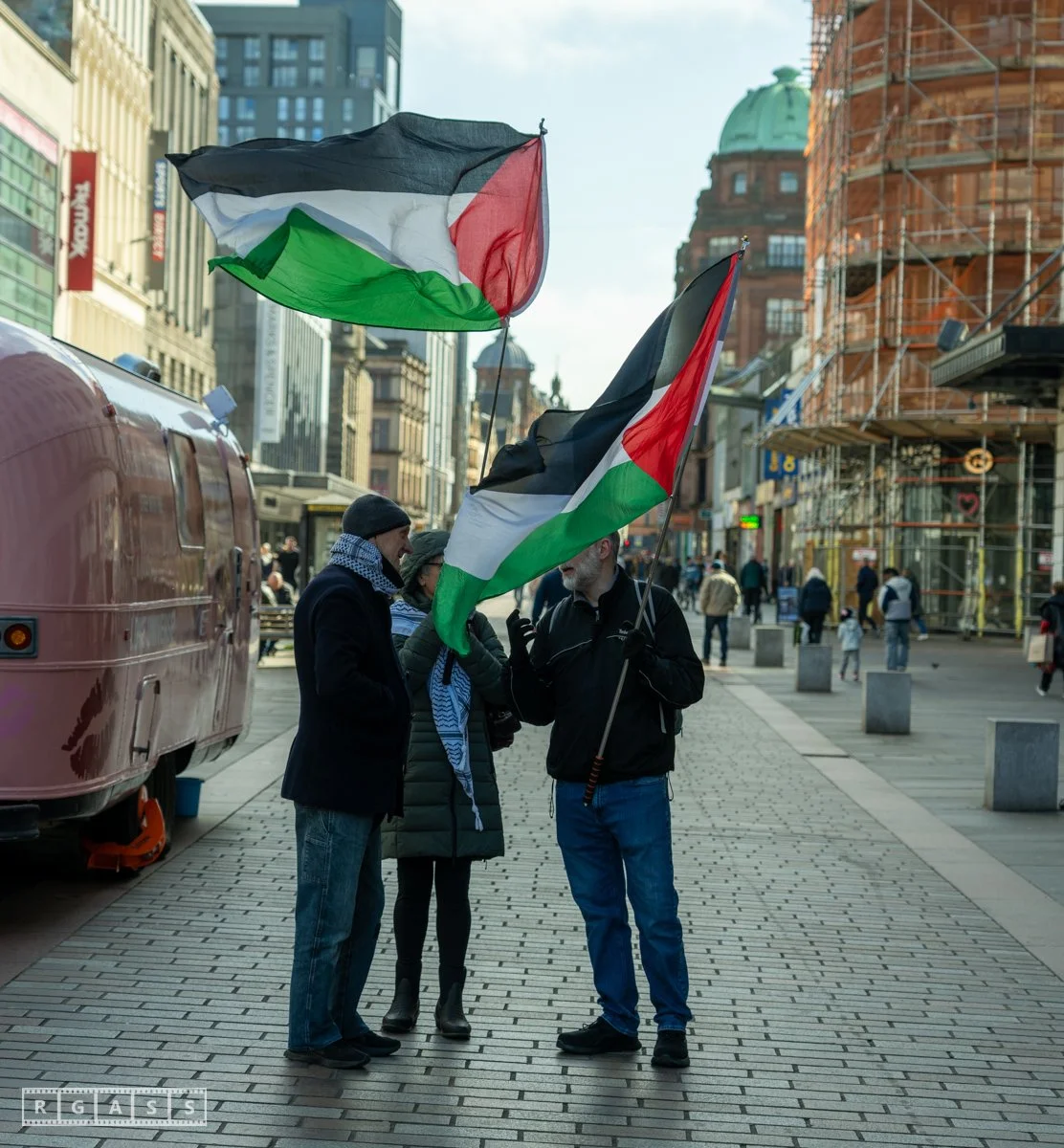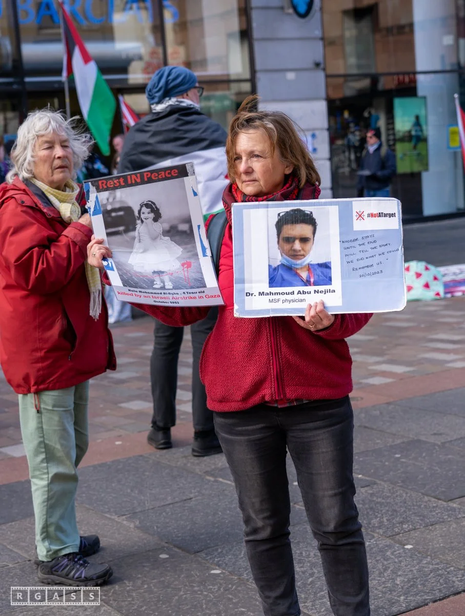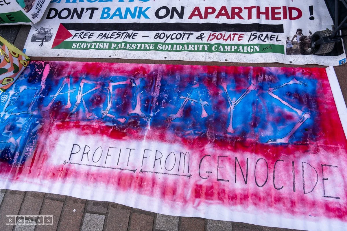 Glasgow UK. 5th April 2025 Pro Palestine protest outside Barclays Bank on Argyll Street.