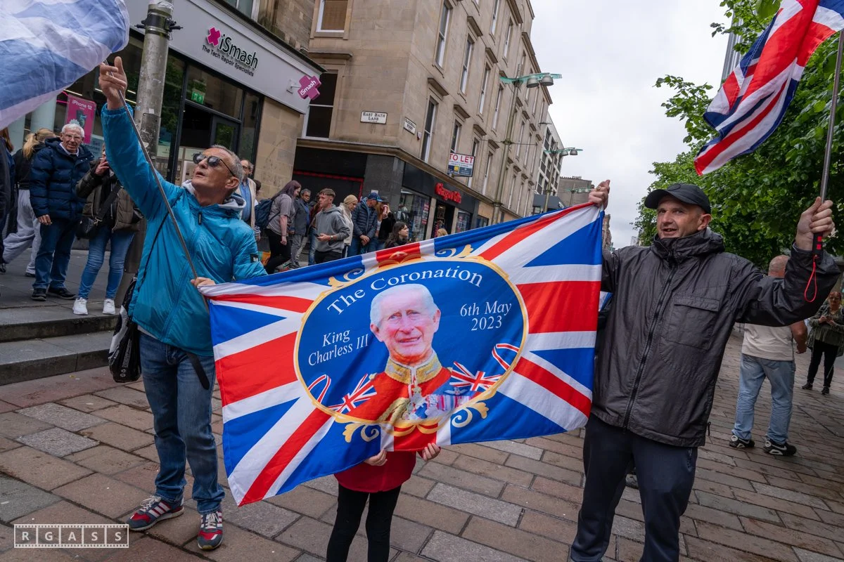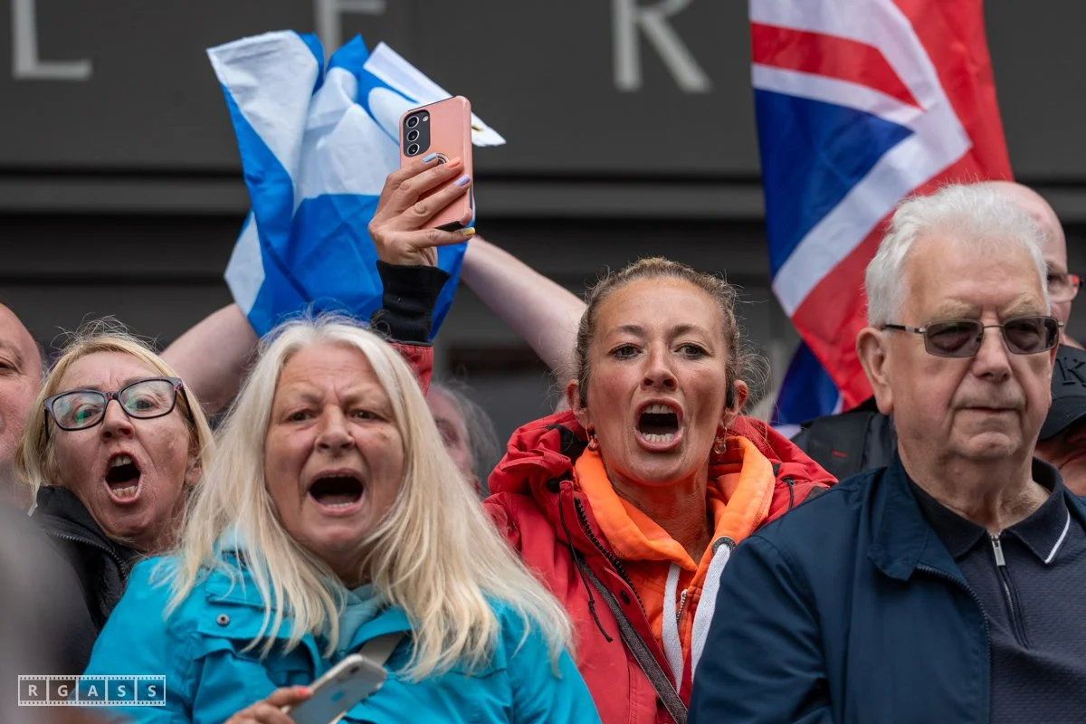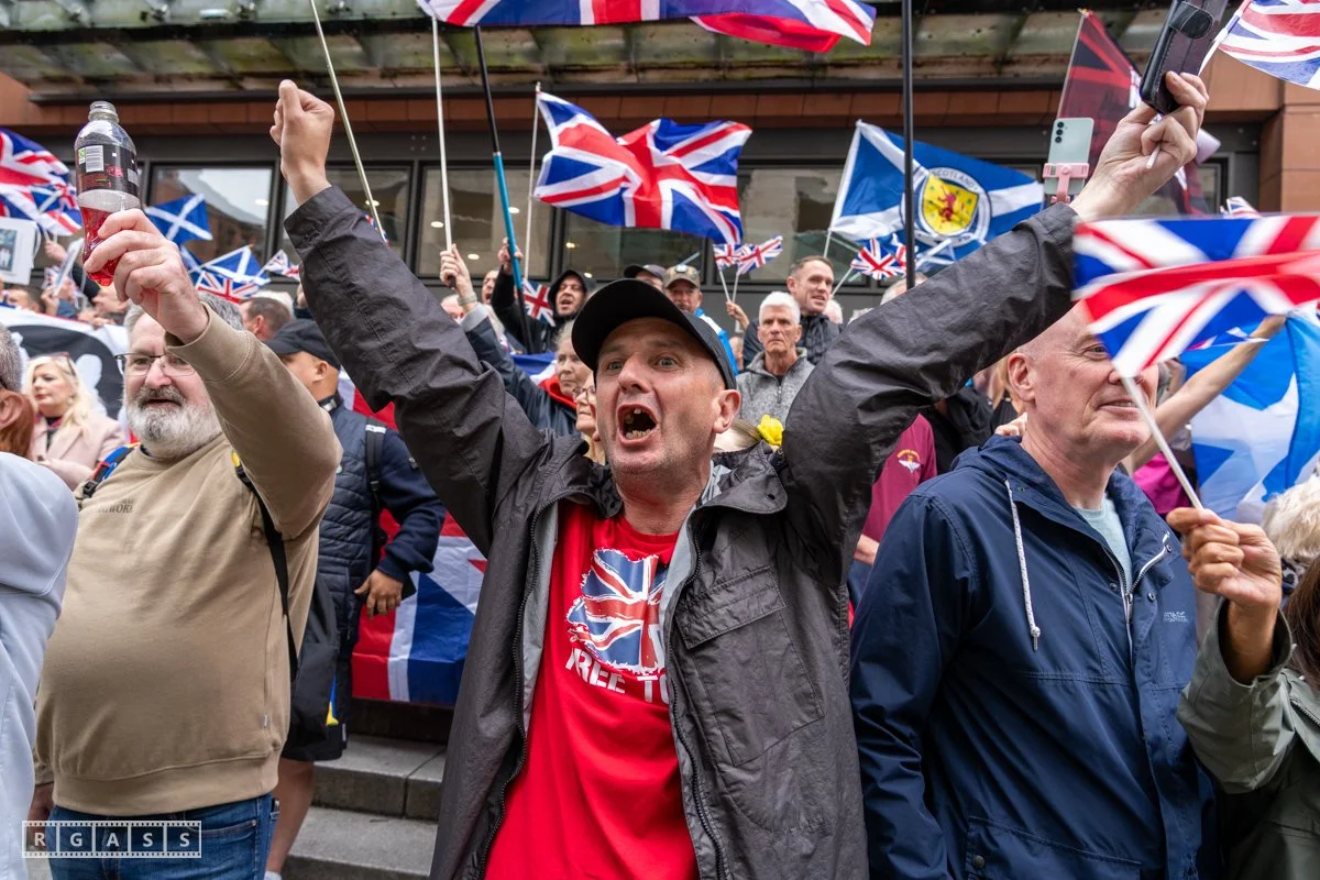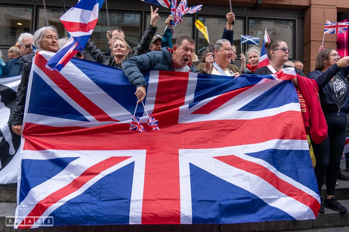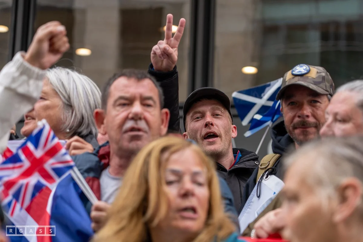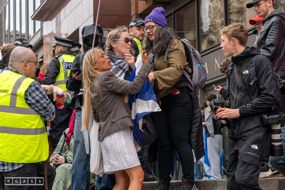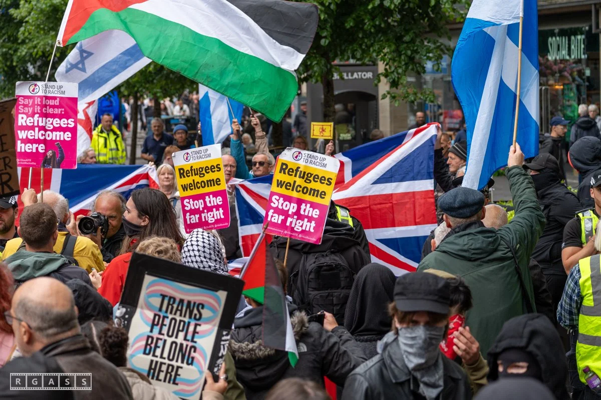May 24, 2025, Glasgow, UK: Protestors supporting the Great British National Strike are met by large numbers of counter-protesters from ‘Stand Up To Racism Scotland’ and Pro-Palestinian Supporters and trade unions.
