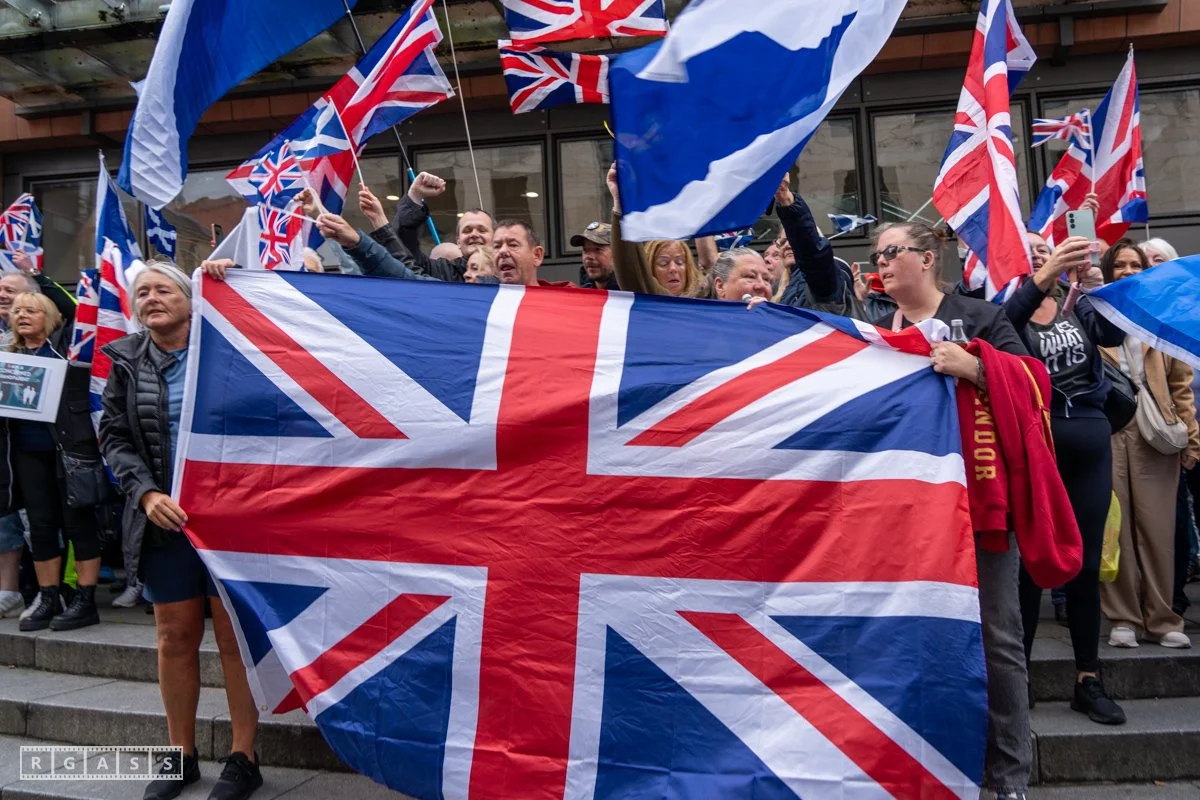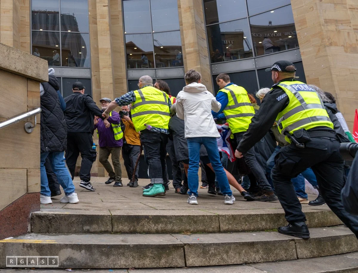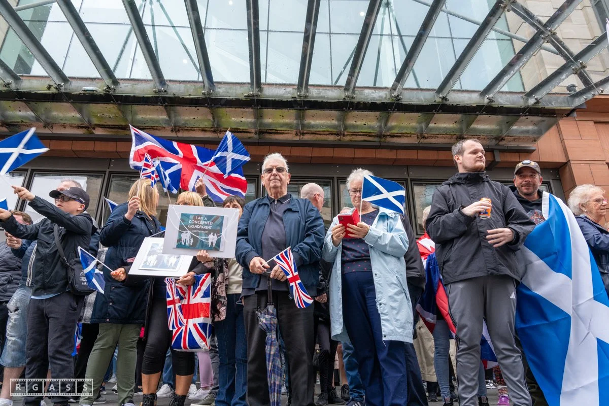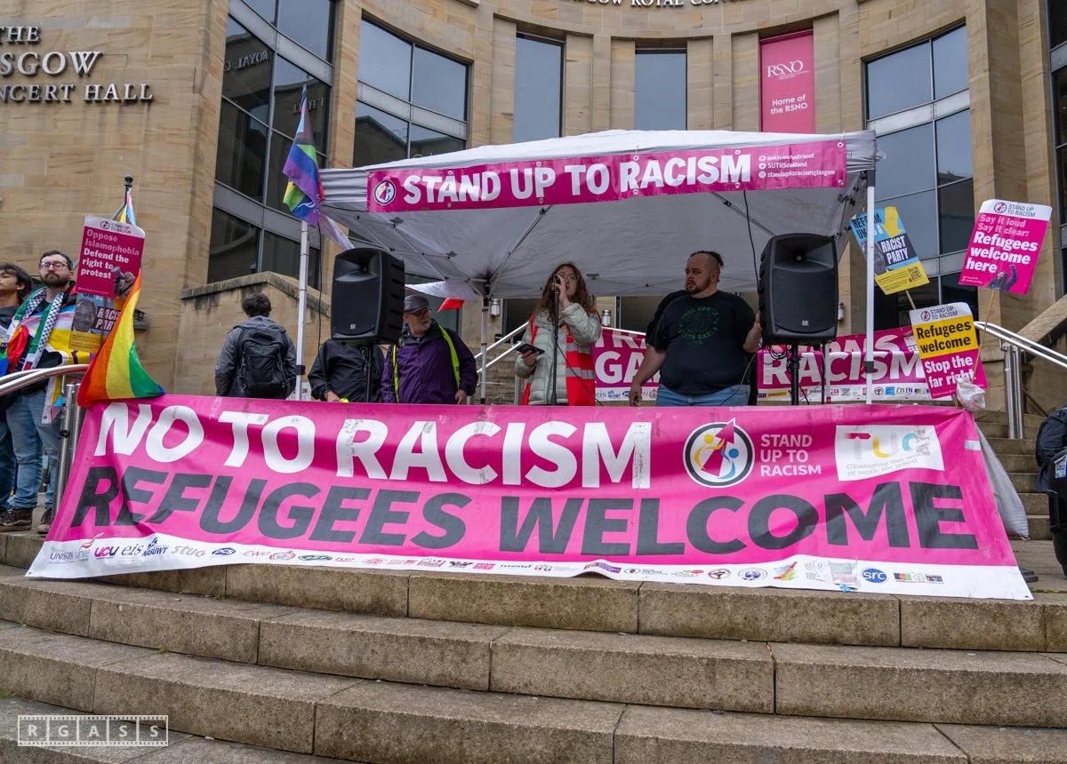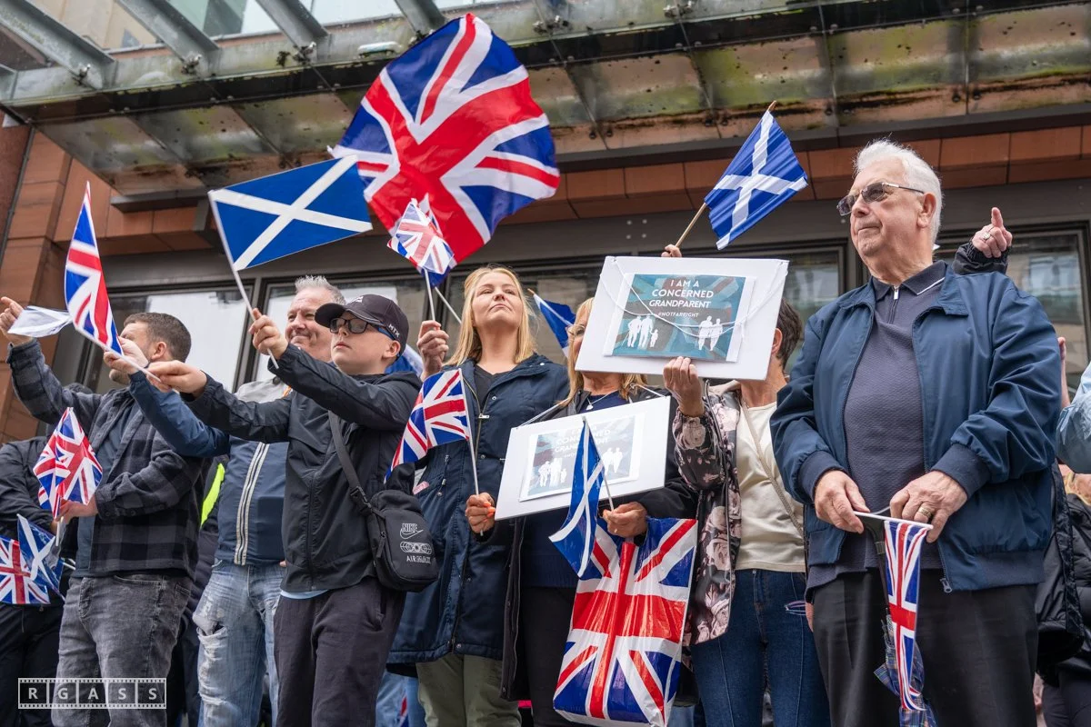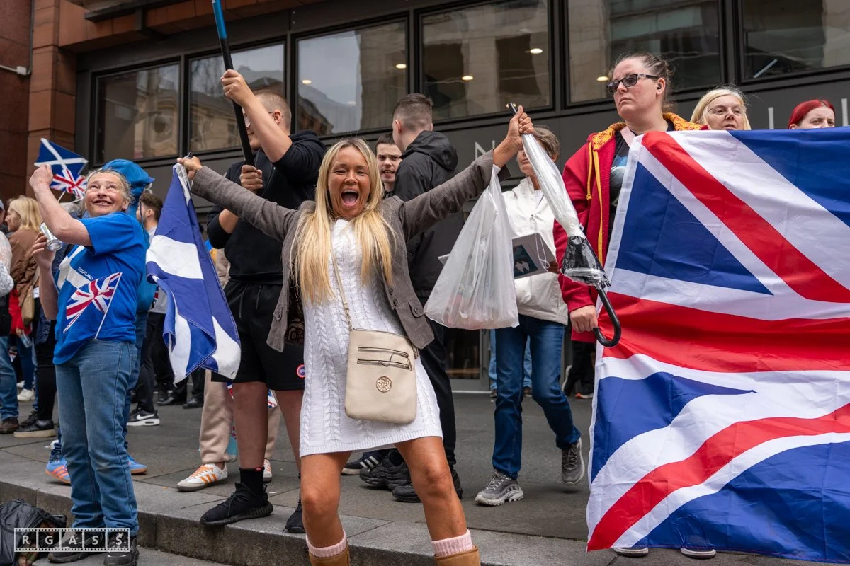 May 24, 2025, Glasgow, UK: Protestors supporting the Great British National Strike are met by large numbers of counter-protesters from ‘Stand Up To Racism Scotland’ and Pro-Palestinian Supporters and trade unions.