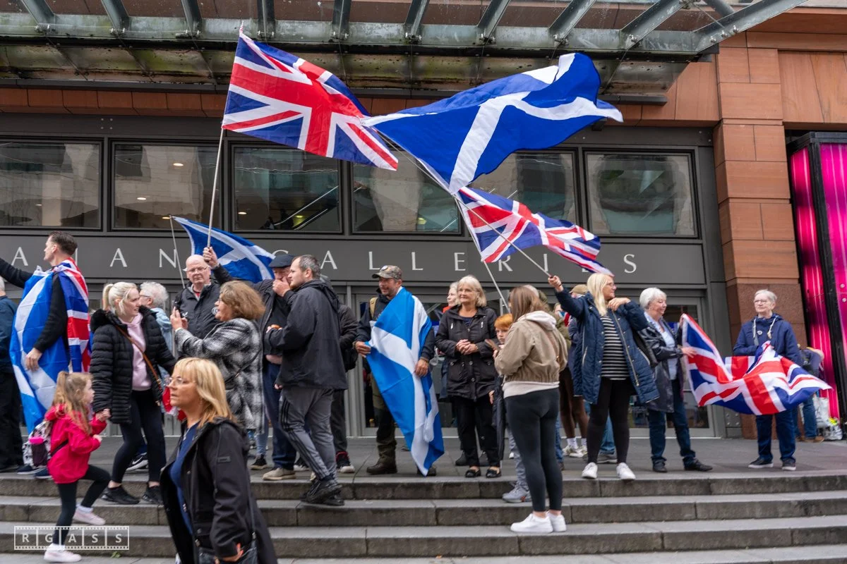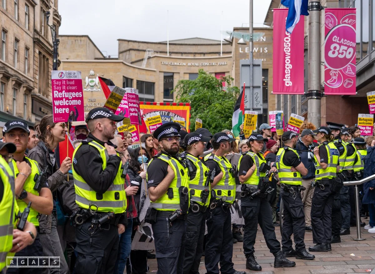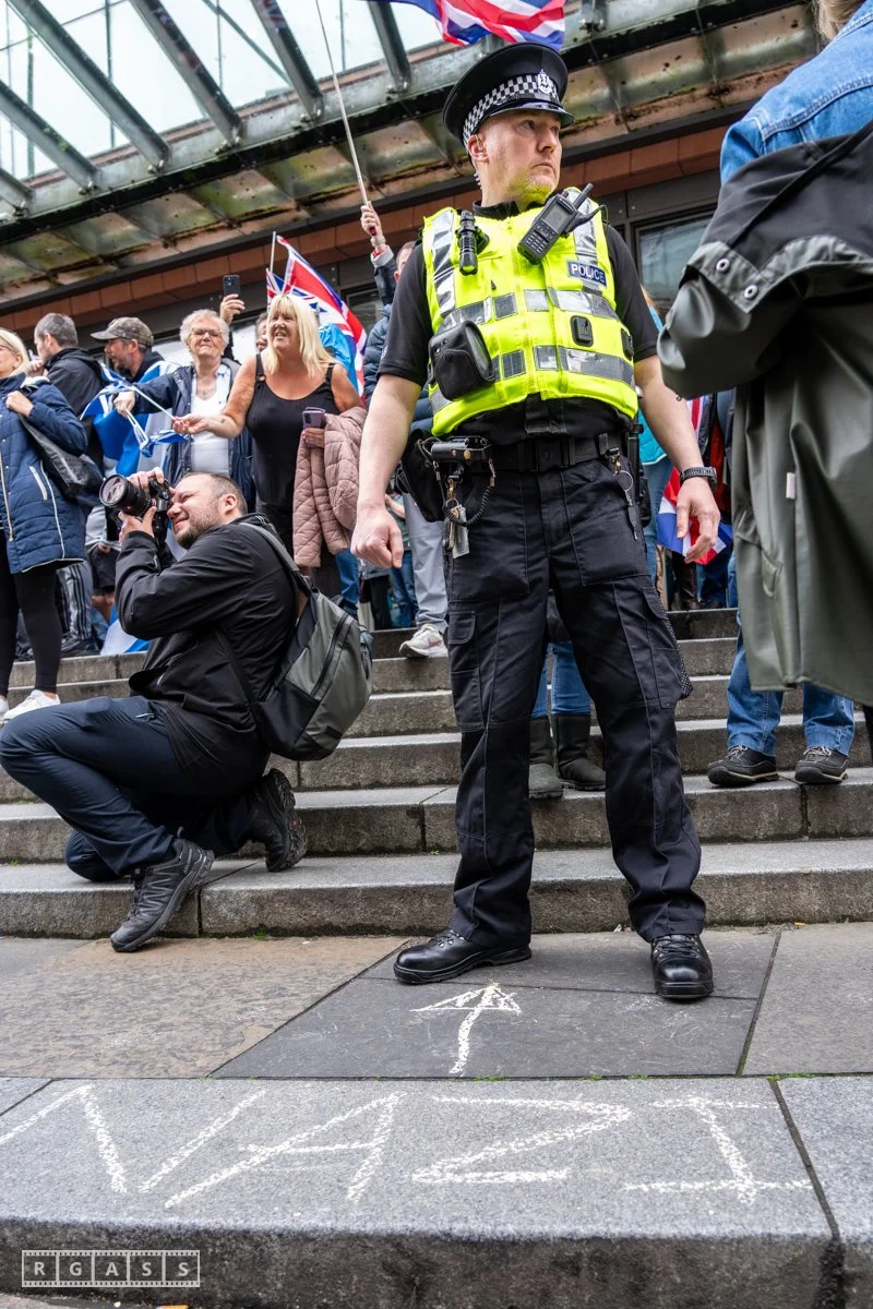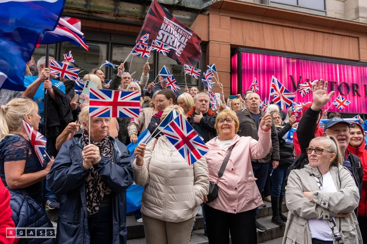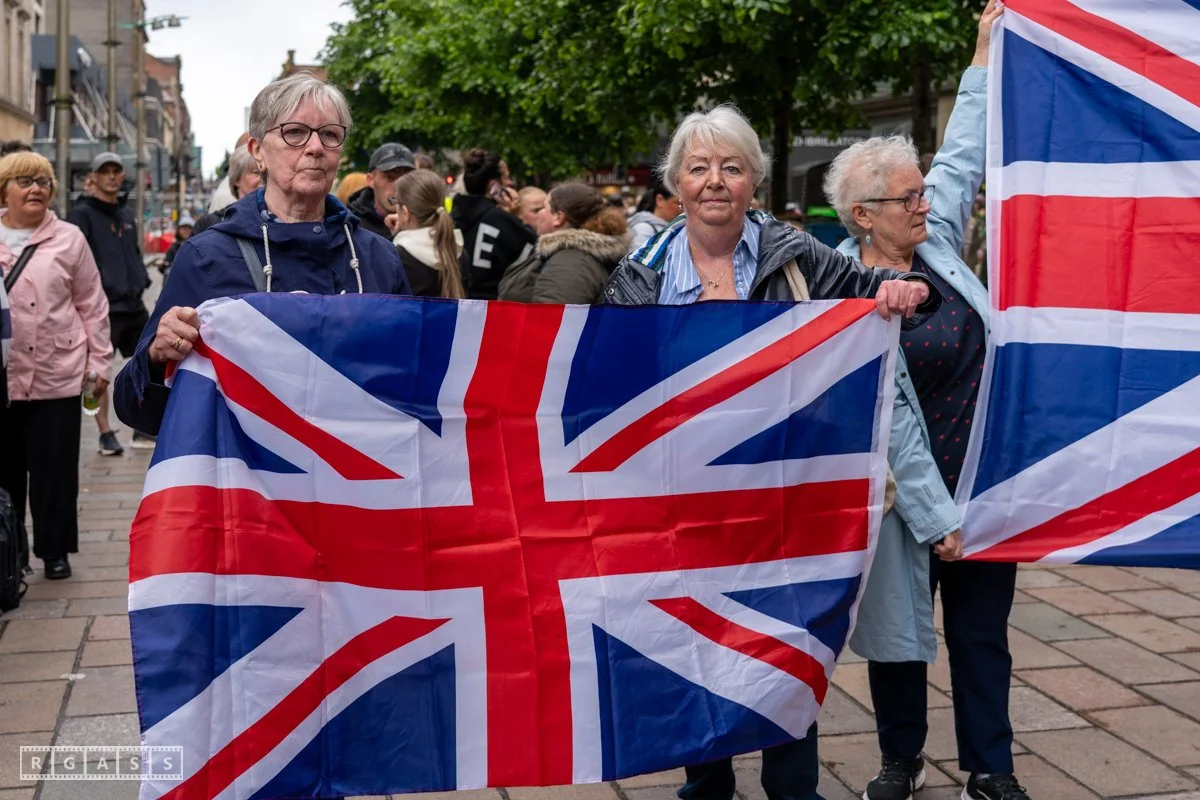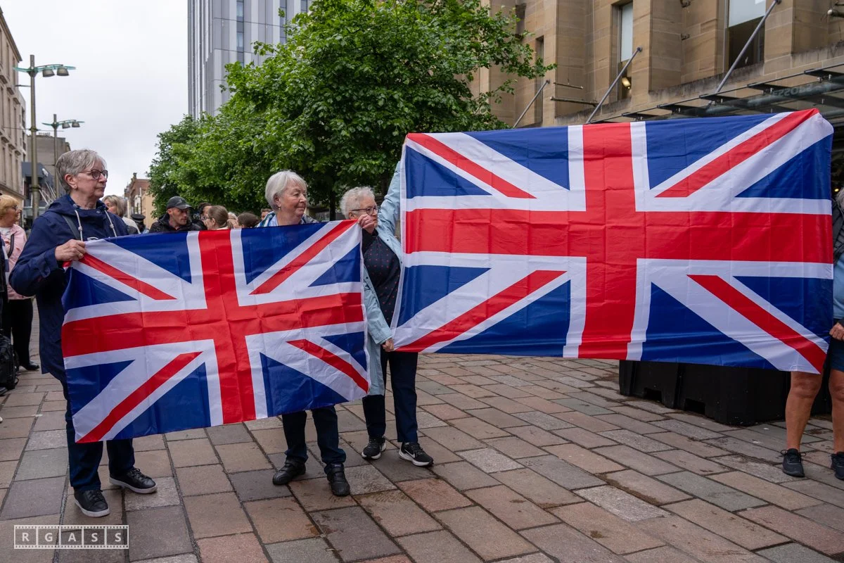 May 24, 2025, Glasgow, UK: Protestors supporting the Great British National Strike are met by large numbers of counter-protesters from ‘Stand Up To Racism Scotland’ and Pro-Palestinian Supporters and trade unions.