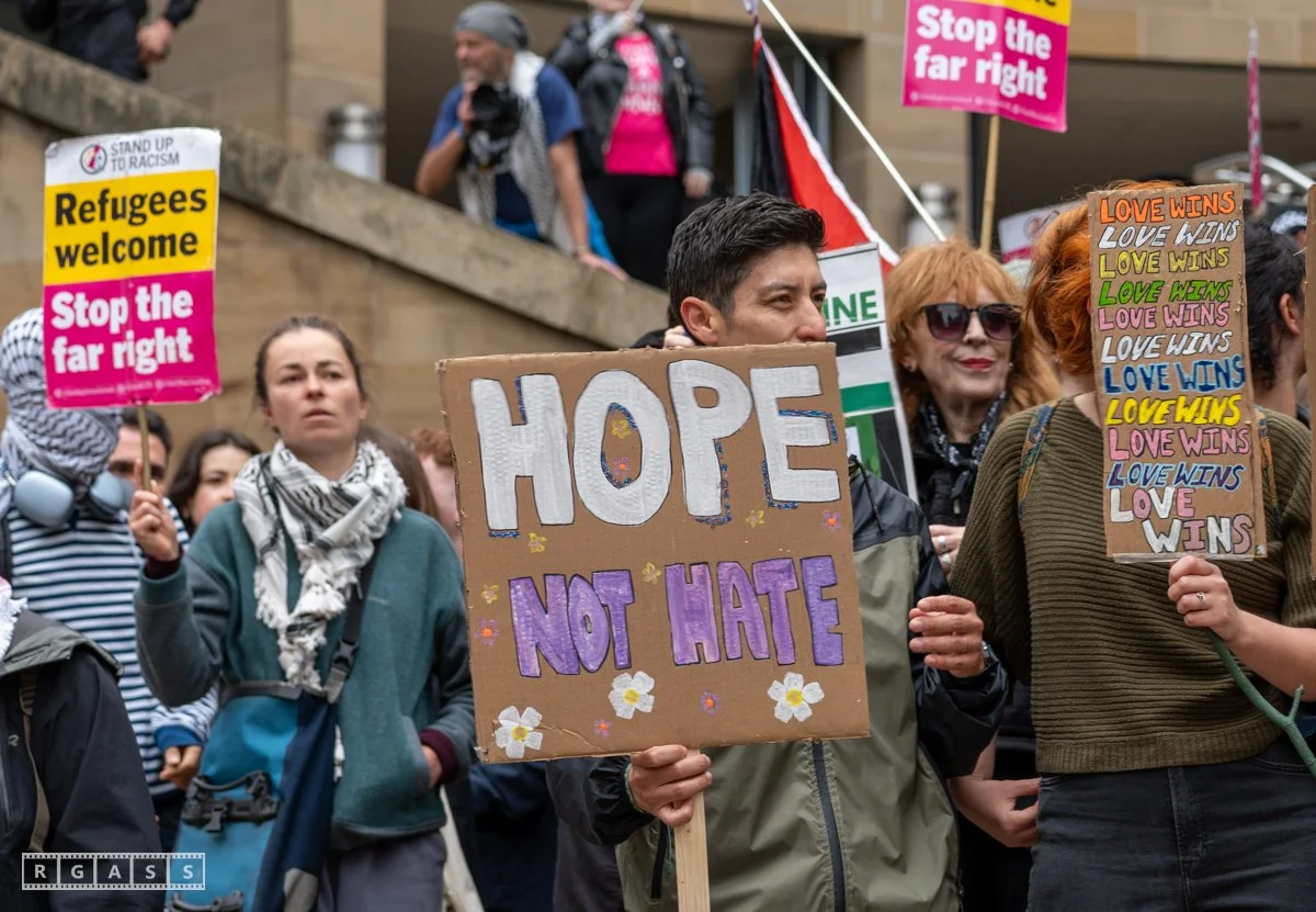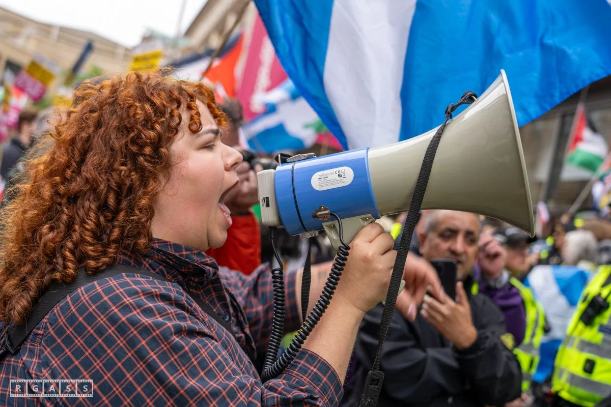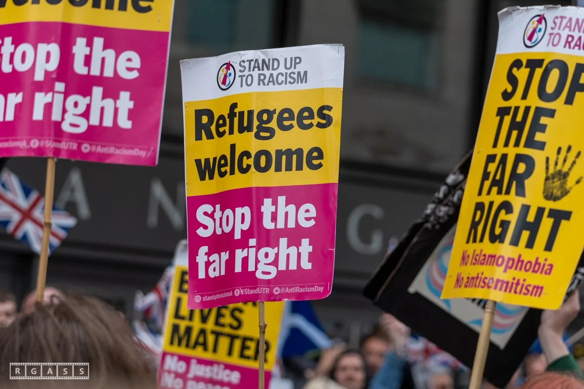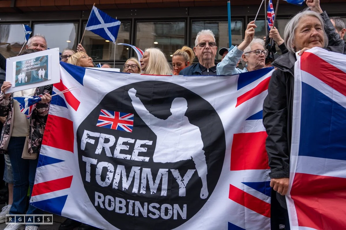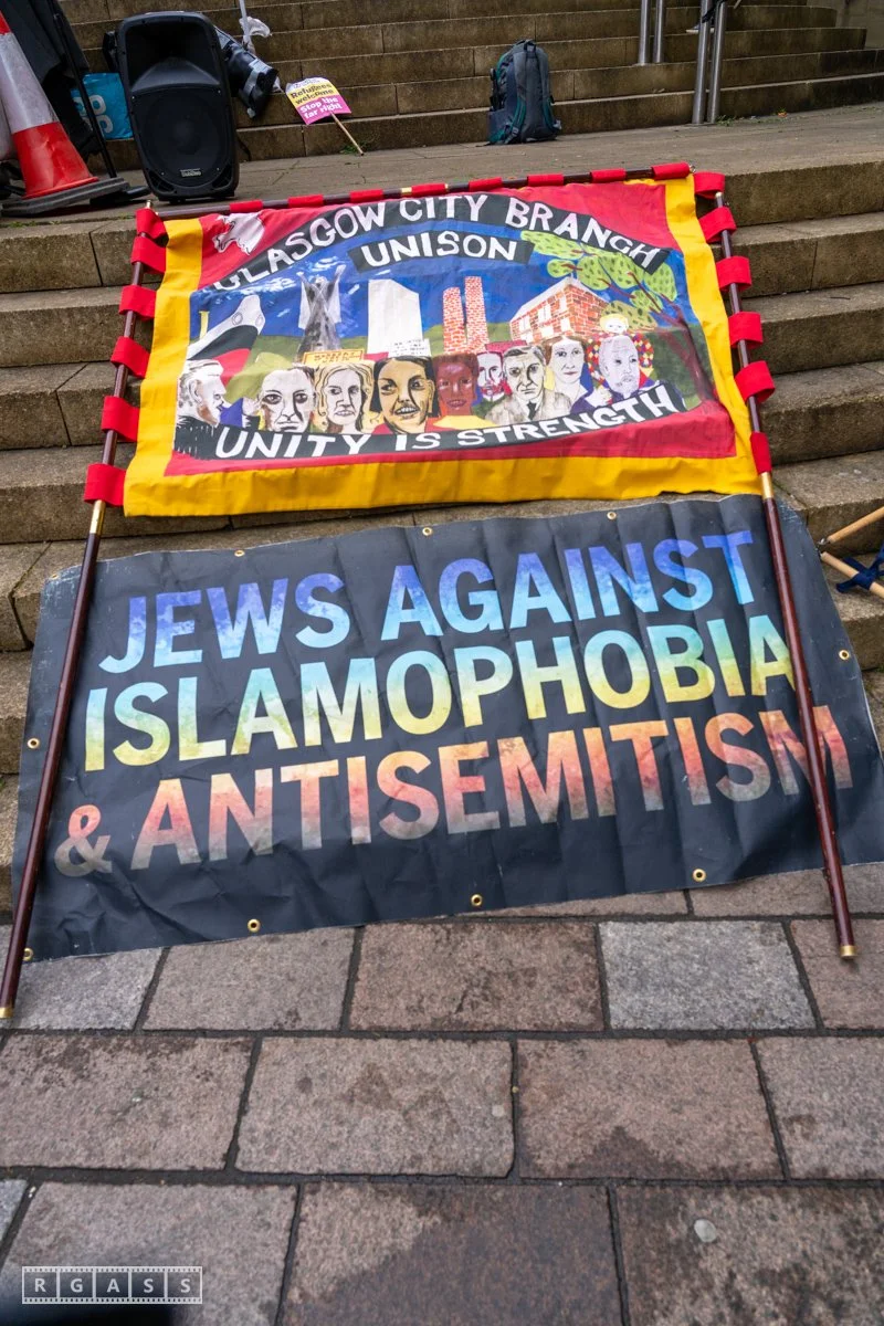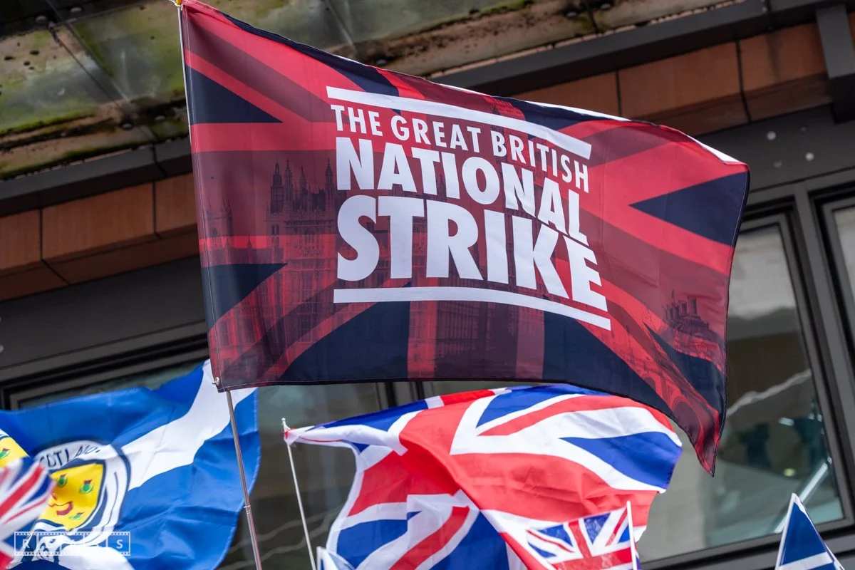 May 24, 2025, Glasgow, UK: Protestors supporting the Great British National Strike are met by large numbers of counter-protesters from ‘Stand Up To Racism Scotland’ and Pro-Palestinian Supporters and trade unions.