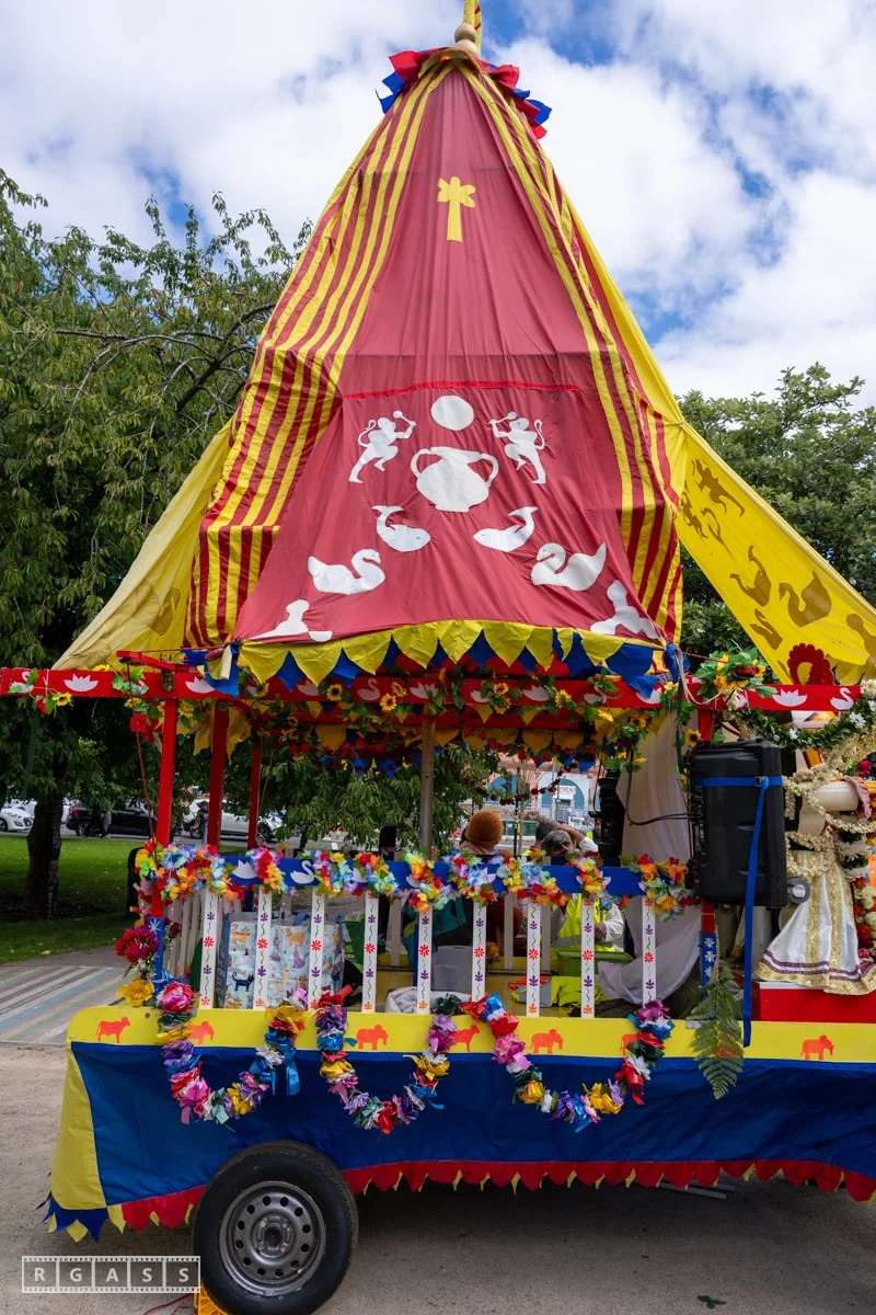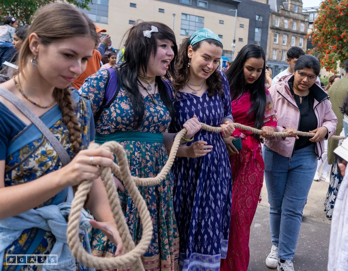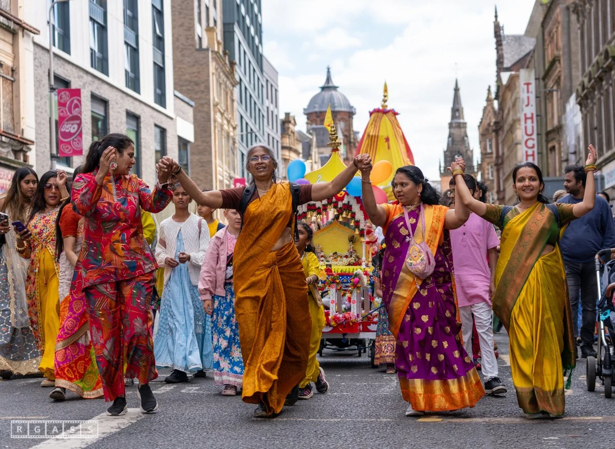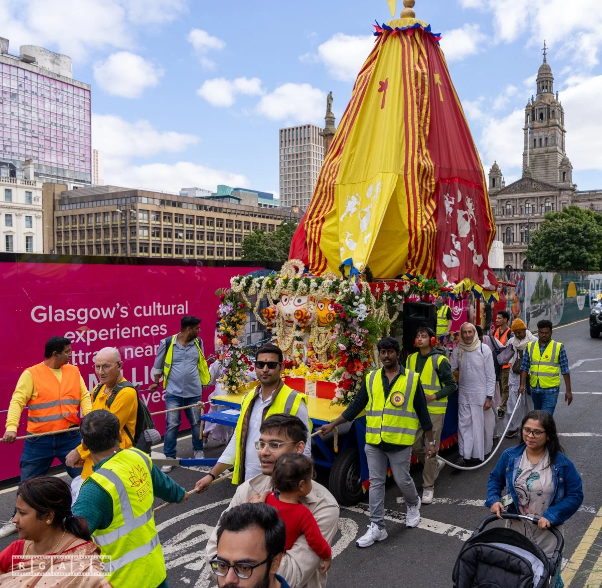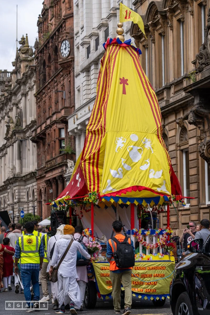 2nd August 2025, Glasgow, UK: ISKCON Glasgow Festival of Chariots (Ratha Yatra) from Barrowland Park parade with music, dance, and a chance to pull the chariot of Lord Jagannath.