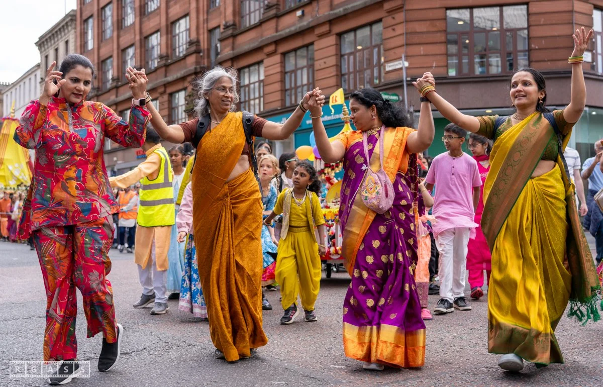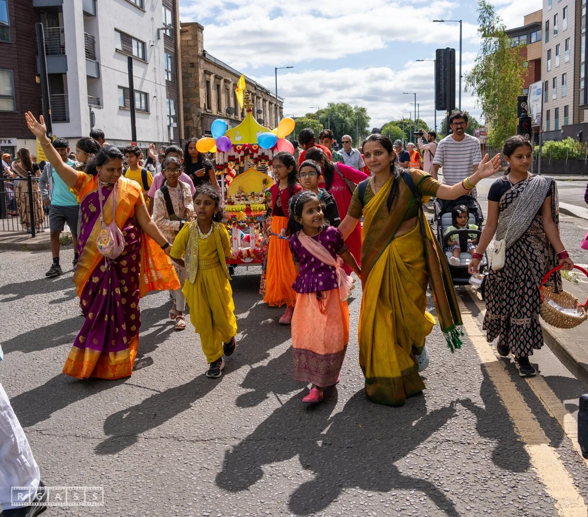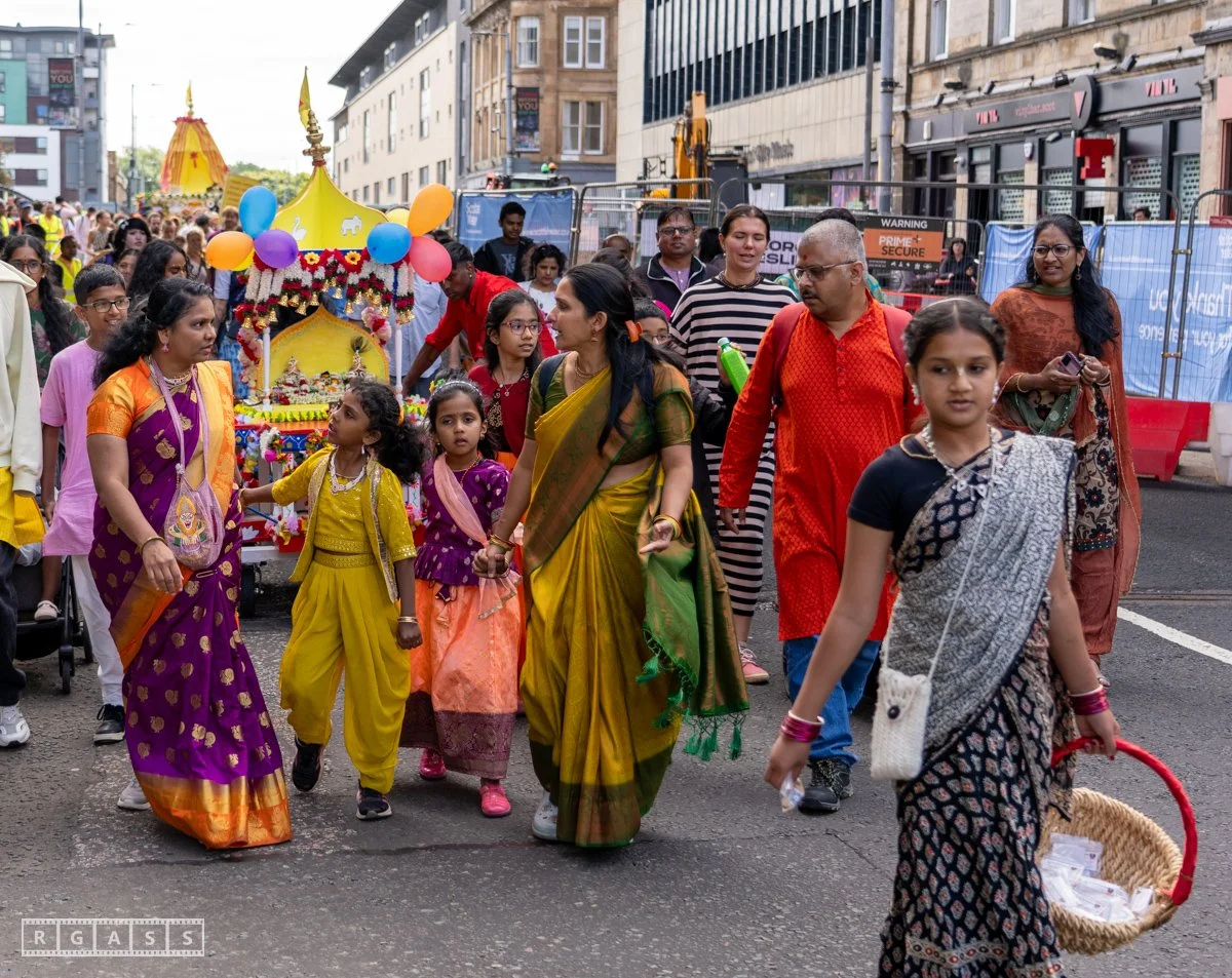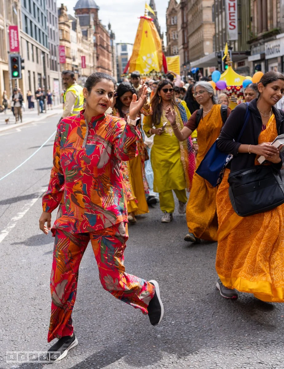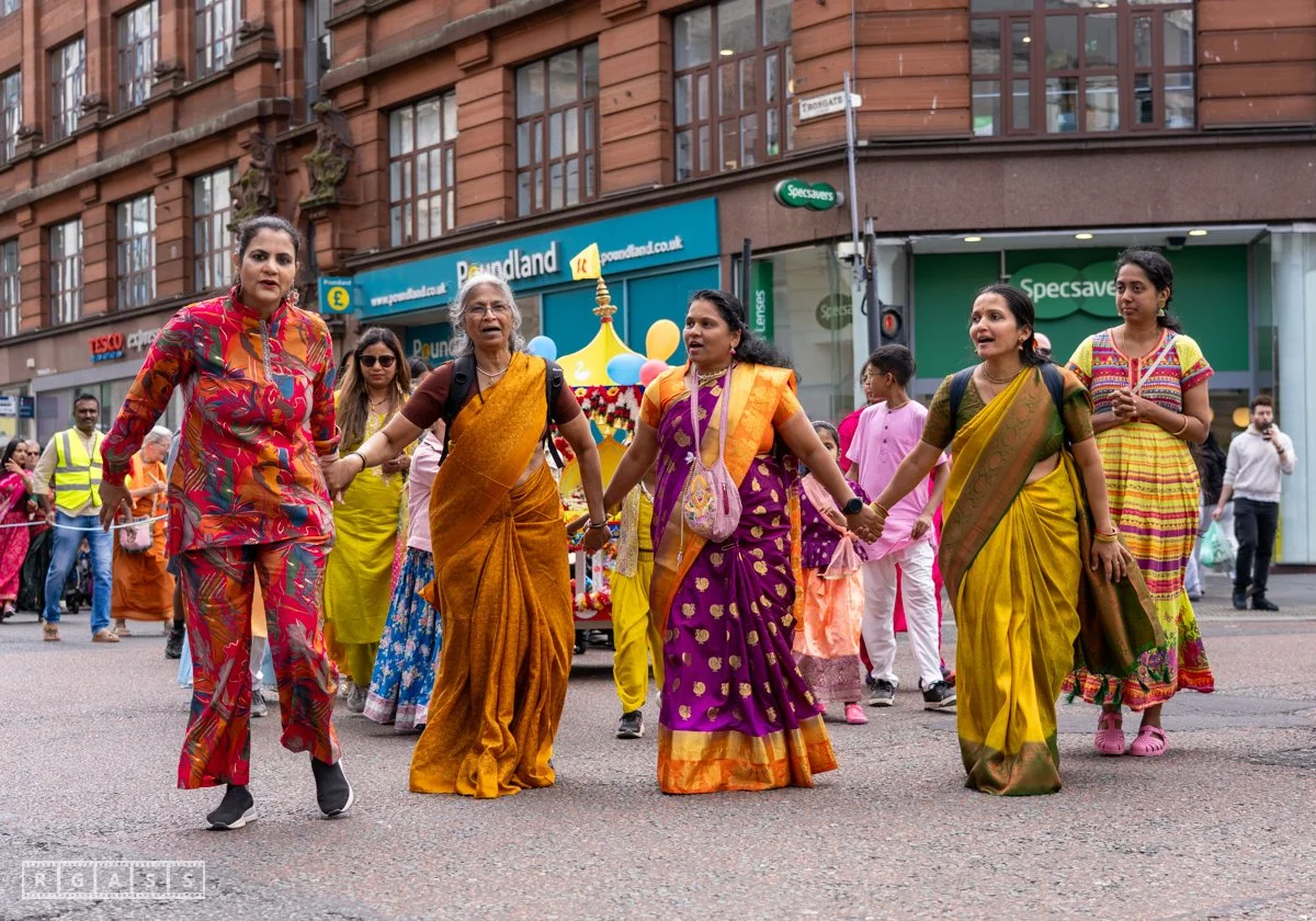 2nd August 2025, Glasgow, UK: ISKCON Glasgow Festival of Chariots (Ratha Yatra) from Barrowland Park parade with music, dance, and a chance to pull the chariot of Lord Jagannath.