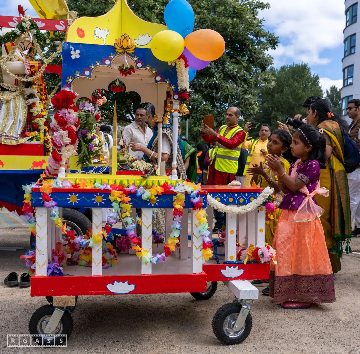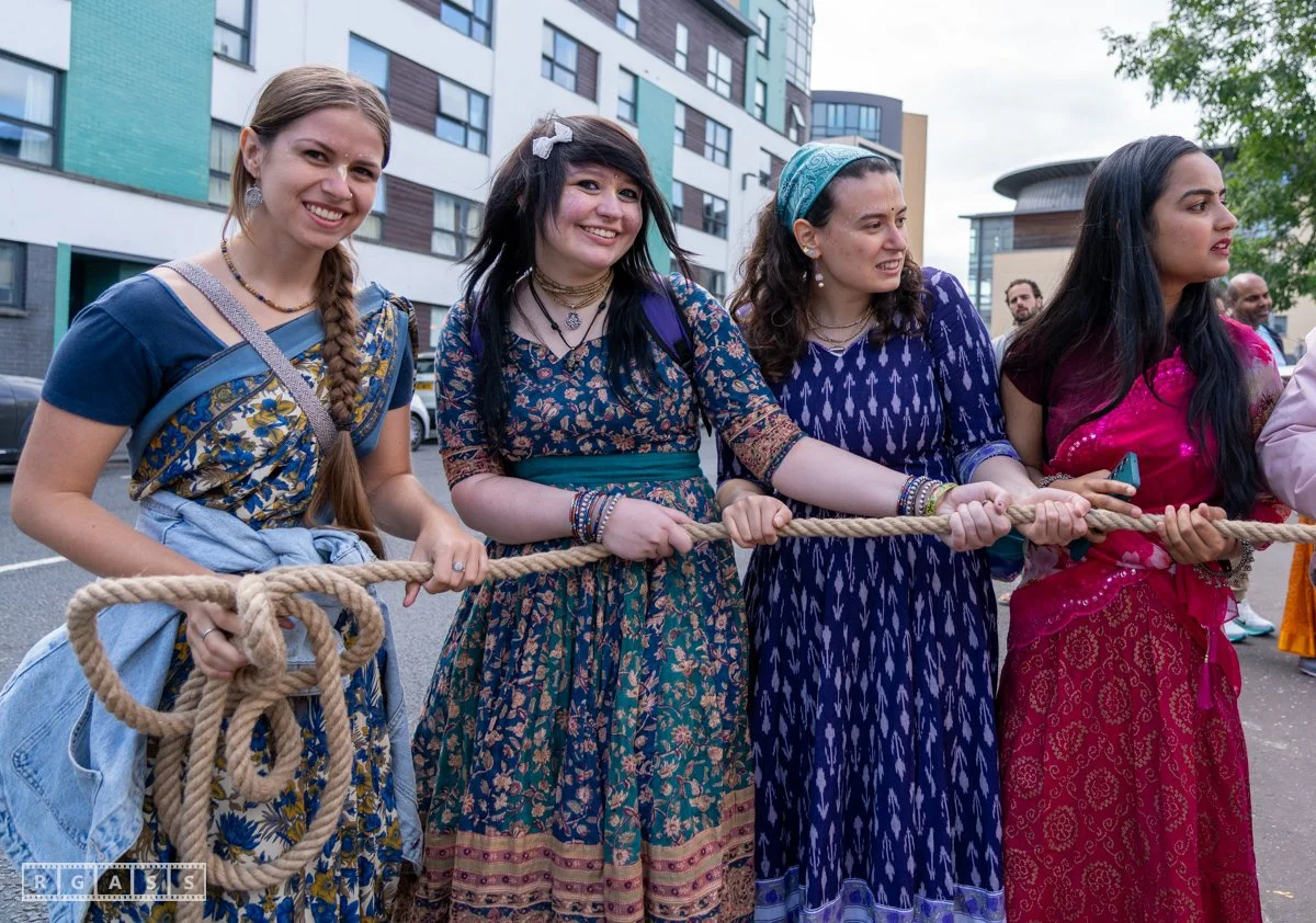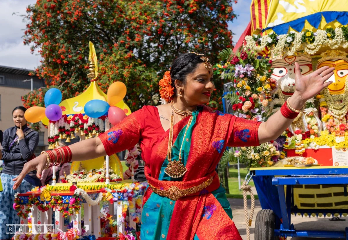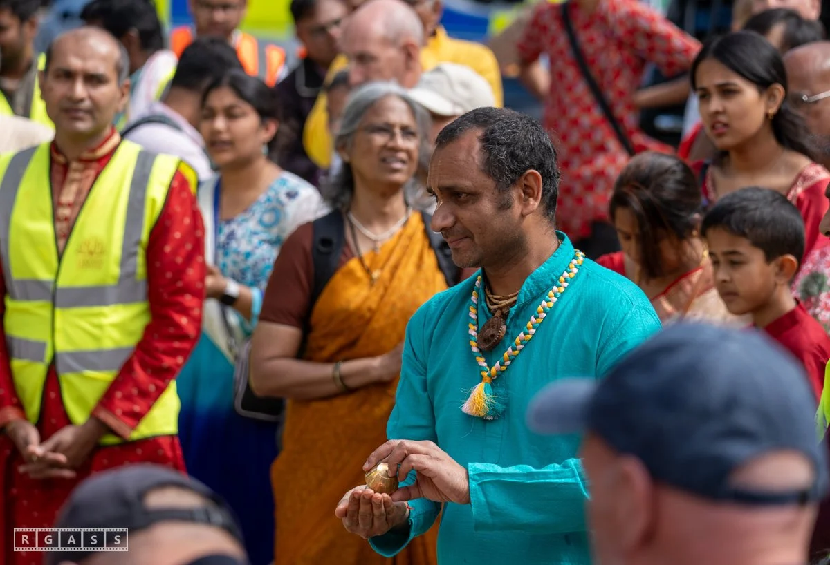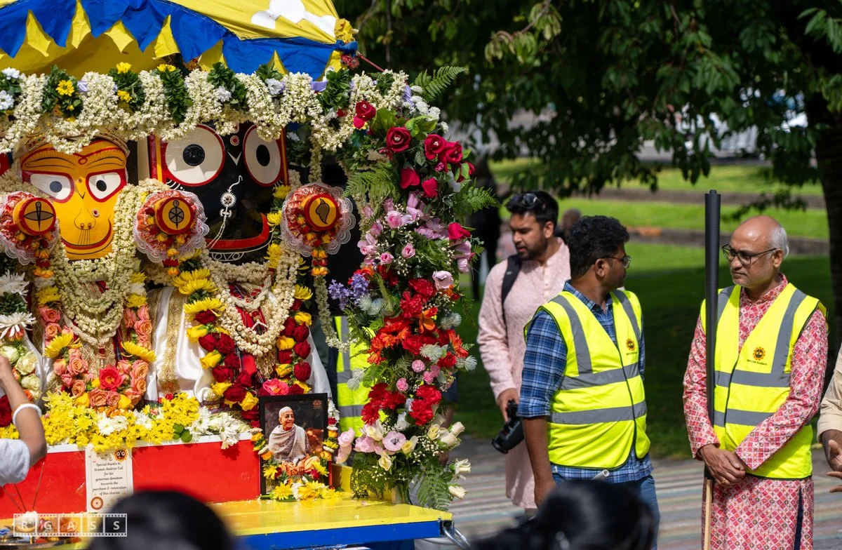 2nd August 2025, Glasgow, UK: ISKCON Glasgow Festival of Chariots (Ratha Yatra) from Barrowland Park parade with music, dance, and a chance to pull the chariot of Lord Jagannath.