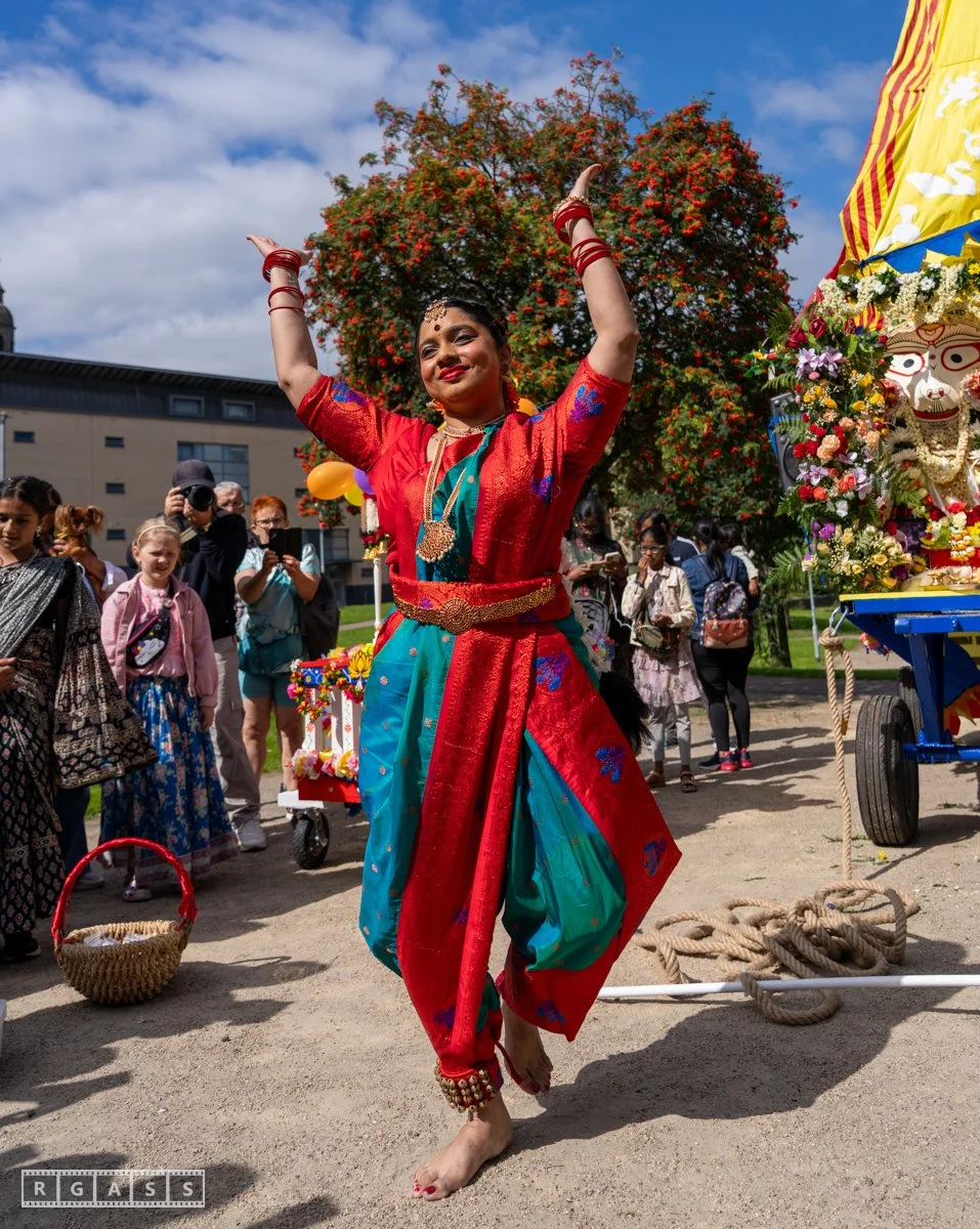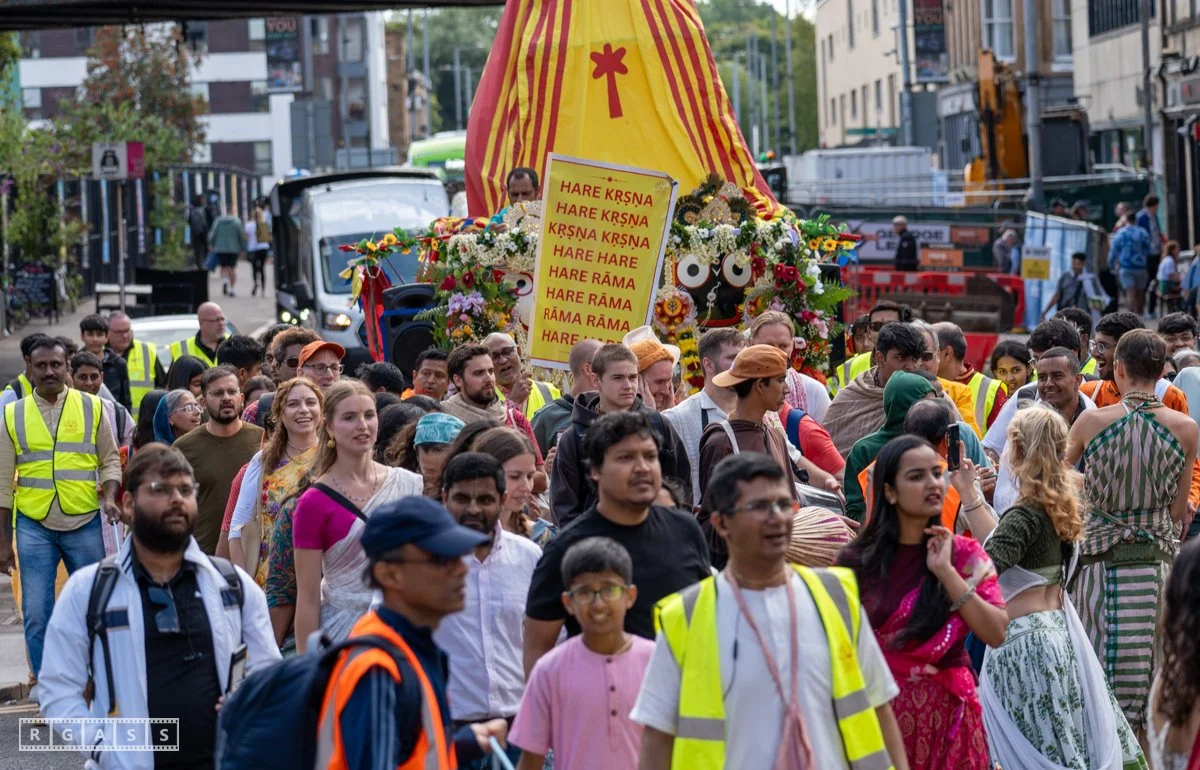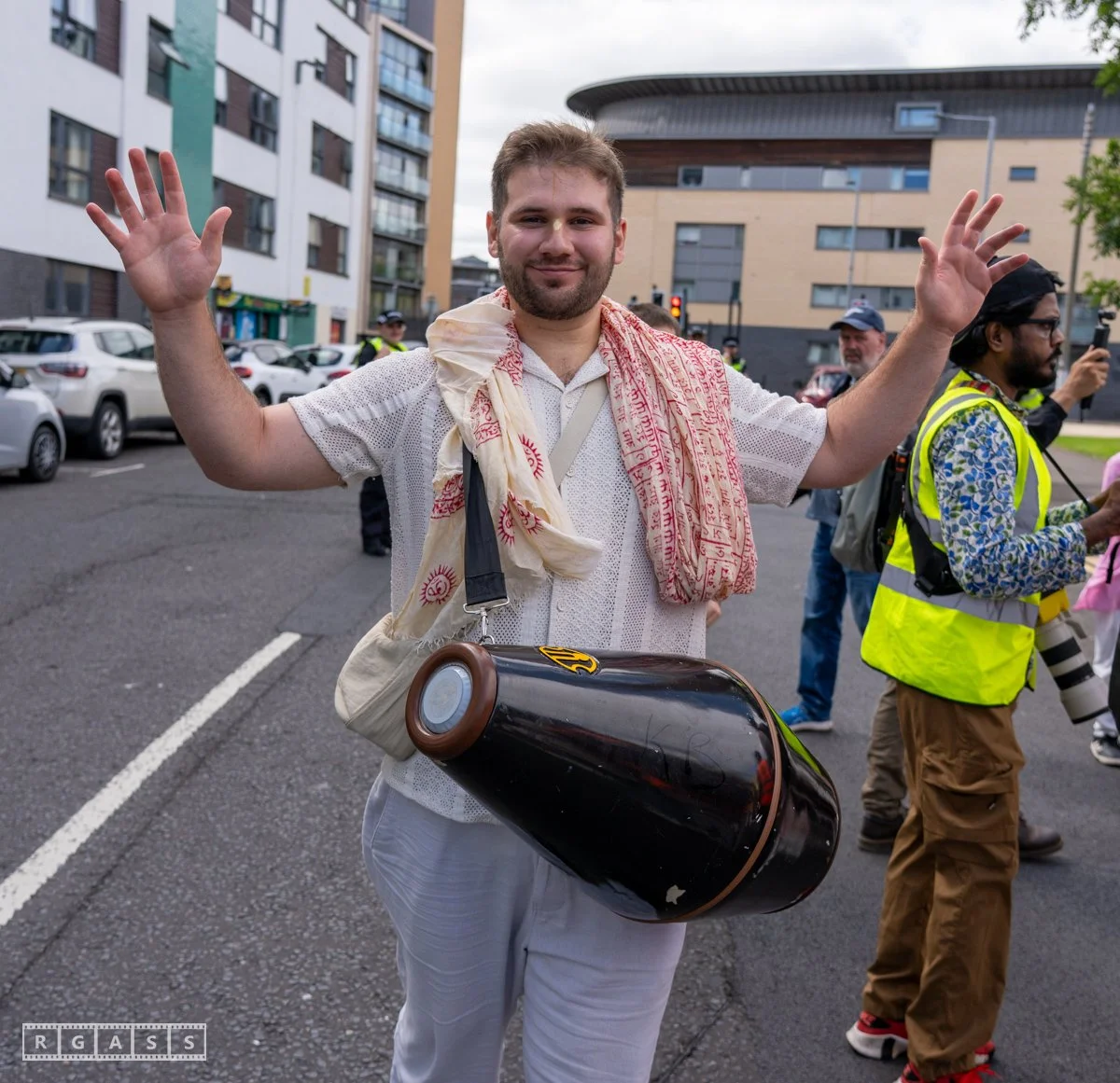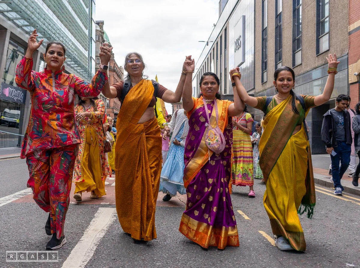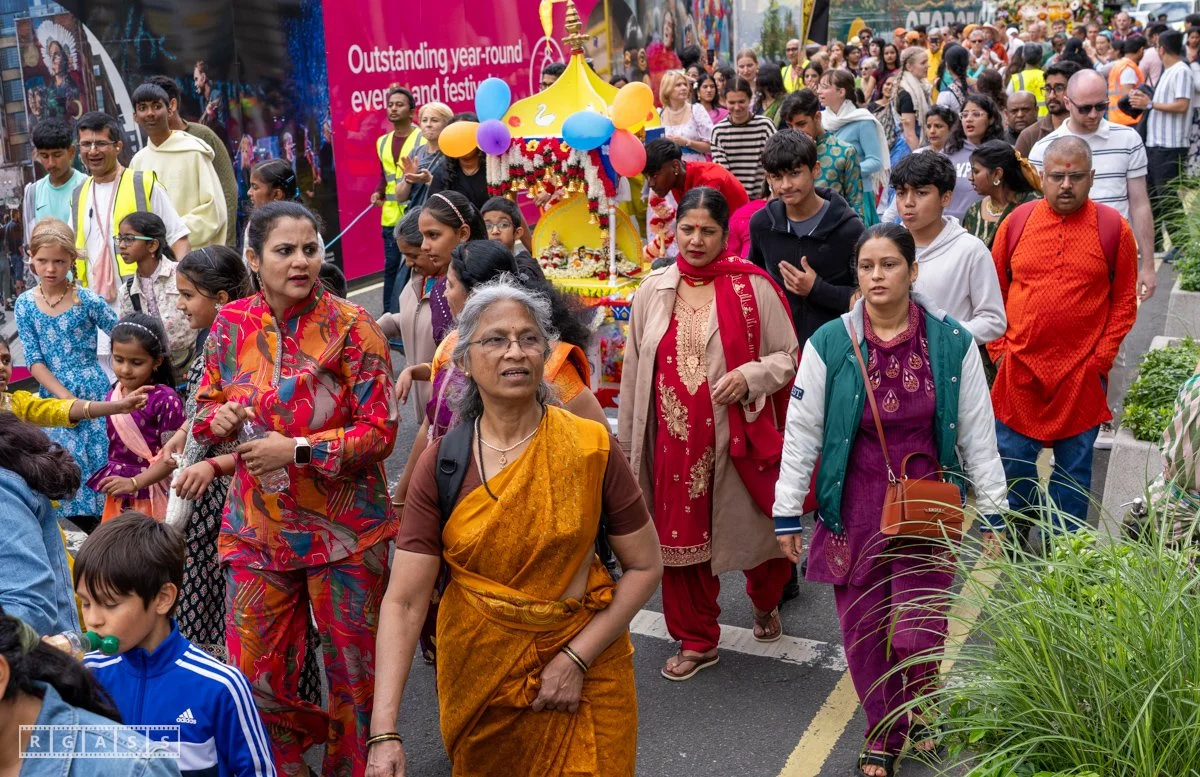 2nd August 2025, Glasgow, UK: ISKCON Glasgow Festival of Chariots (Ratha Yatra) from Barrowland Park parade with music, dance, and a chance to pull the chariot of Lord Jagannath.