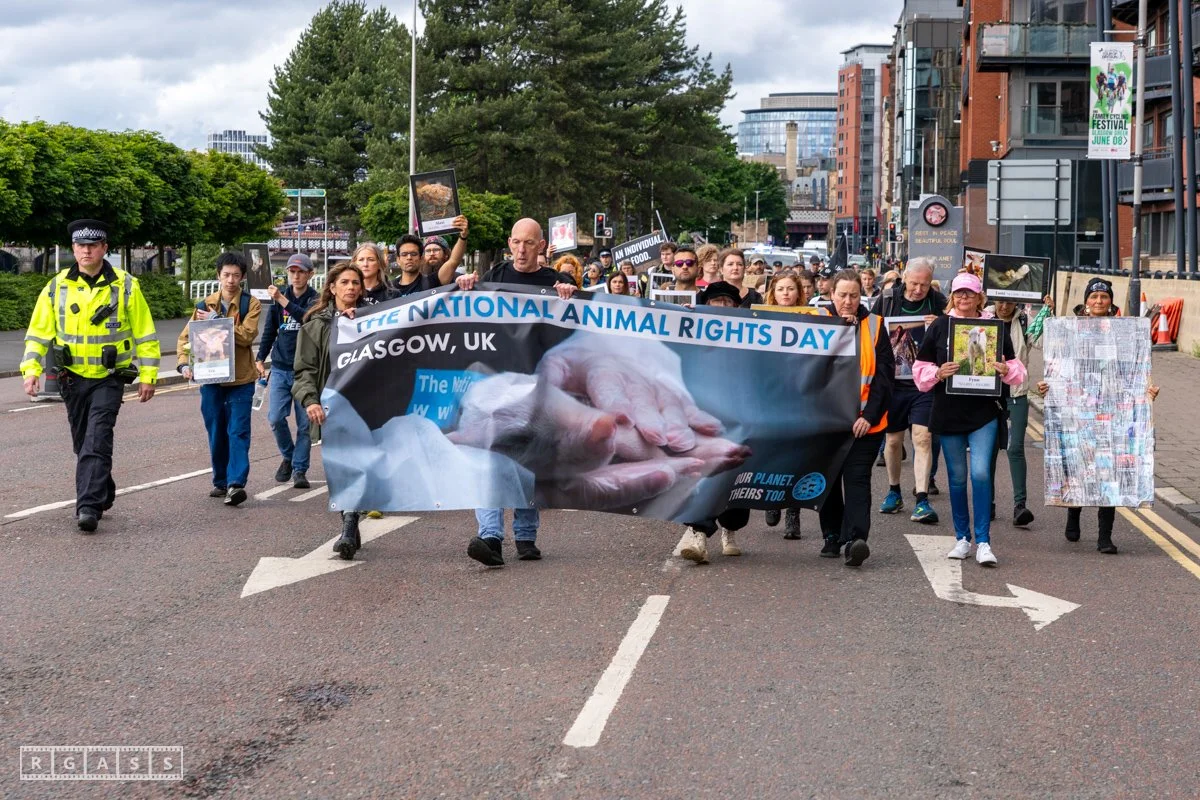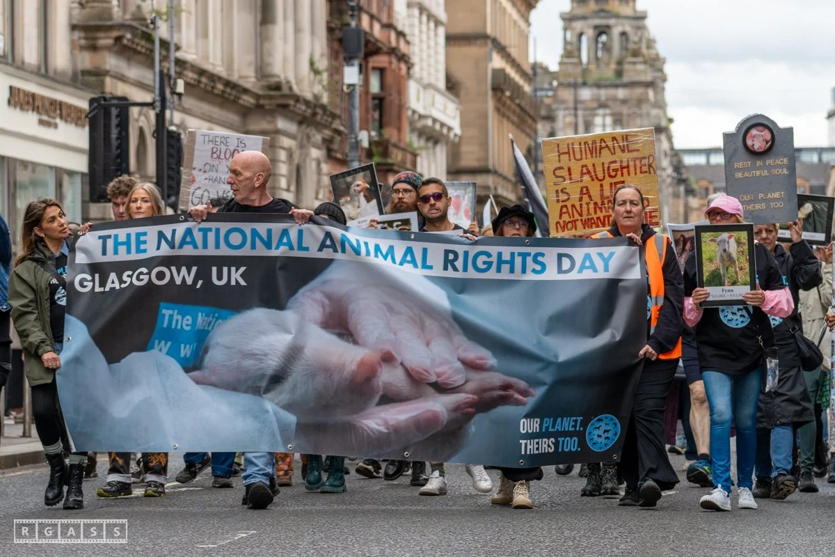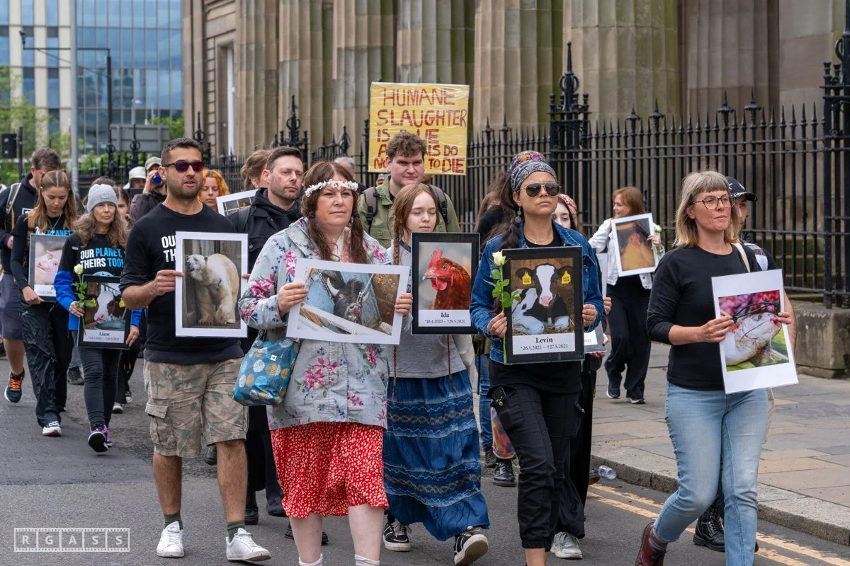 Glasgow, UK. 31 May 2025. Silent March from Glasgow Green through the city centre for the 15th National Animal Rights Day (NARD), giving a voice to all animals and raising awareness for their rights.