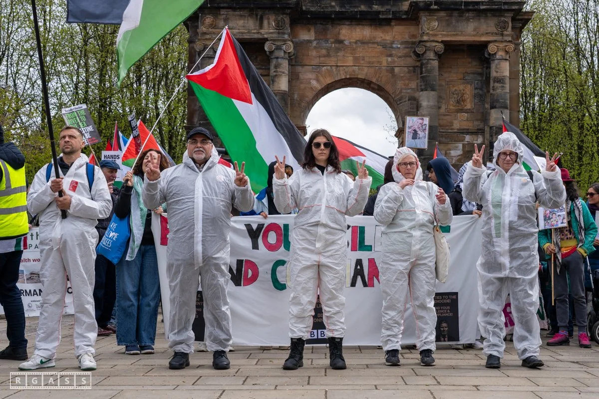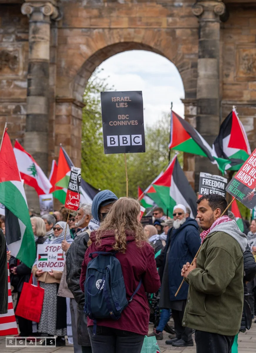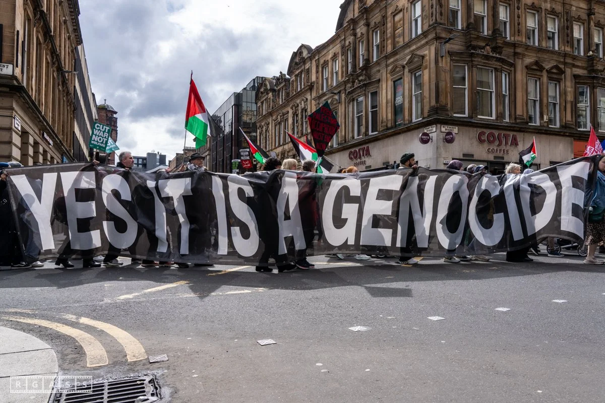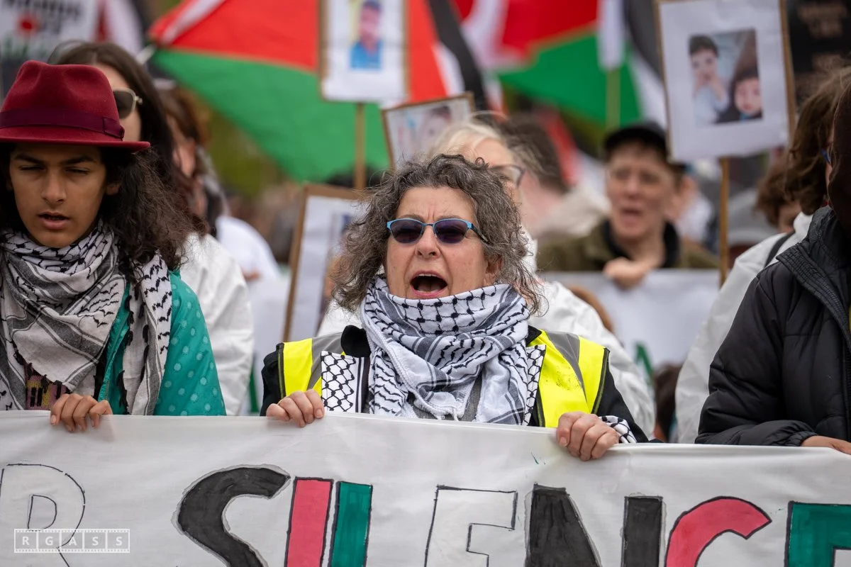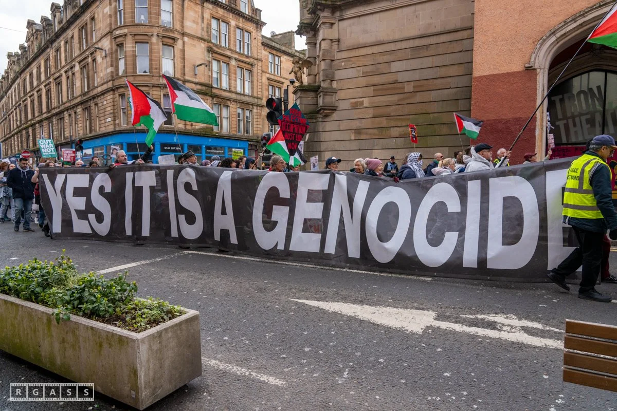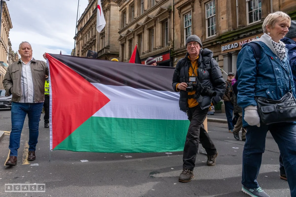 Glasgow Scotland UK. 19 April 2025. Gaza Genocide Emergency Committee (GGEC) national march and rally for Palestine from Glasgow Green to the Buchanan Steps. To protest the continued killing of Palestinians in Gaza