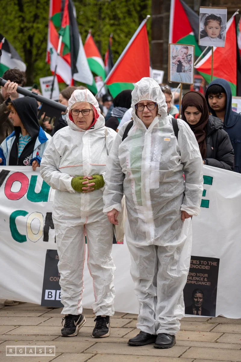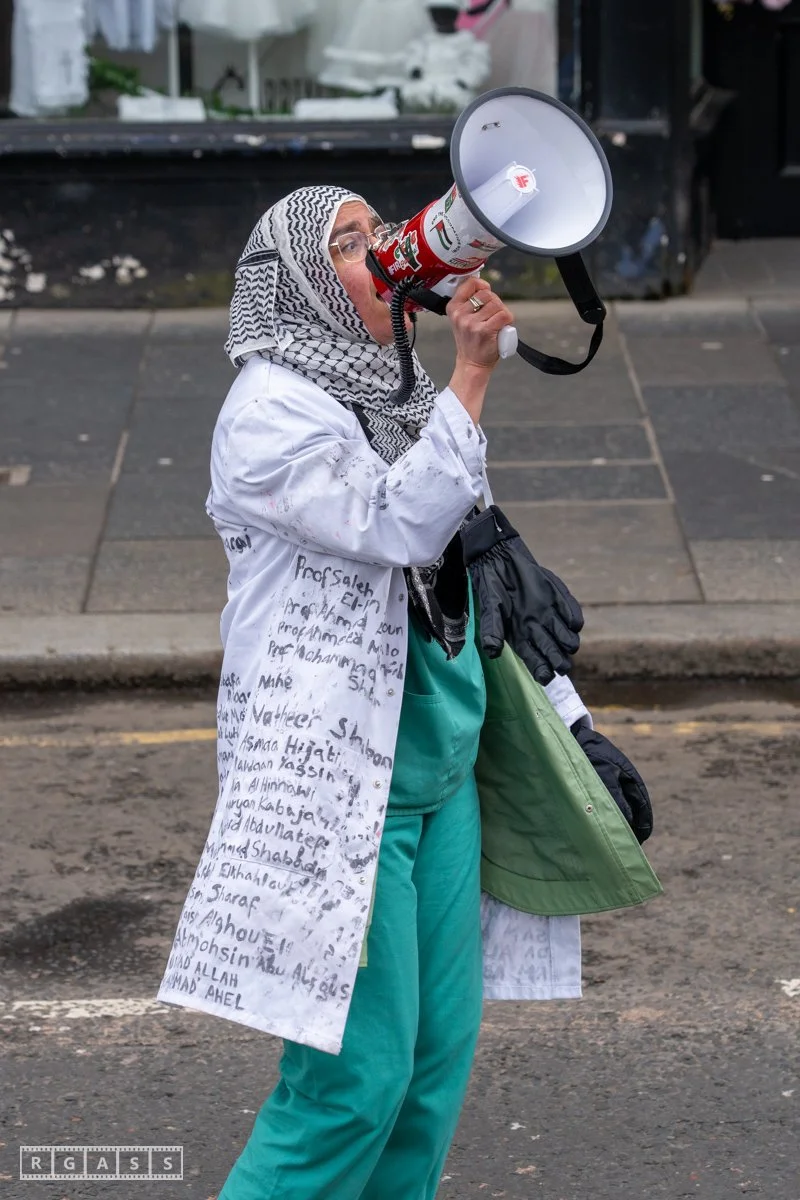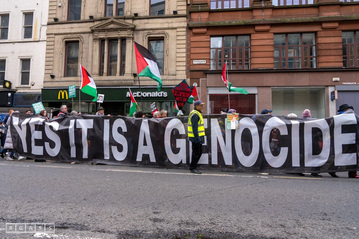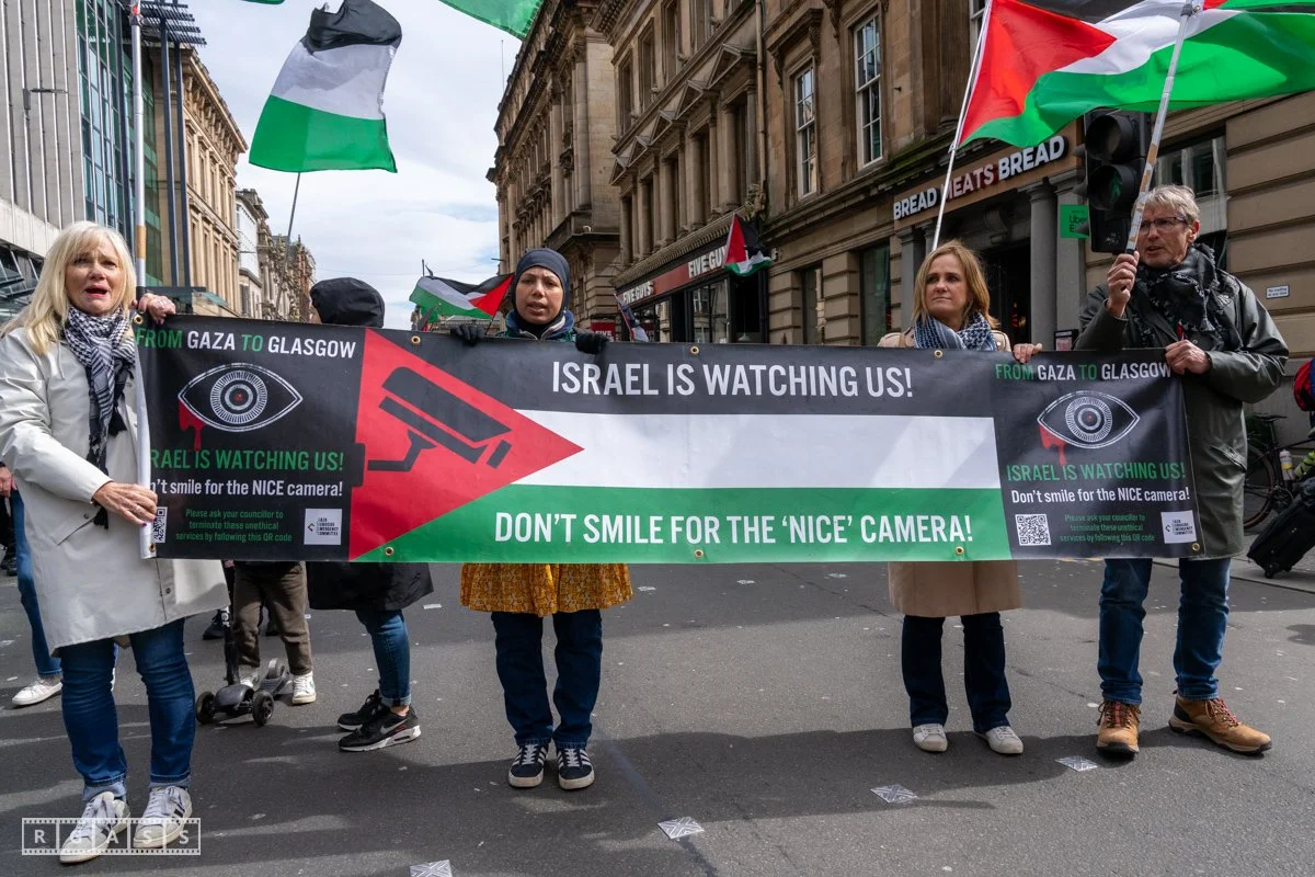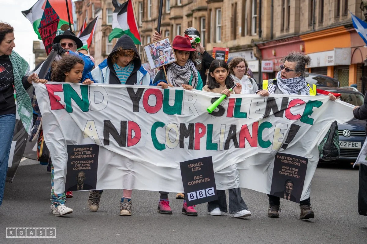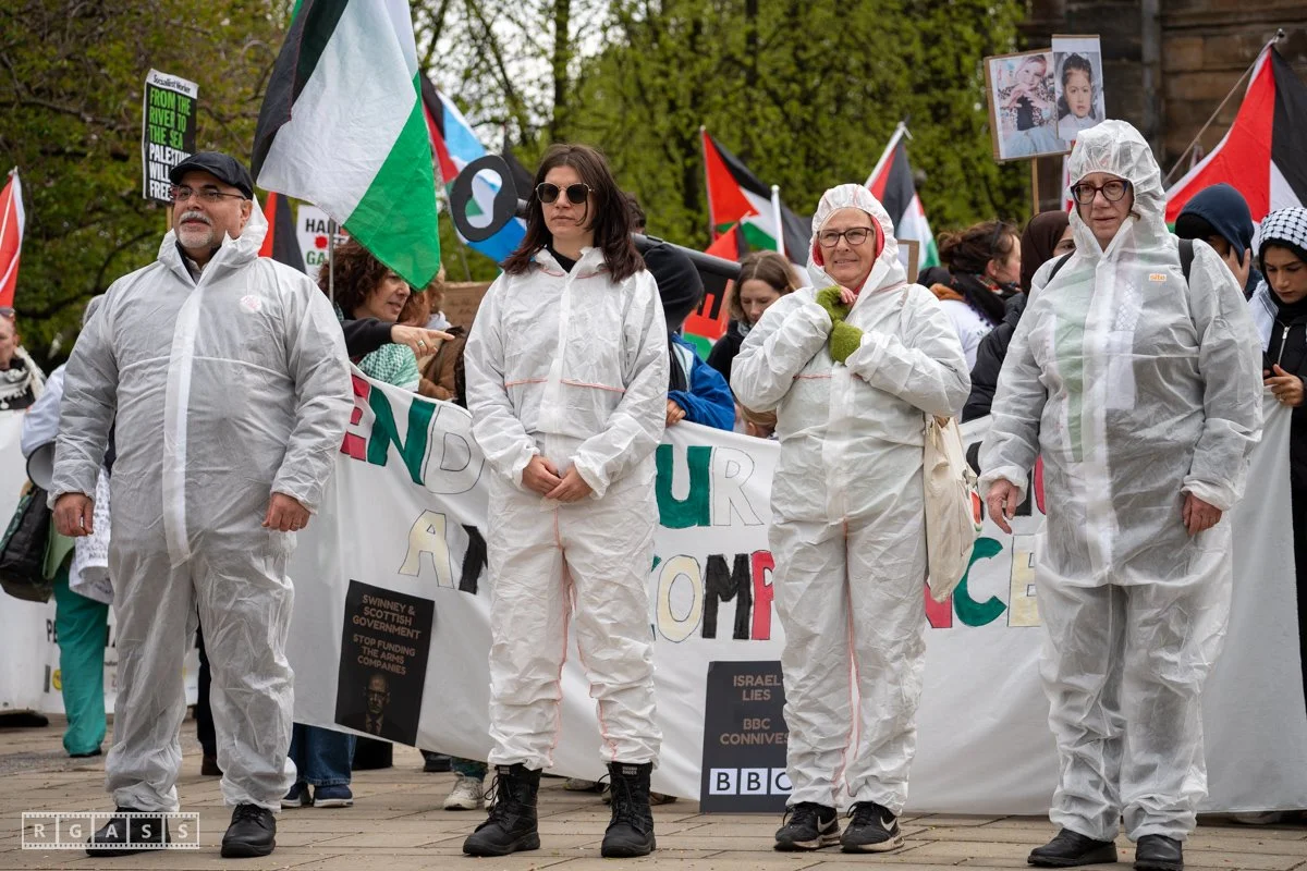 Glasgow Scotland UK. 19 April 2025. Gaza Genocide Emergency Committee (GGEC) national march and rally for Palestine from Glasgow Green to the Buchanan Steps. To protest the continued killing of Palestinians in Gaza