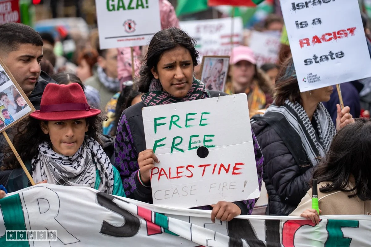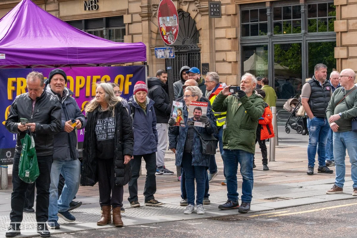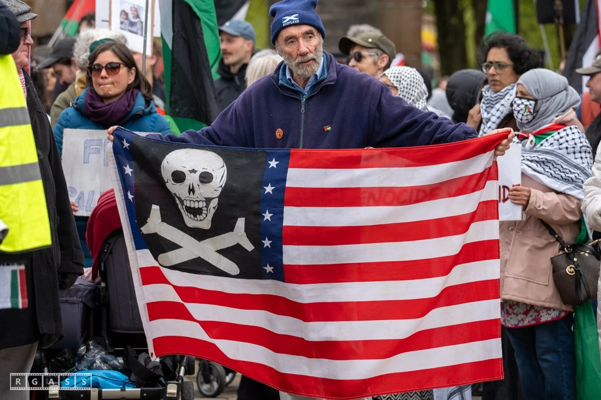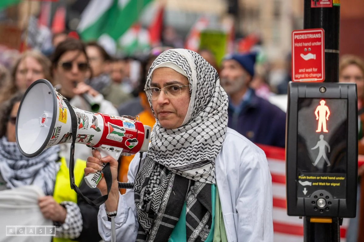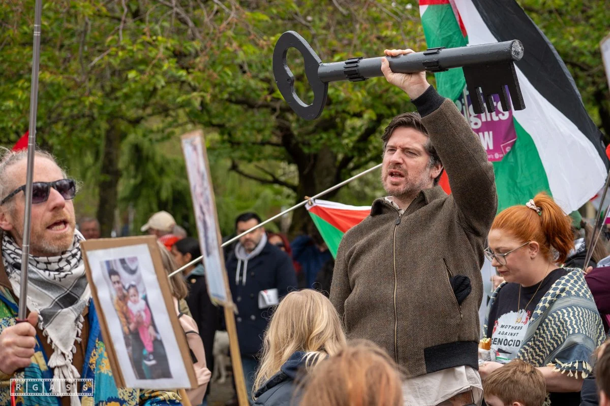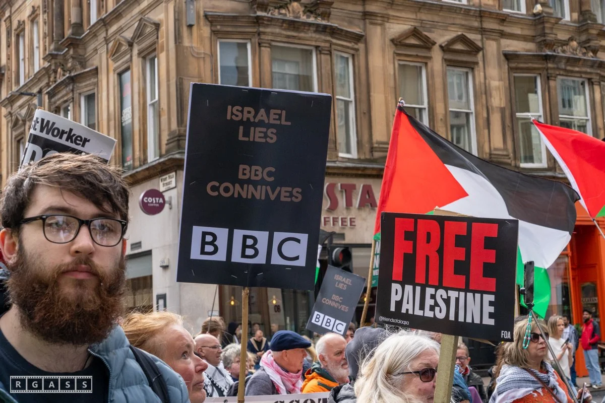 Glasgow Scotland UK. 19 April 2025. Gaza Genocide Emergency Committee (GGEC) national march and rally for Palestine from Glasgow Green to the Buchanan Steps. To protest the continued killing of Palestinians in Gaza