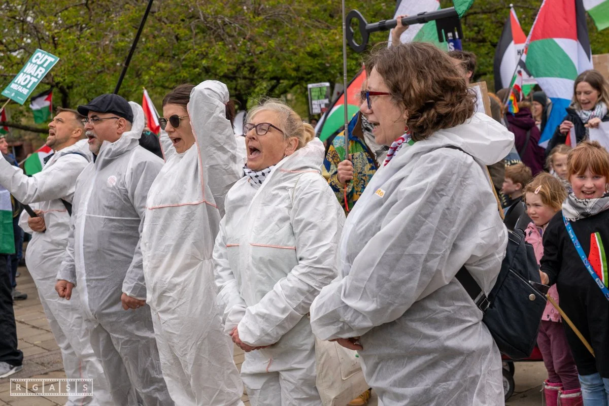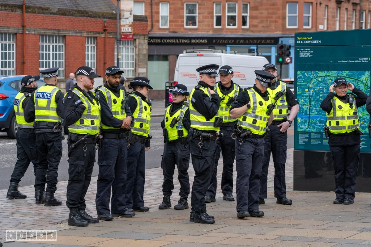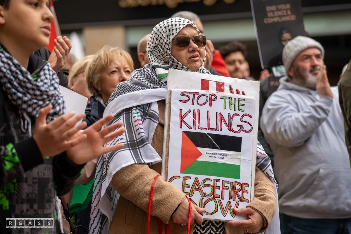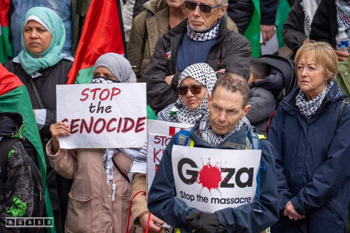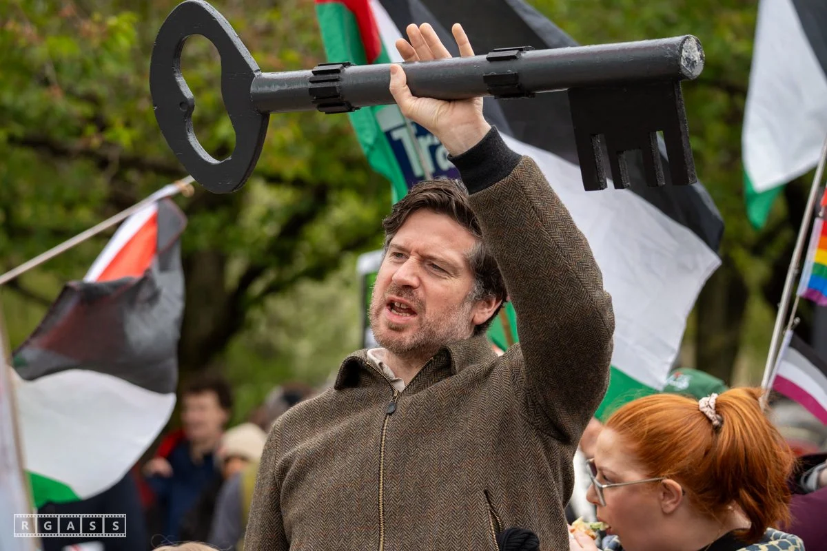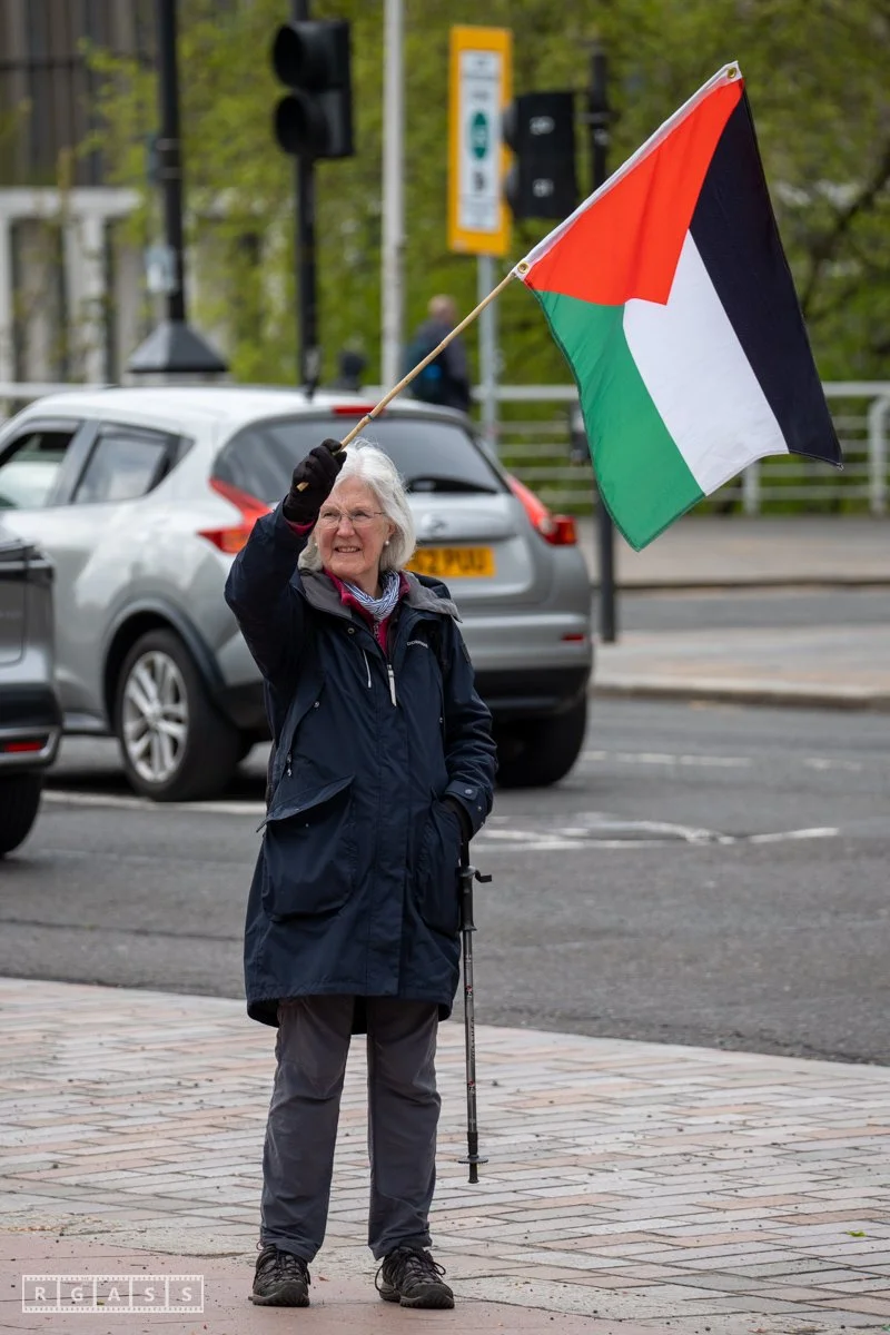 Glasgow Scotland UK. 19 April 2025. Gaza Genocide Emergency Committee (GGEC) national march and rally for Palestine from Glasgow Green to the Buchanan Steps. To protest the continued killing of Palestinians in Gaza