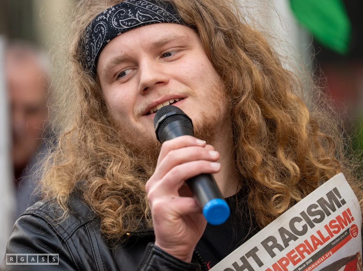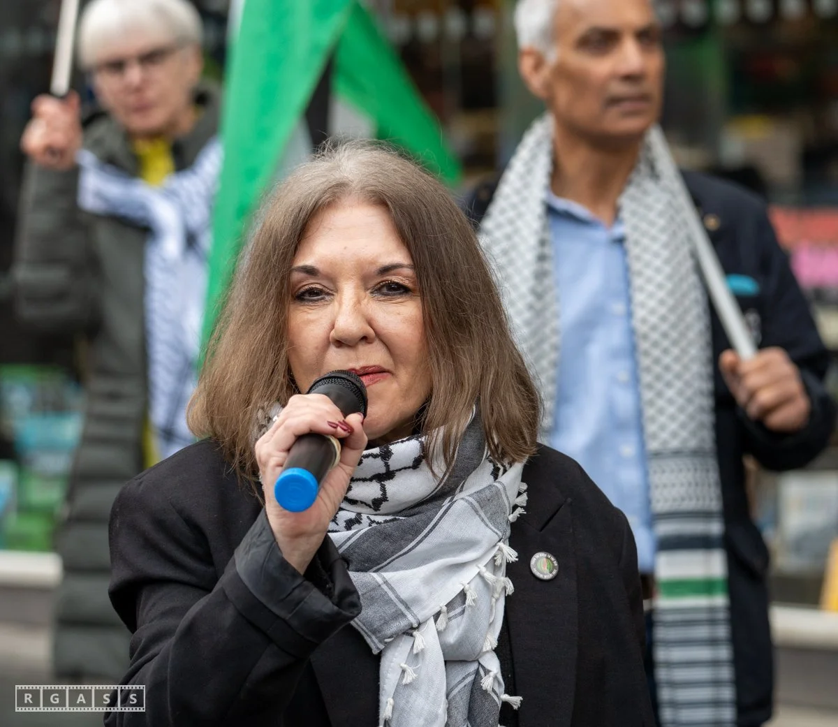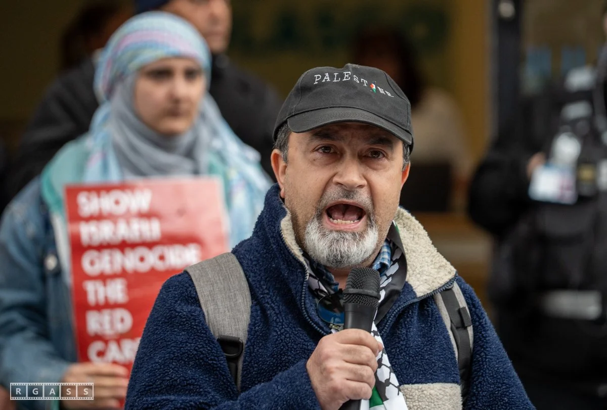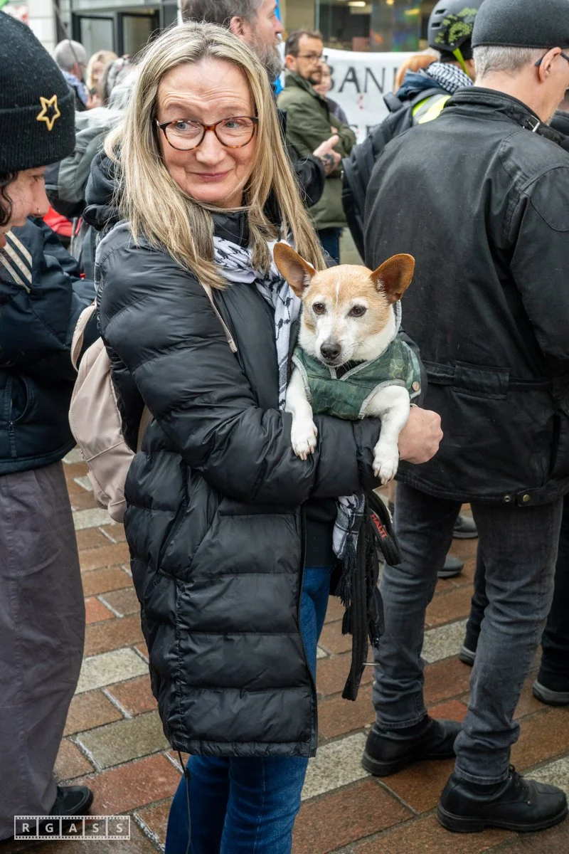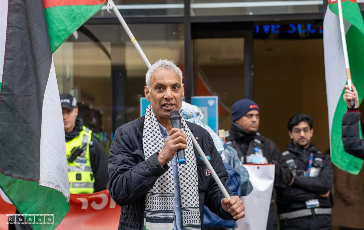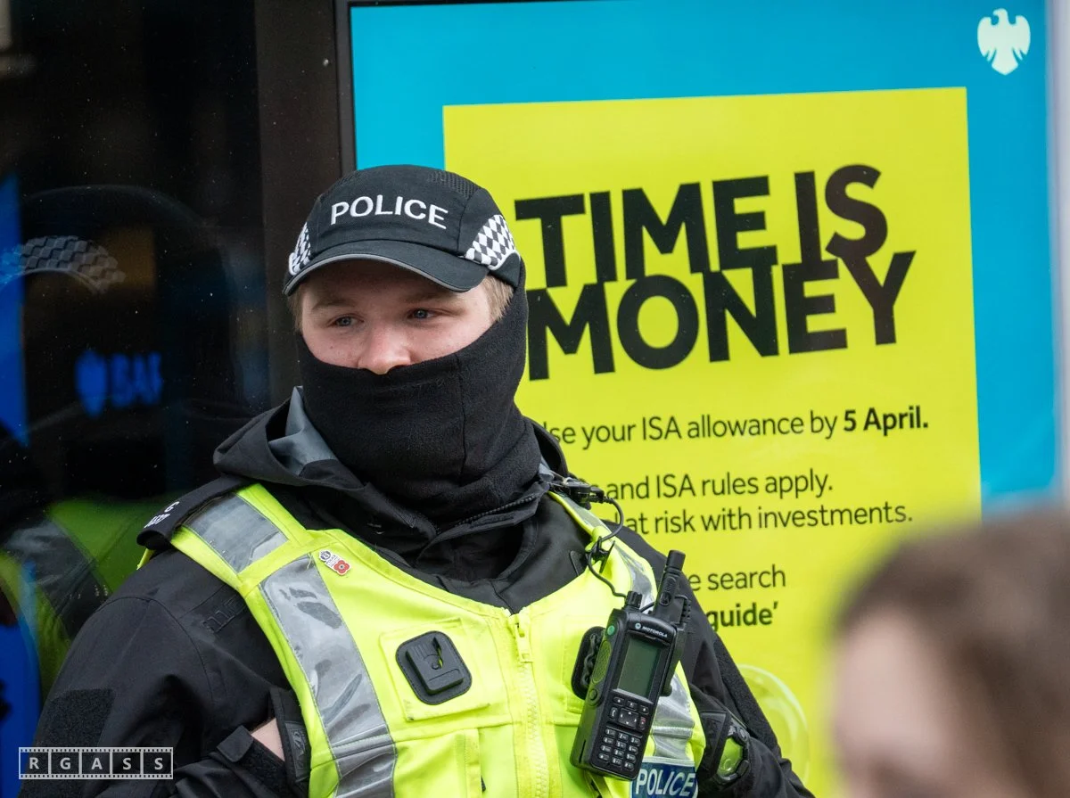 Glasgow UK. 22 March 2025. Pro-Palestine protesters outside Barclays Bank and then outside London Road Police Station, with an incidental scooter club drive past.