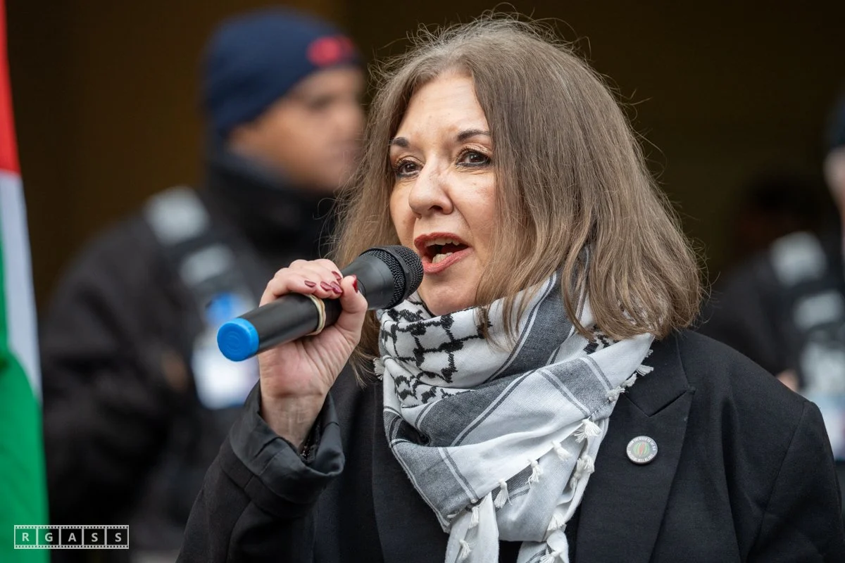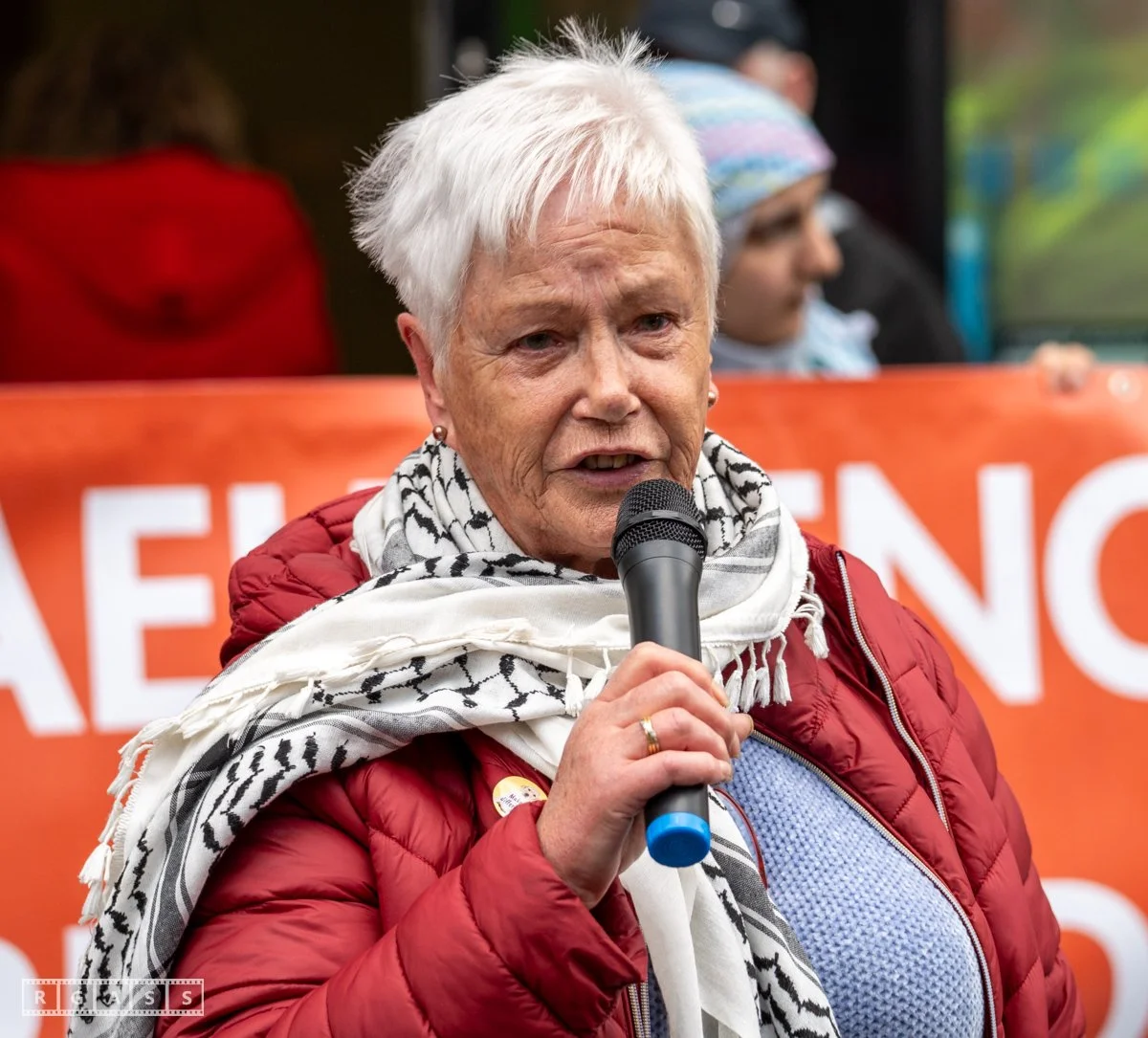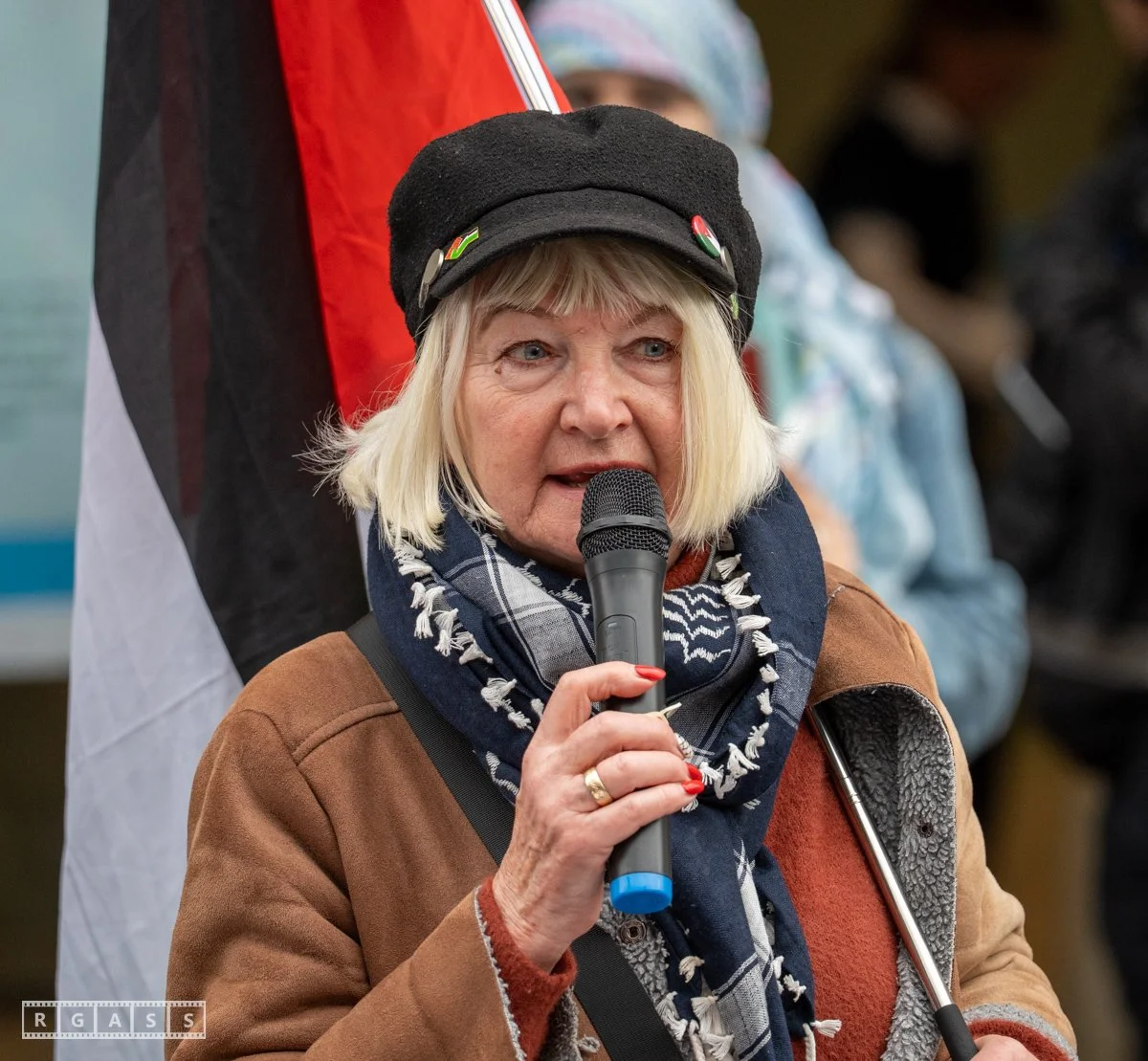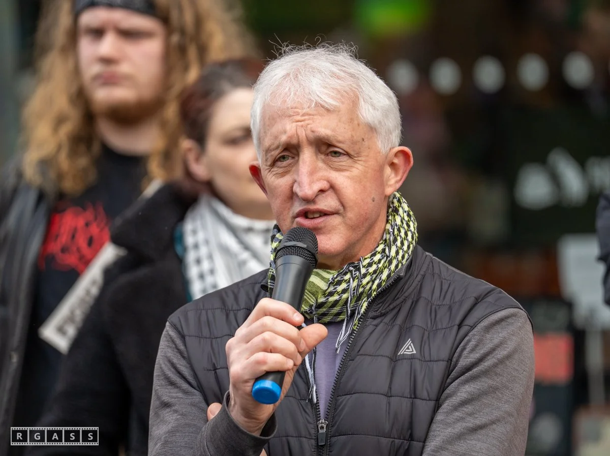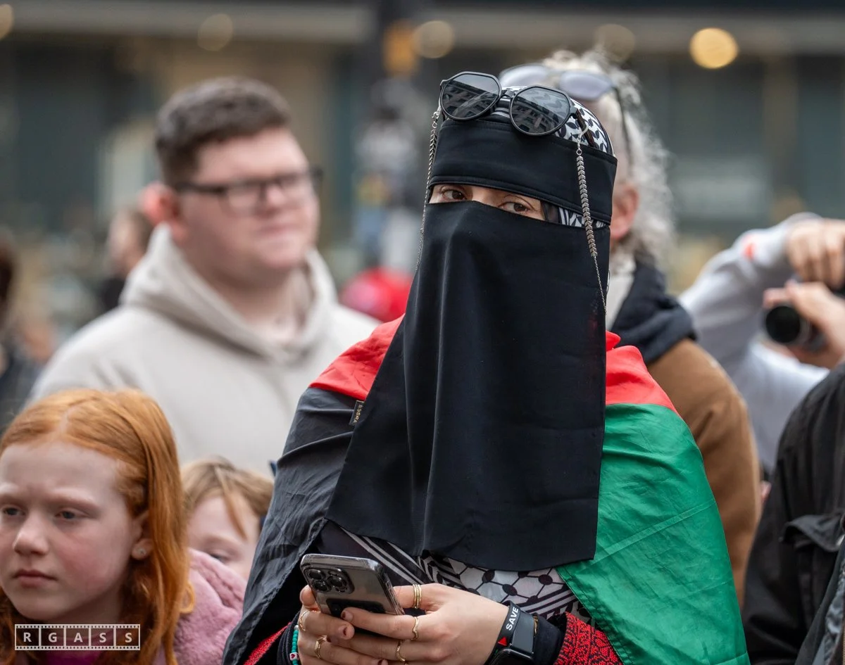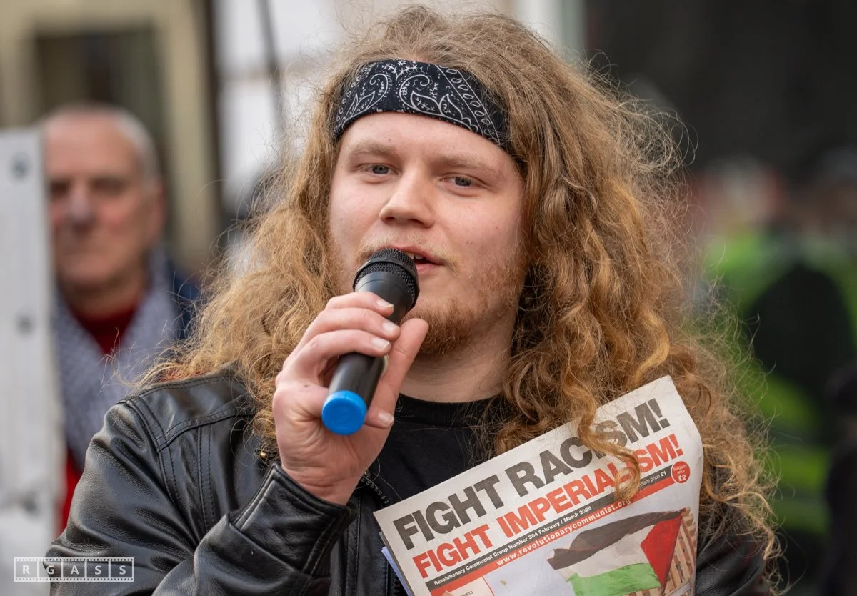 Glasgow UK. 22 March 2025. Pro-Palestine protesters outside Barclays Bank and then outside London Road Police Station, with an incidental scooter club drive past.