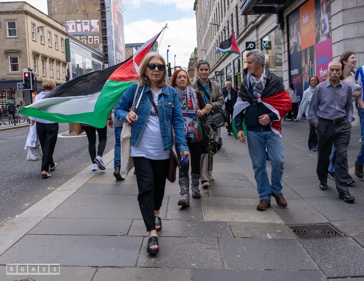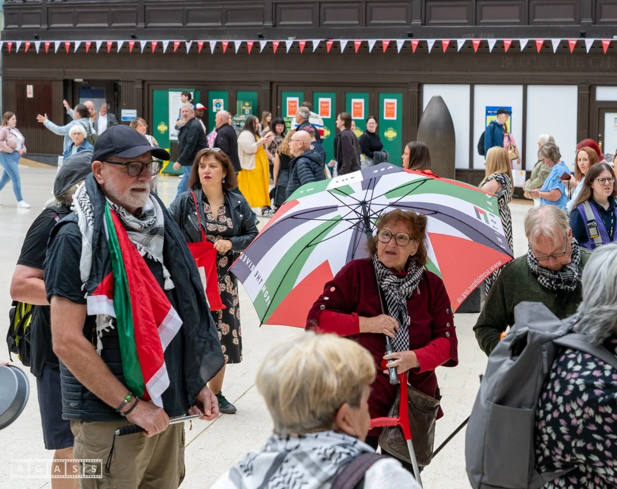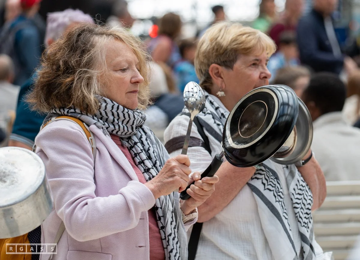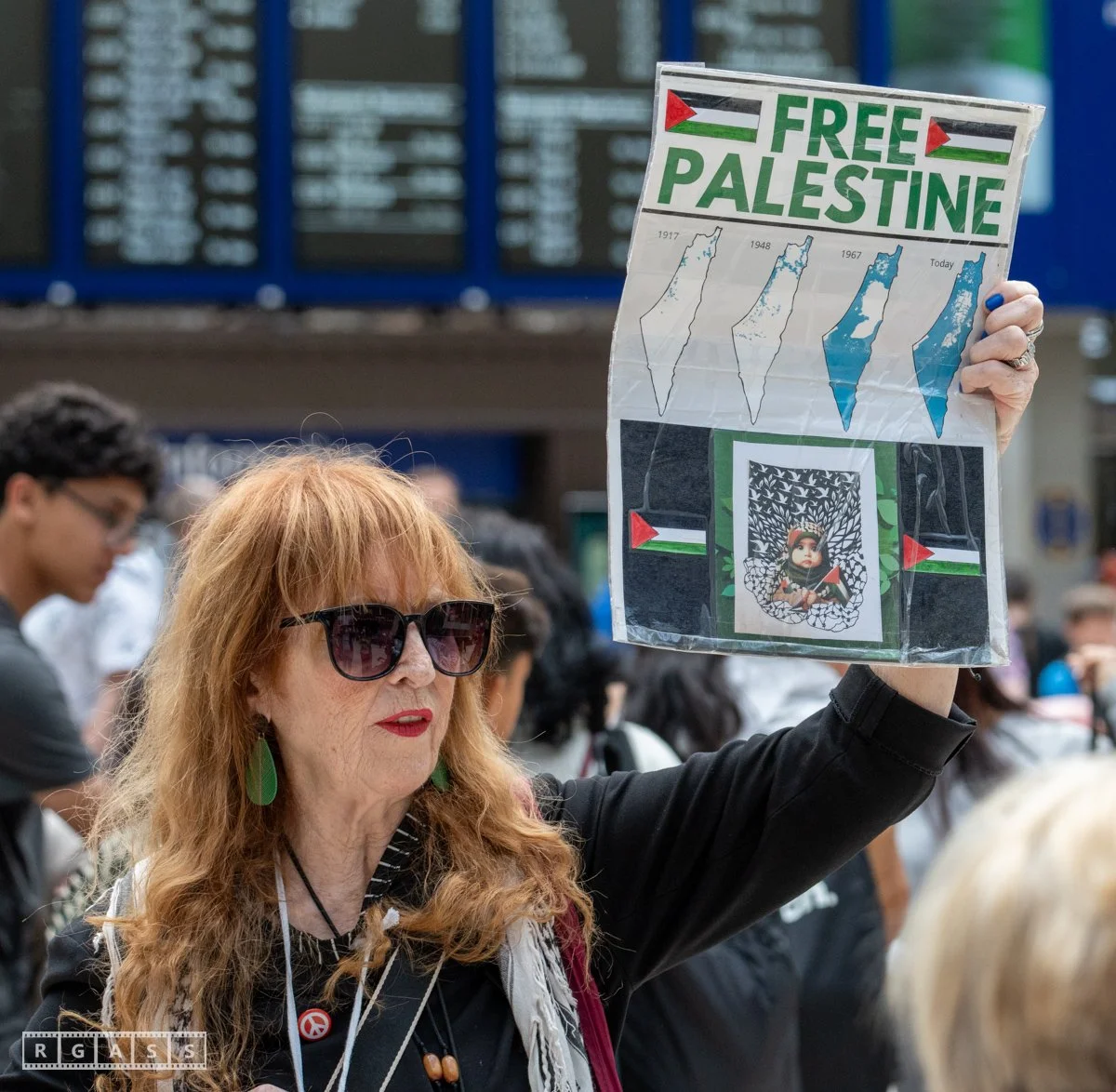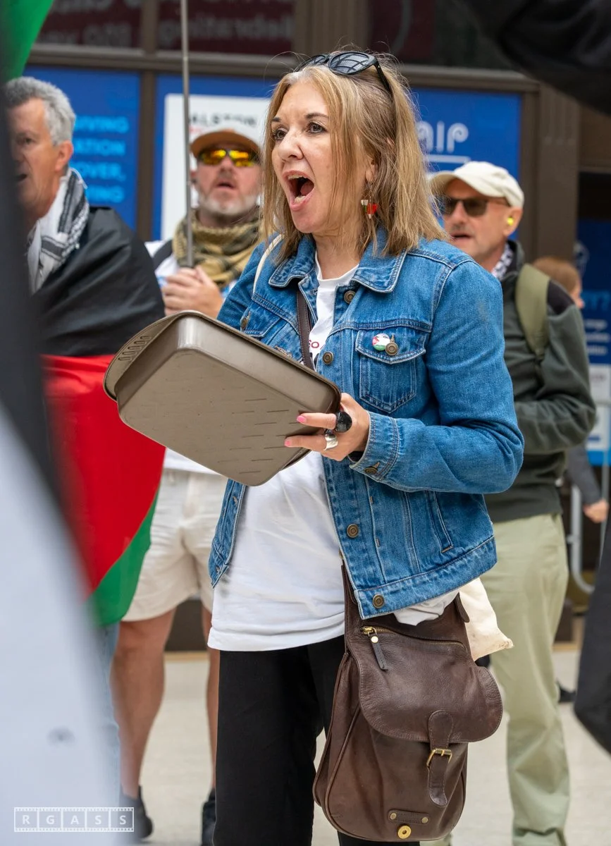 2nd August 2025, Glasgow UK: Palestine Protesters gather in Central Station banging ‘pots and pans’ to demand actions to halt the starvation of Palestinians in Gaza.