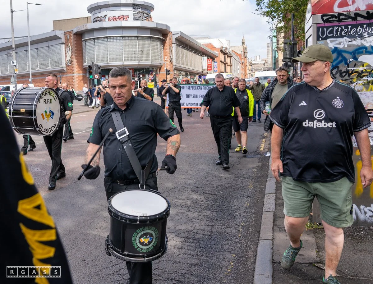 9th August 2025, Glasgow, Scotland, UK Friends of Irish Republican Prisoners Welfare Association Scotland march in Glasgow.