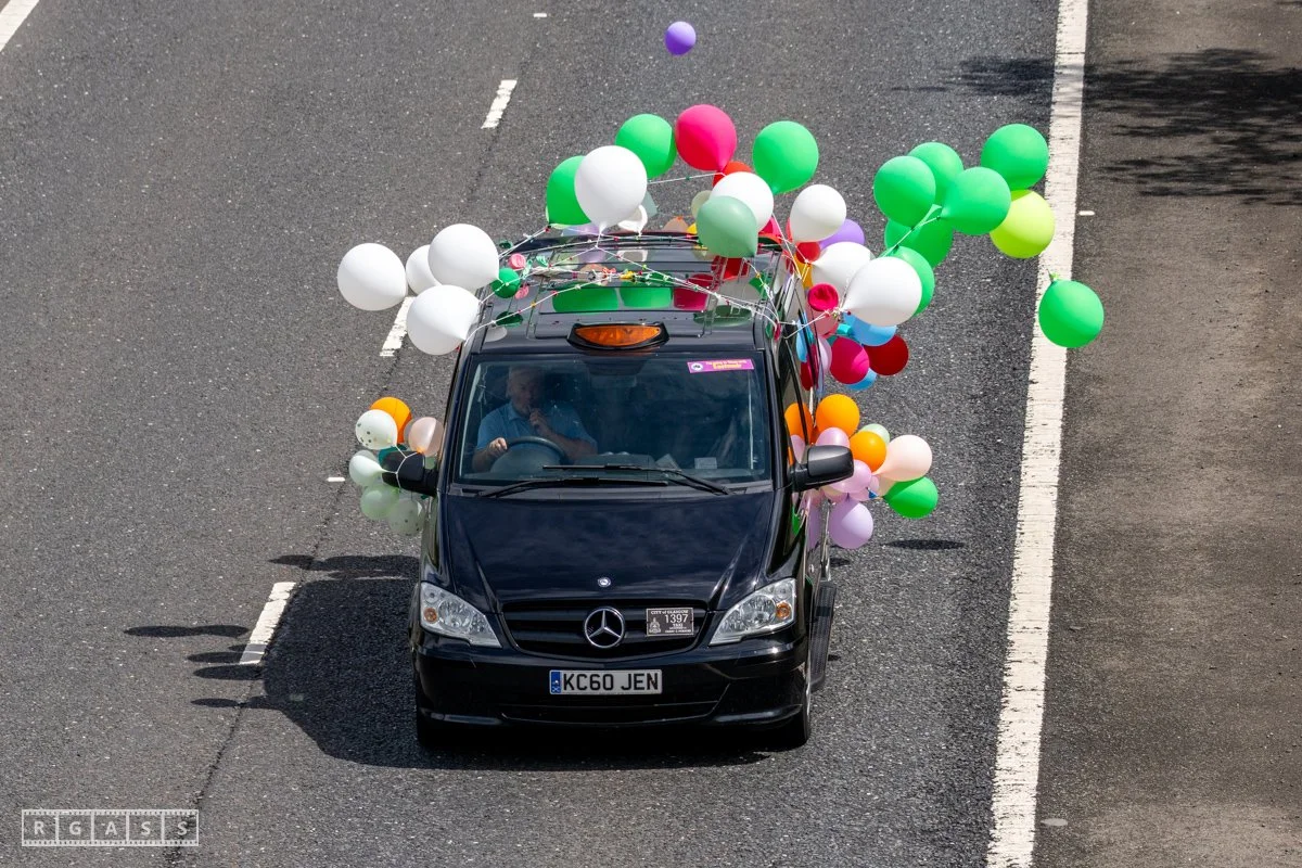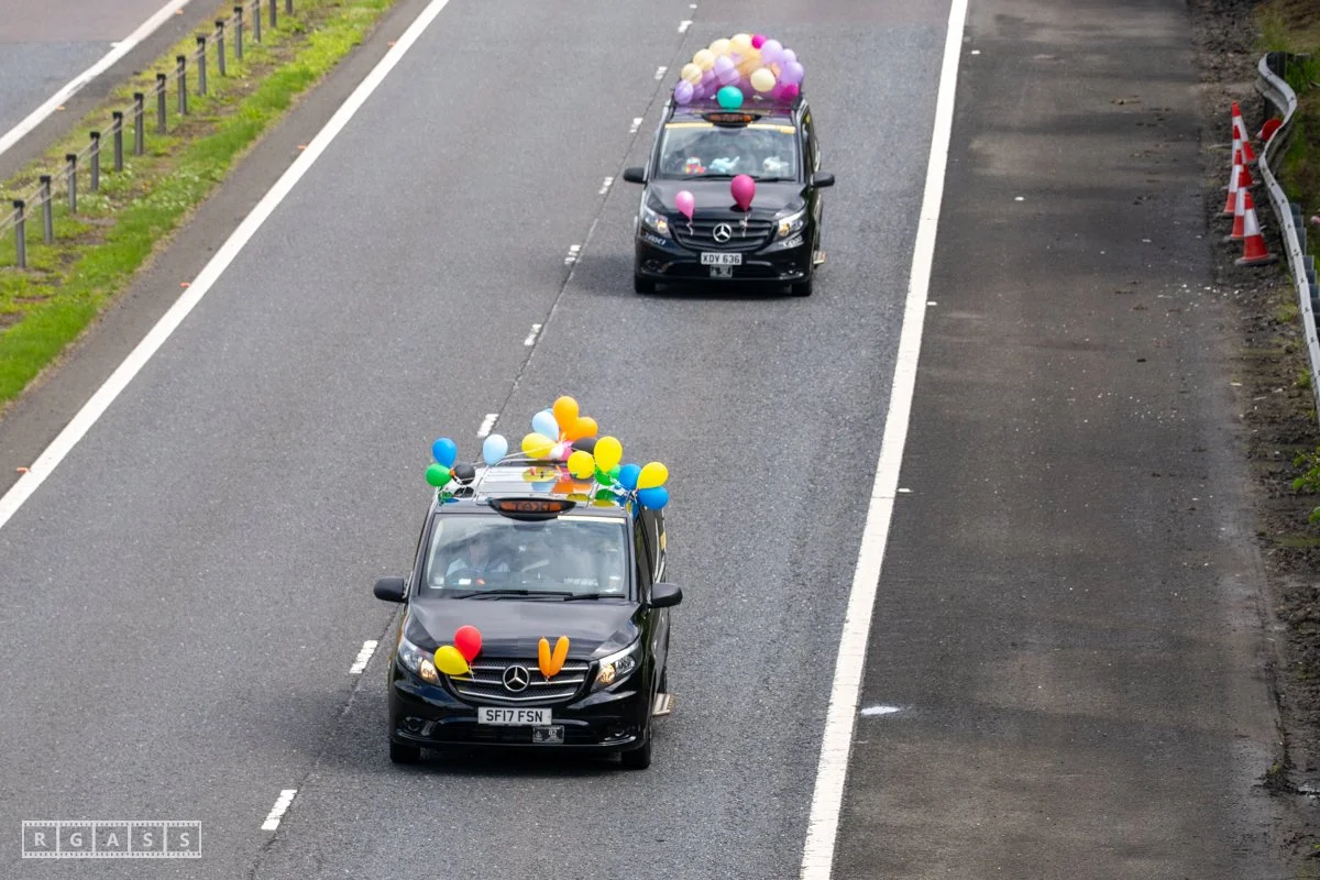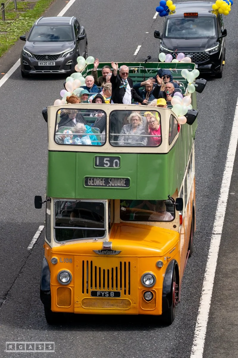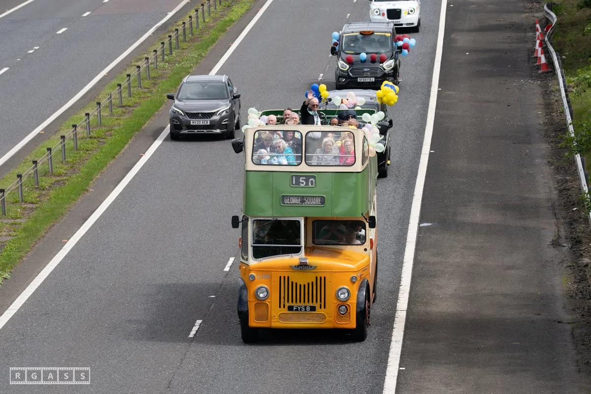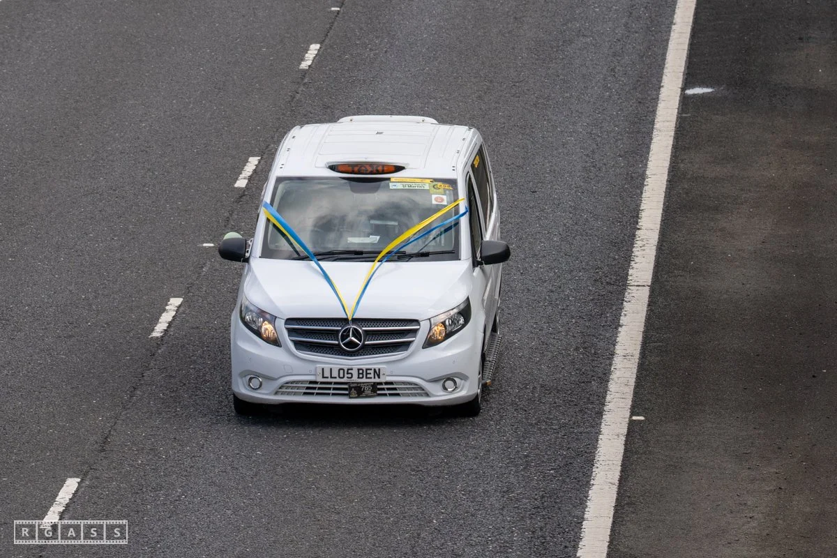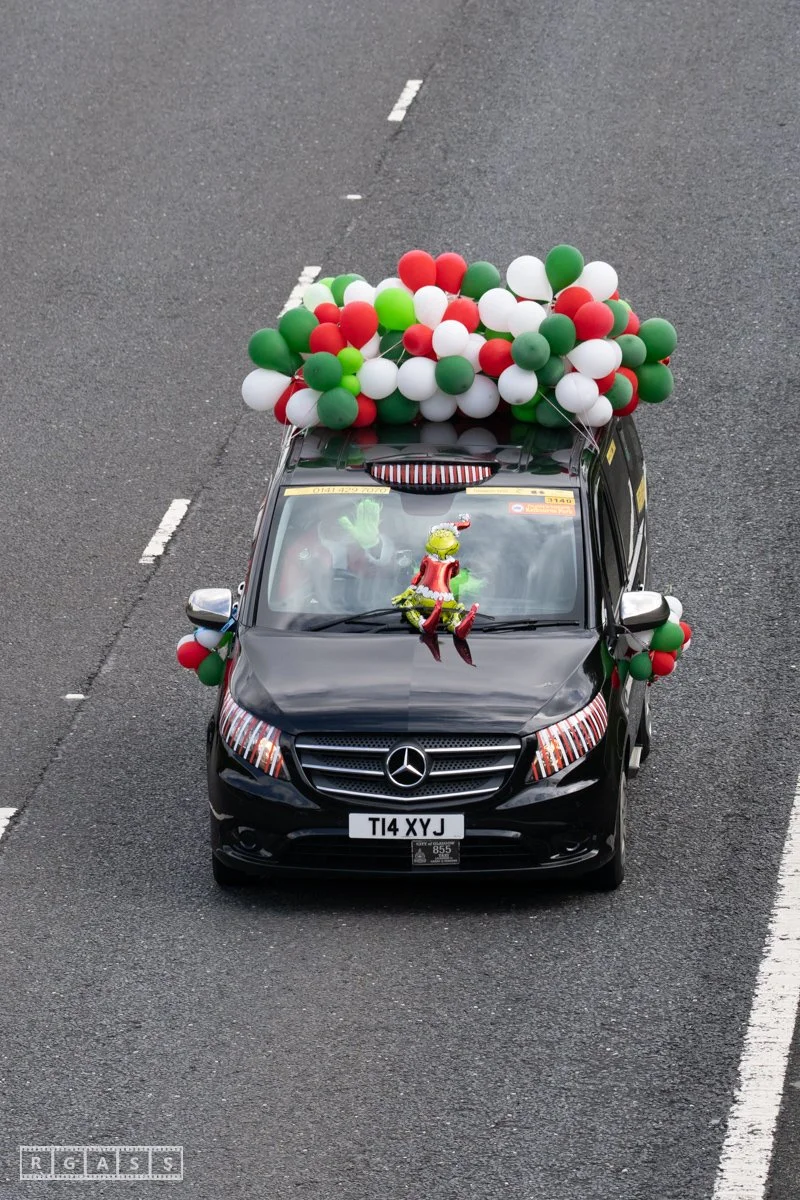 18 June 2025, Fenwick Scotland, UK. Approx 135 Glasgow taxis travelling to Troon in a convoy taking over 300 children with additional support needs for a day at the seaside.