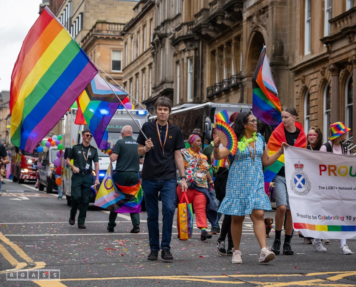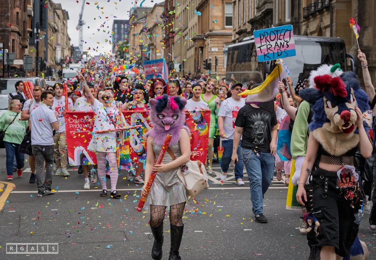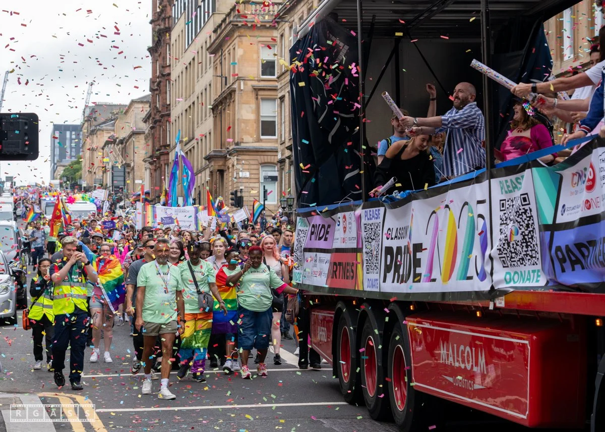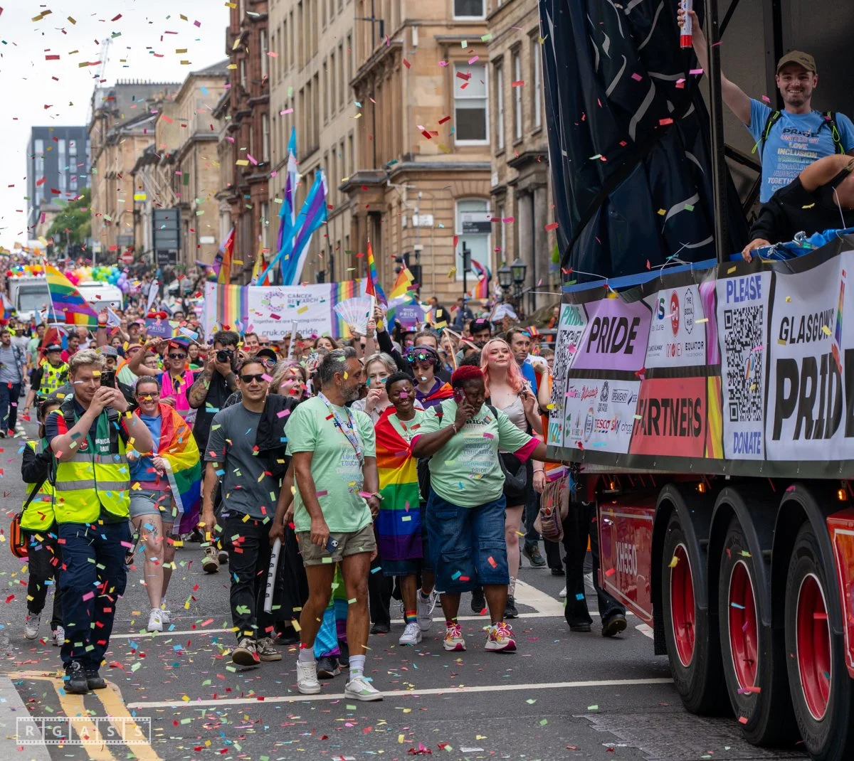 Glasgow UK. 19th July 2025. Thousands march from Kelvingrove Park through the city to Barrowland park celebrating Pride 2025.