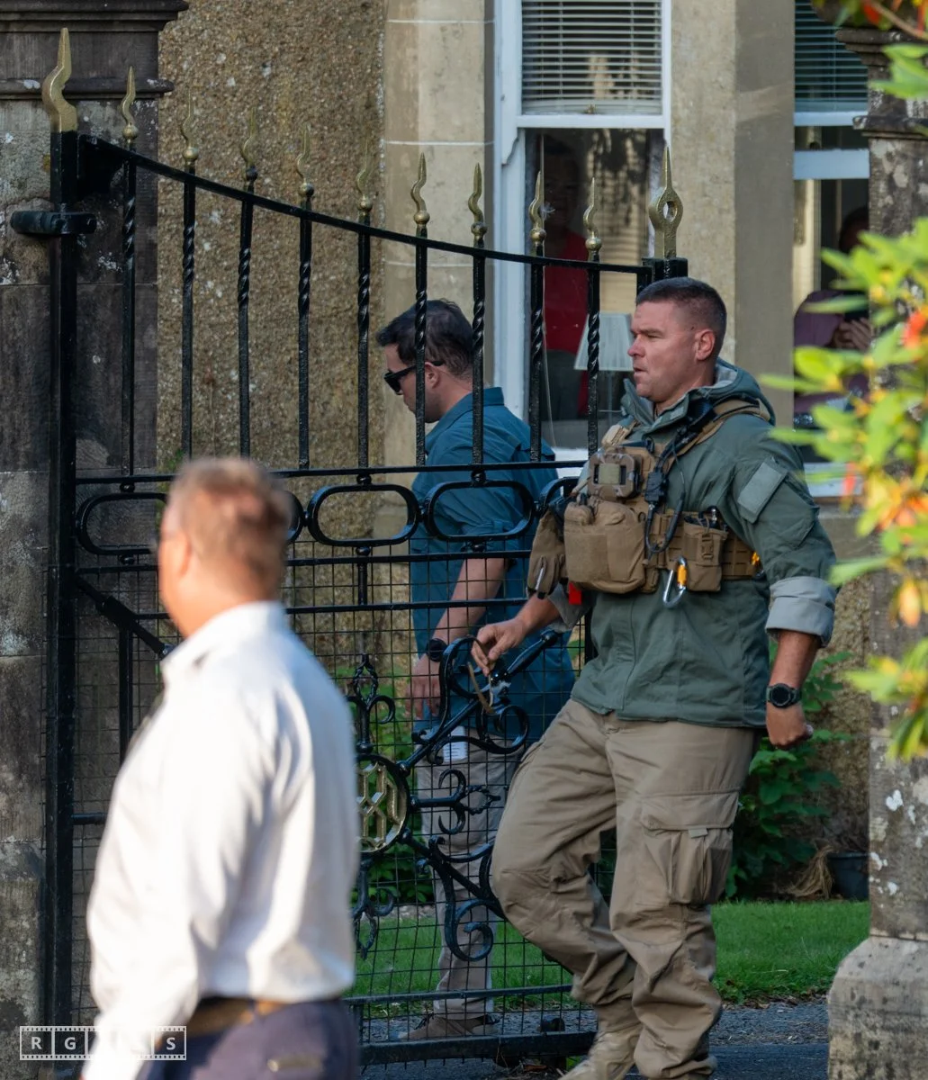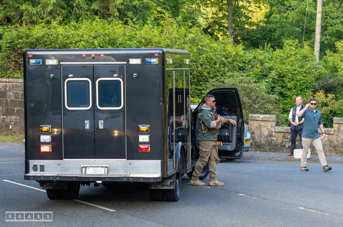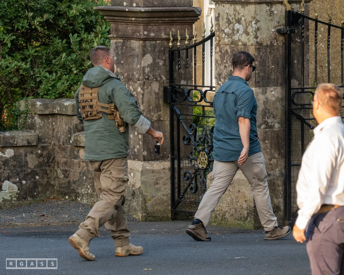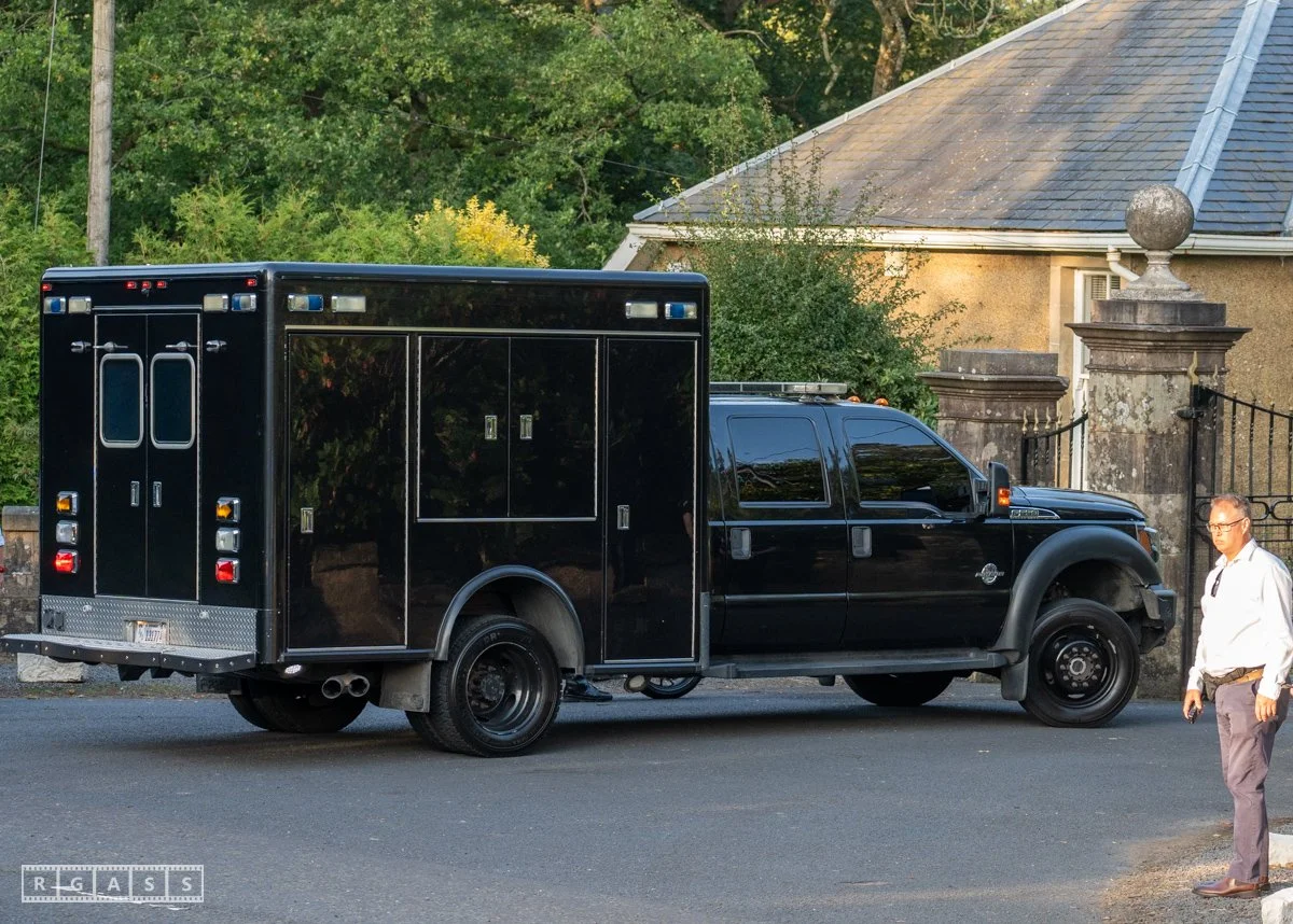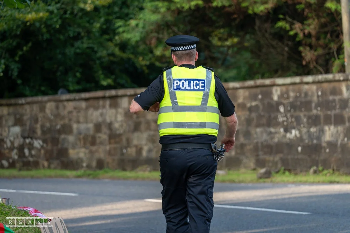 13th August 2025, Kilmarnock. Pro-Palestinian protesters gather at the entrance to Carnell Estate in Ayrshire to show their opposition to US Vice President JD Vance who was arriving at the Estate on holiday.