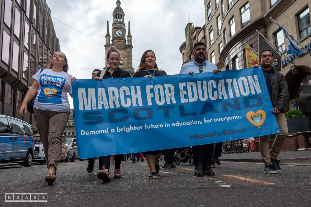 24th June 2024. Parents, Teachers, Children Trade Unionists and Politicians take part in the “March for Education” to Glasgow’s City Chambers to demand an end to education cuts. Make It