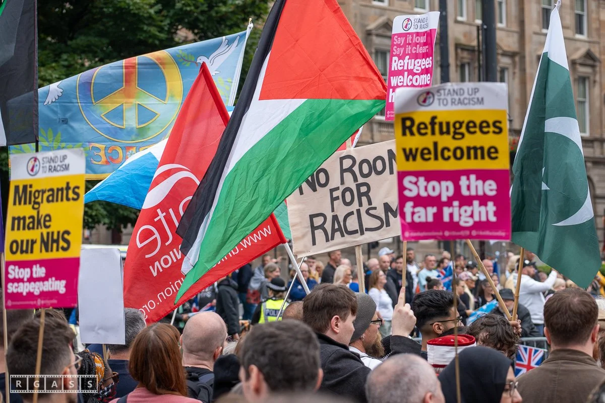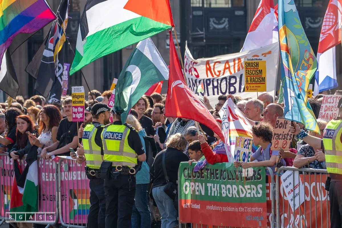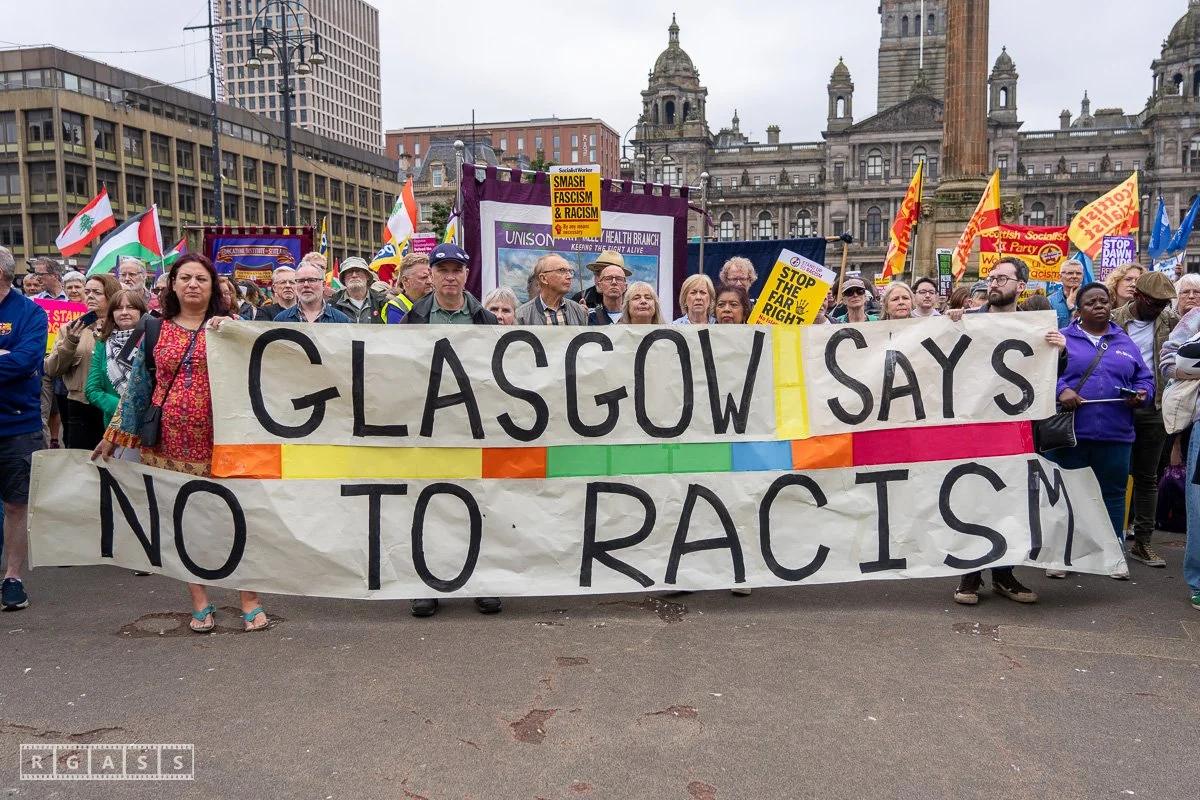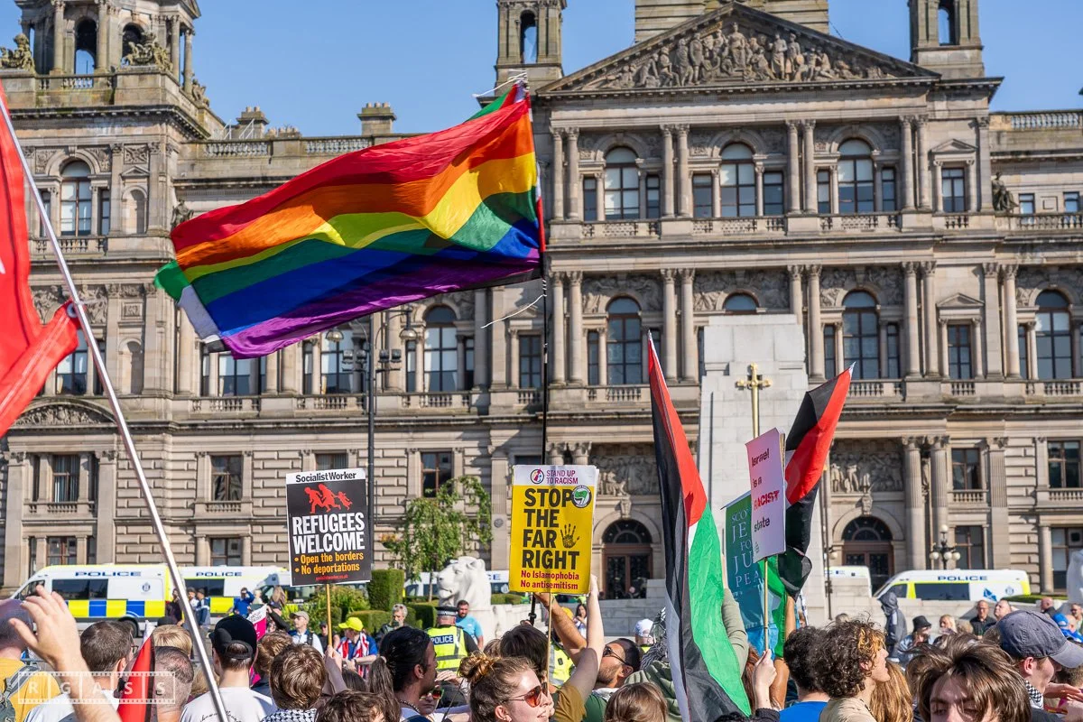 Glasgow. 7 Sept. 2024. Thousands of anti-racism protesters gather in George Square to counter proGtest anti-immigration demonstrators. Glasgow, Scotland, UK. 7th September 2024.